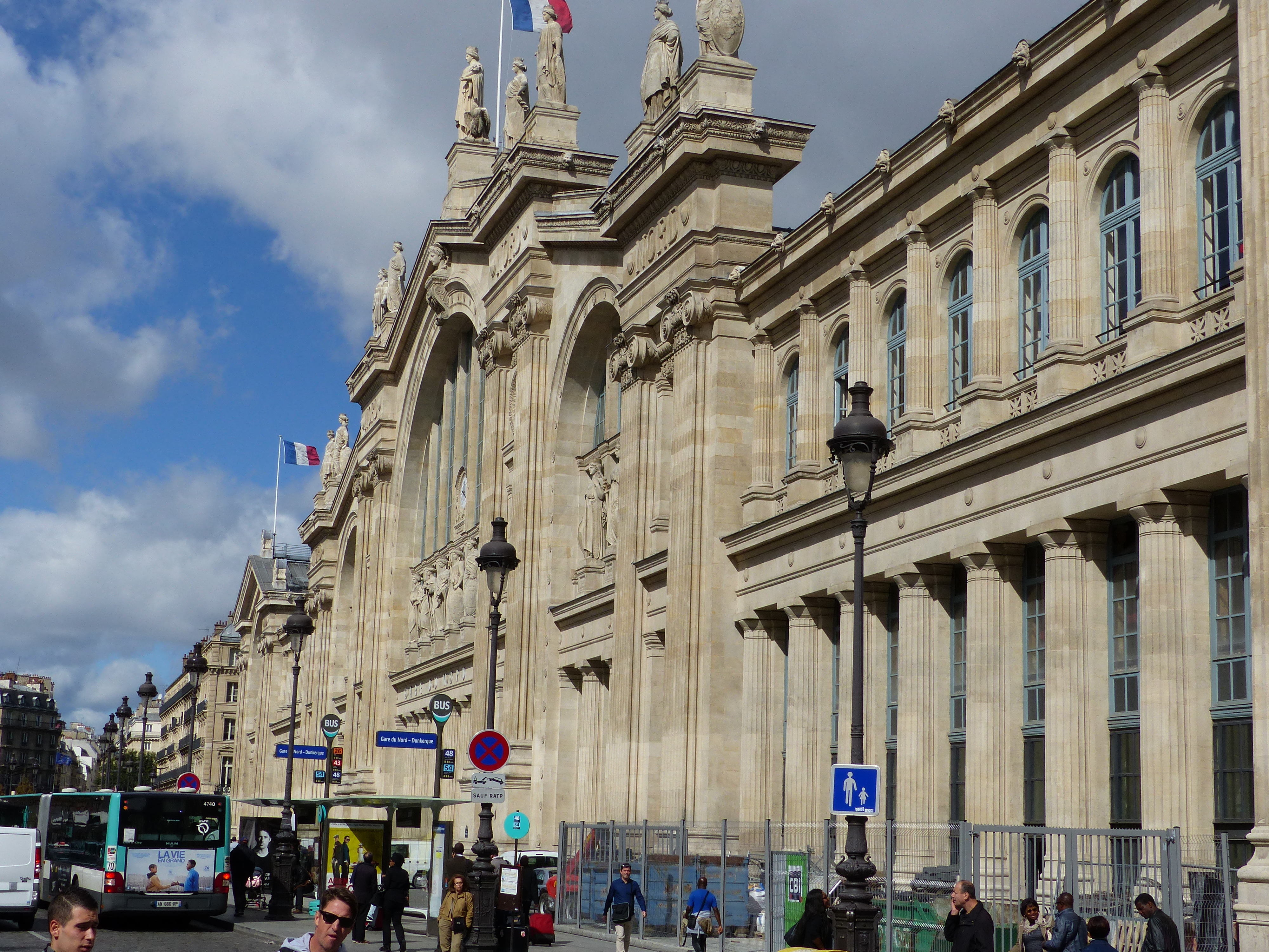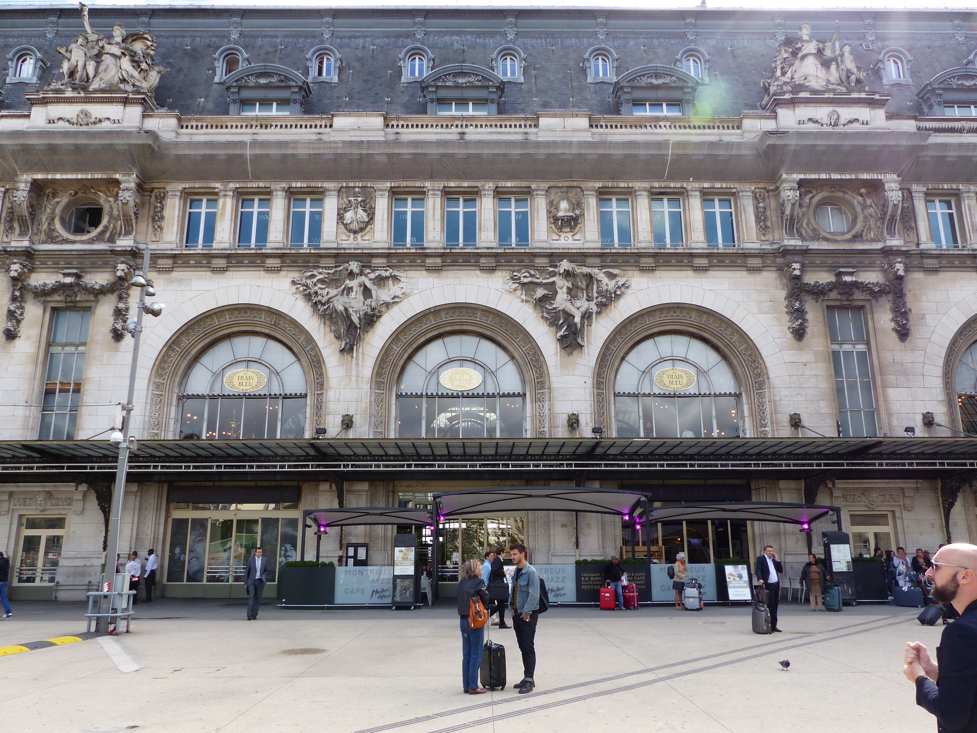 The ride across the city was so much fun, just like our last experiences of riding in Paris. I don’t know why, because the city was loud and busy and hectic, but I still loved it! We rode through the streets, swerved in and out of traffic as we dodged the cars and trucks parked in the bike lanes, then zipped across lanes and raced through intersections, dodged pedestrians and all the while I’m looking around me and grinning. I love Paris! It’s a city that has all the things we usually don’t like about cities, but I just love it. Steve was in the lead, with one eye on the traffic and one eye on the GPS to follow the directions to the station. He did a super job of navigating again and we soon power pedalled up to the front of the station. OK, what’s in store for us at this one?