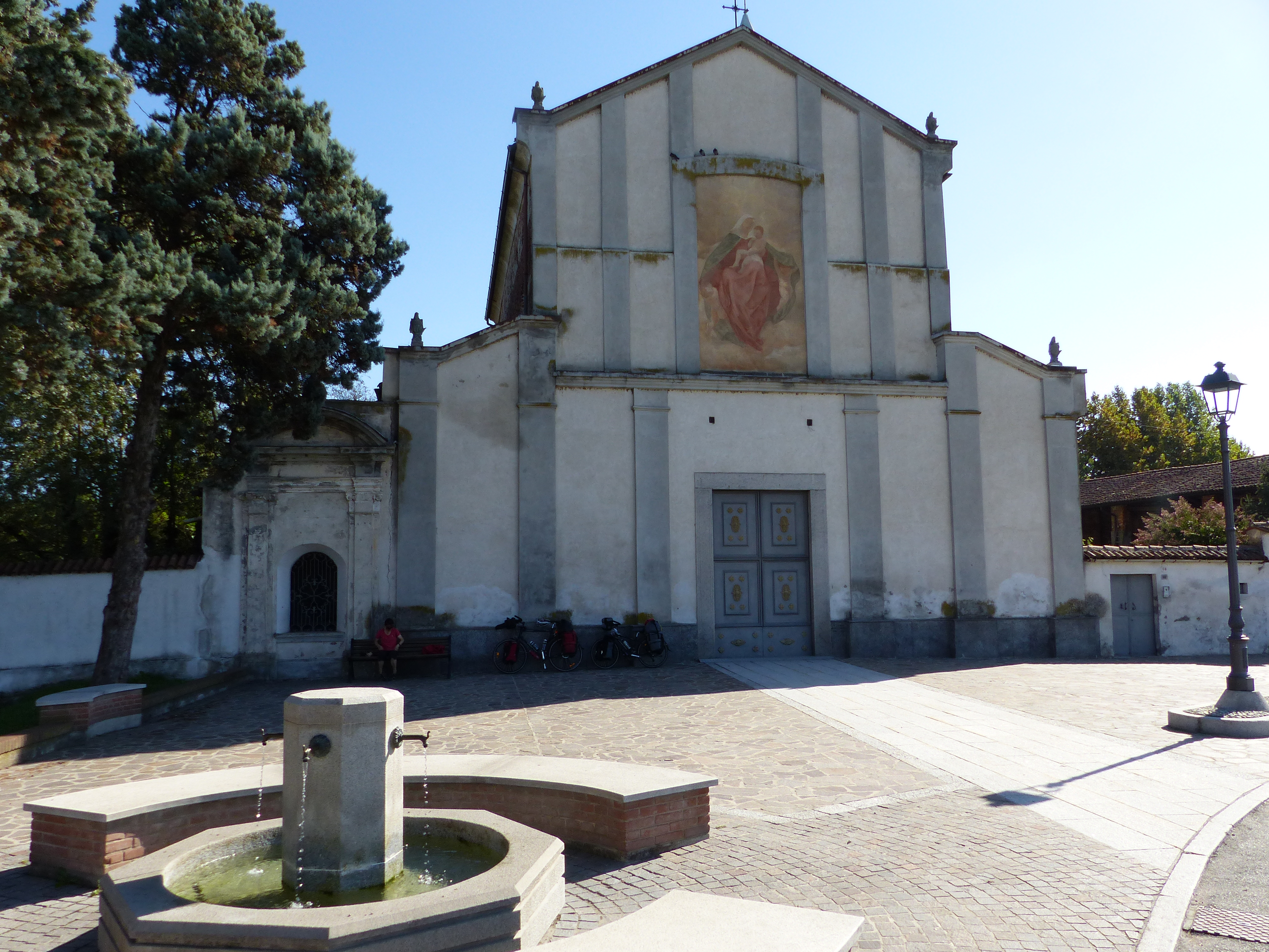 “There’s sunshine! I can see blue sky too!” came Steve’s words this morning as he opened the windows onto our little courtyard outside the apartment. Another day of sunshine, how simply splendid! We once again enjoyed the luxury of having breakfast at a table, then packed up our bags and bikes and set off through the cobbled streets and piazza of Vigevano. What a glorious day, with sunshine and not a cloud in the sky. Perfect.