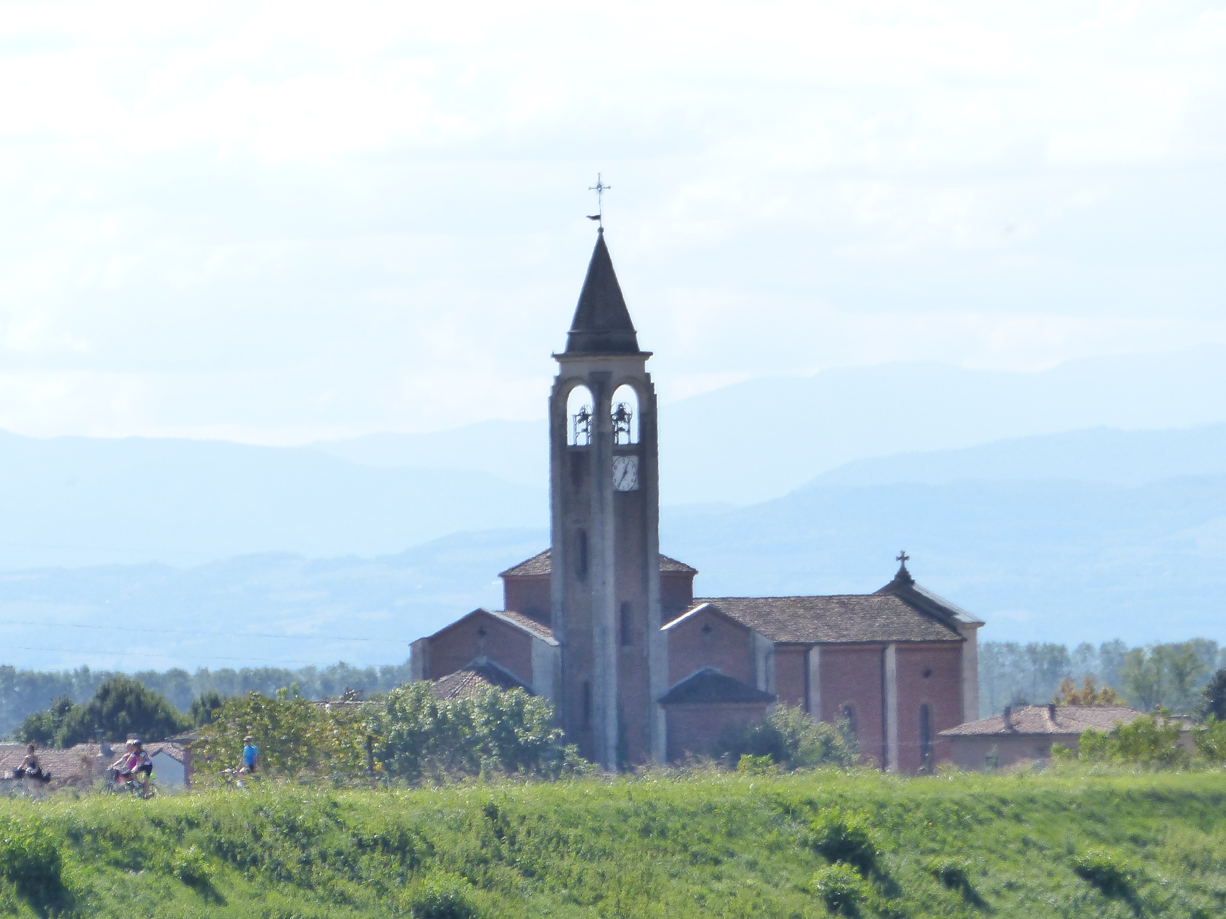 It was a cooler morning, only 15C as we rode our of Pavia, but we were still in short arms and legs and that sun was going to warm things up beautifully as the day went on. After the day starting so nicely, it soon took a turn for the not so enjoyable. We were on a busy road, a highway, with no shoulder to get out of the traffic, which is never much fun. The condition of the road too, was absolutely no fun. It was ridiculous. The craters and holes and cracks and lumps of token patching were so big, it was a pretty hazardous ride. All the while I was pedalling, I just kept thinking, ‘I hope we get through this without a puncture’ because the poor bikes and those wheels were banging and bouncing into and through some pretty major holes. Sometimes they could be avoided, but mostly avoiding them would have meant swerving into traffic and that was a less desirable option than banging through craters. The first 20km was like that. We made good time though and clocked up those first 20km by 10:30, so despite the obstacle course on that busy road, we were clicking along pretty well.