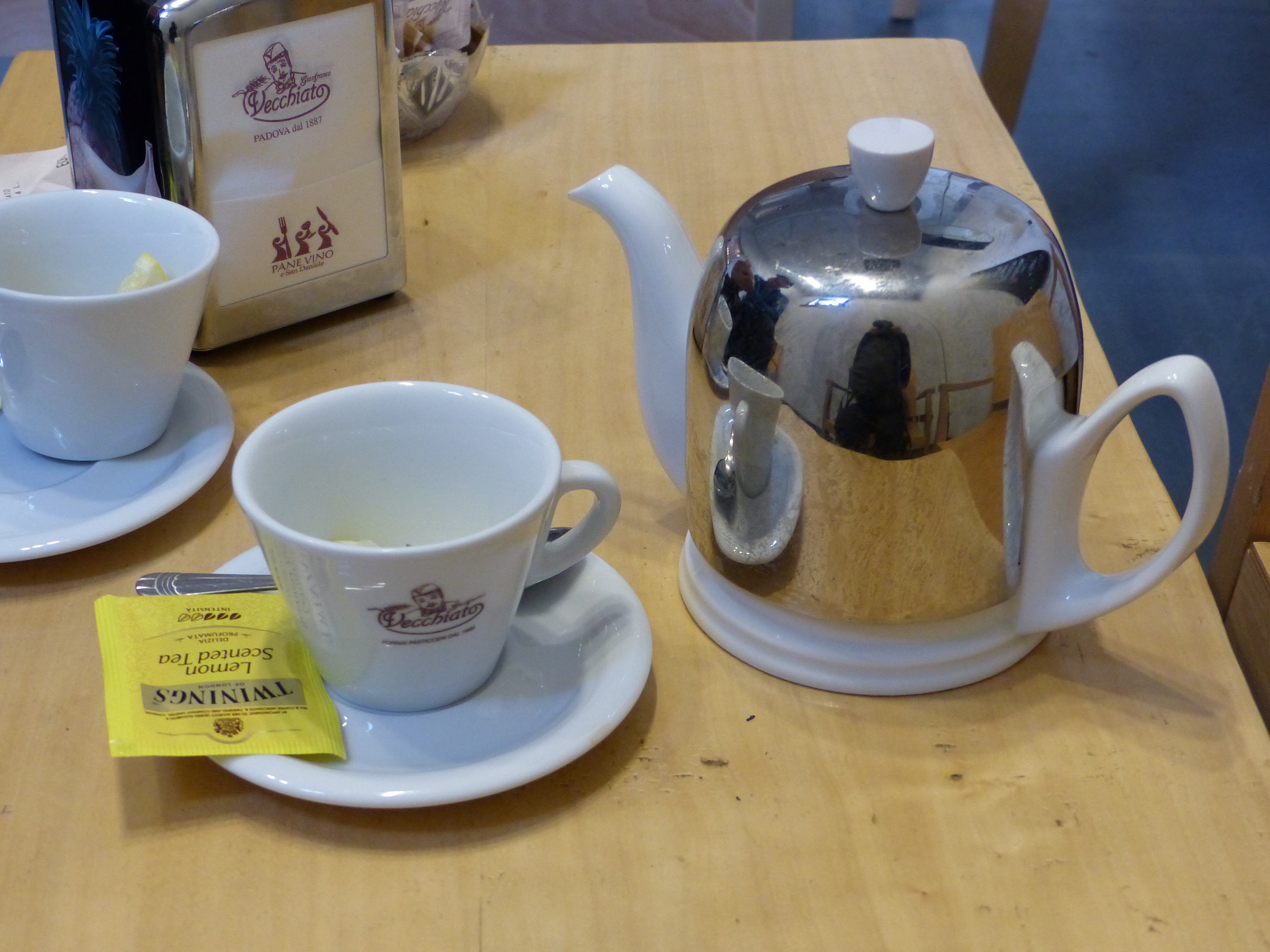 On we roamed, this way and that. We called into the local library and stopped at their cafe for a cup of tea. I was very taken with the tea cosy they used – very stylish and highly practical and effective!