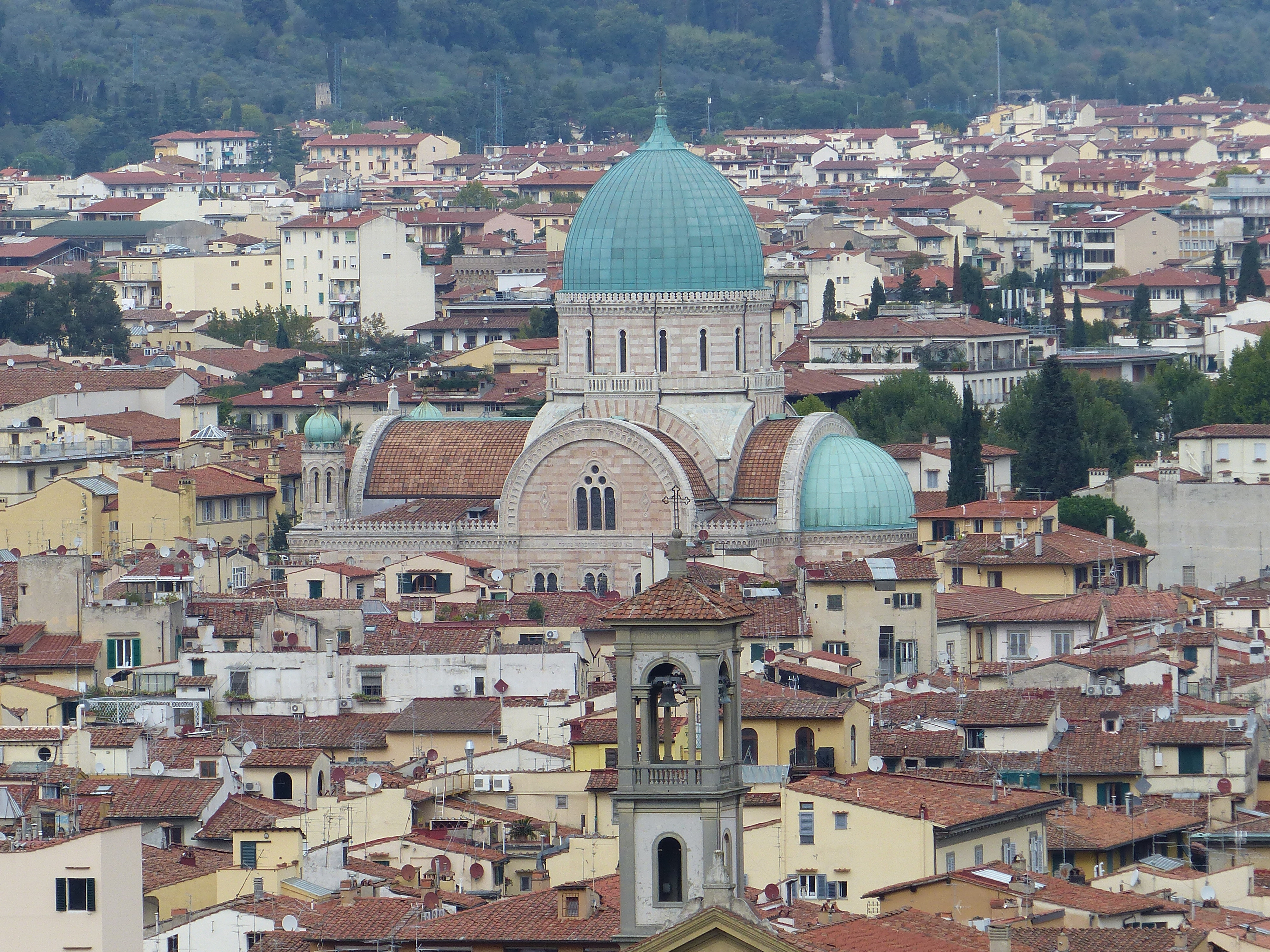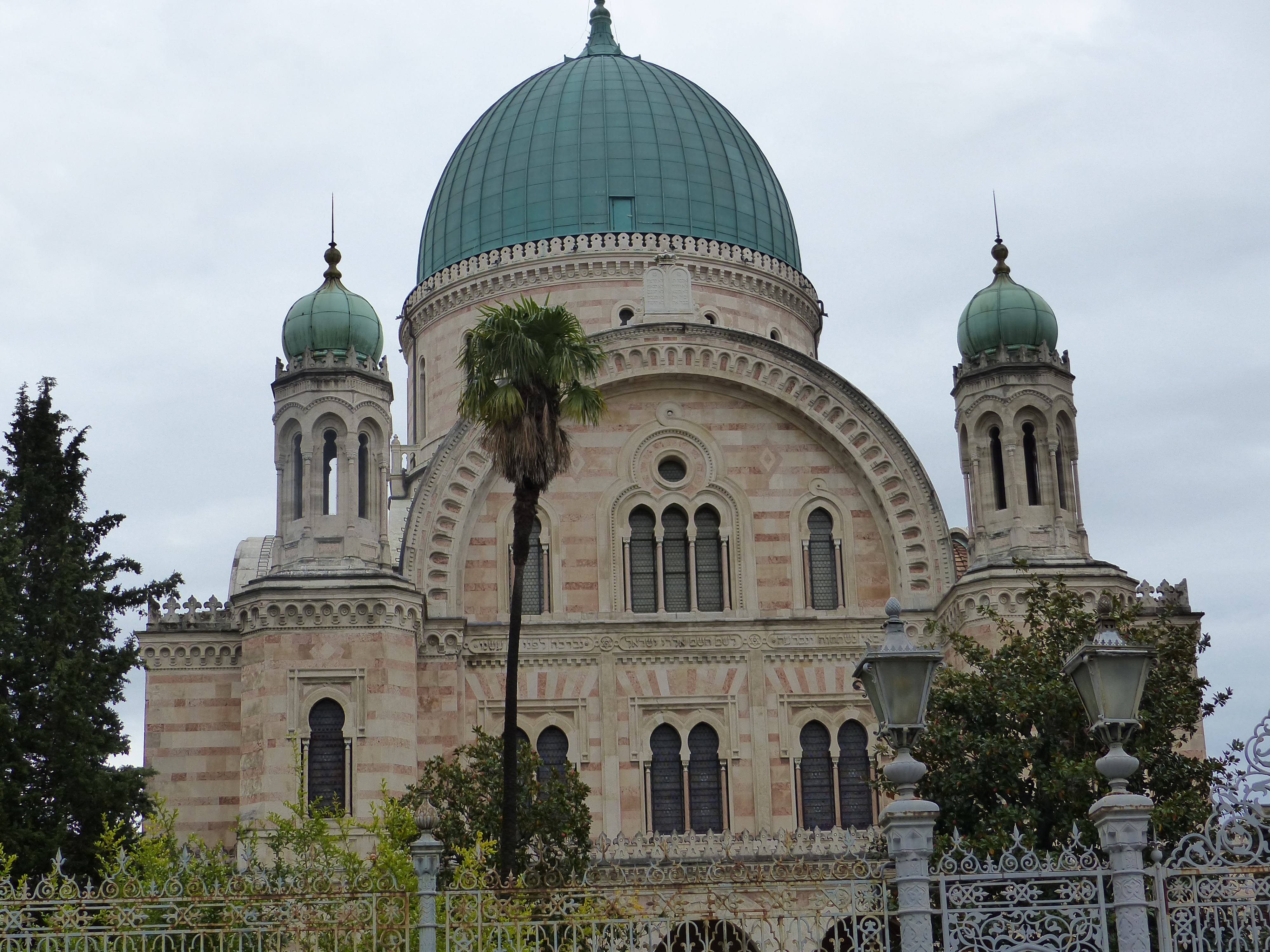 From the lookout above, we had seen a building, with a tarnished green roof, that we hadn’t been to, so we set off pedalling to find it. This proved considerably more challenging at ground level! We went along the narrow streets, with the houses either side, dodging the occasional car or motor scooter and the pedestrians. We took some wrong turns, did some u-turns, consulted the map, consulted the map again, went around the same street a couple of times, took a right, then a left and eventually found it. It was beautiful when we saw it from below. A grand, 19th century synagogue, practically a “new build” in this ancient city, but it was beautiful. There was an armed soldier on guard outside, so we hoped we wouldn’t get into trouble by taking a photo. We waited until he ducked into his little nook, then took the snap, just to be on the safe side!