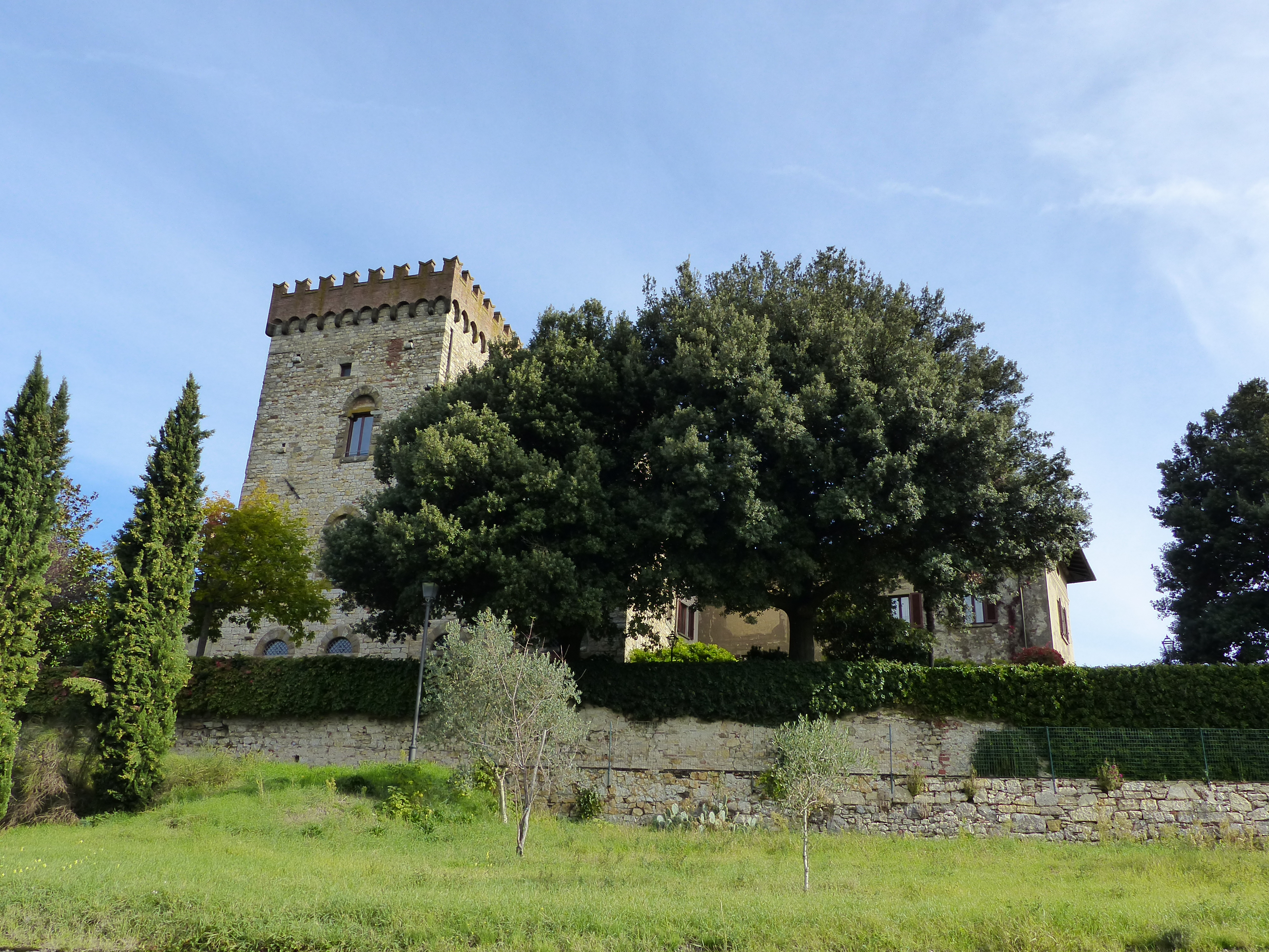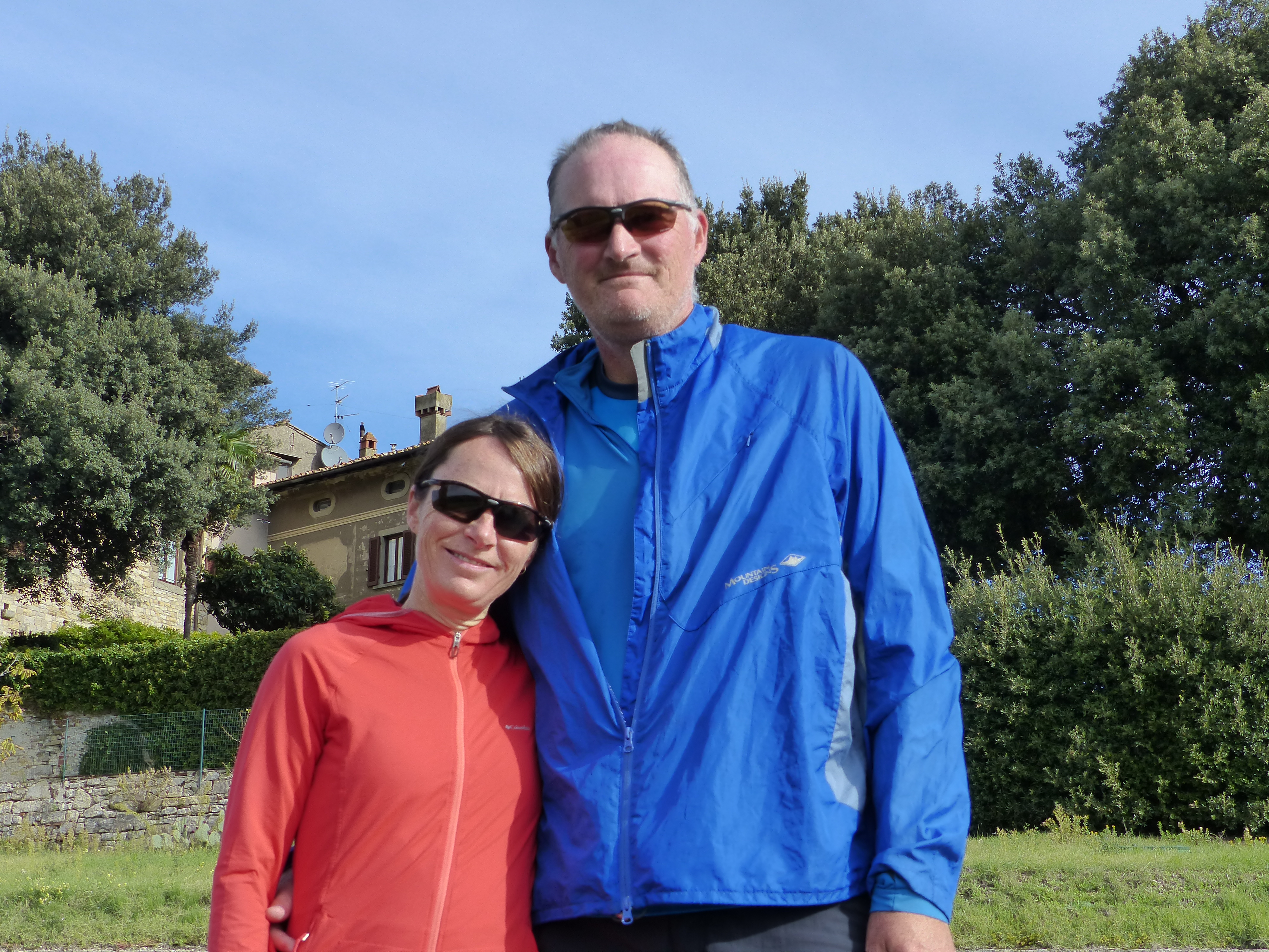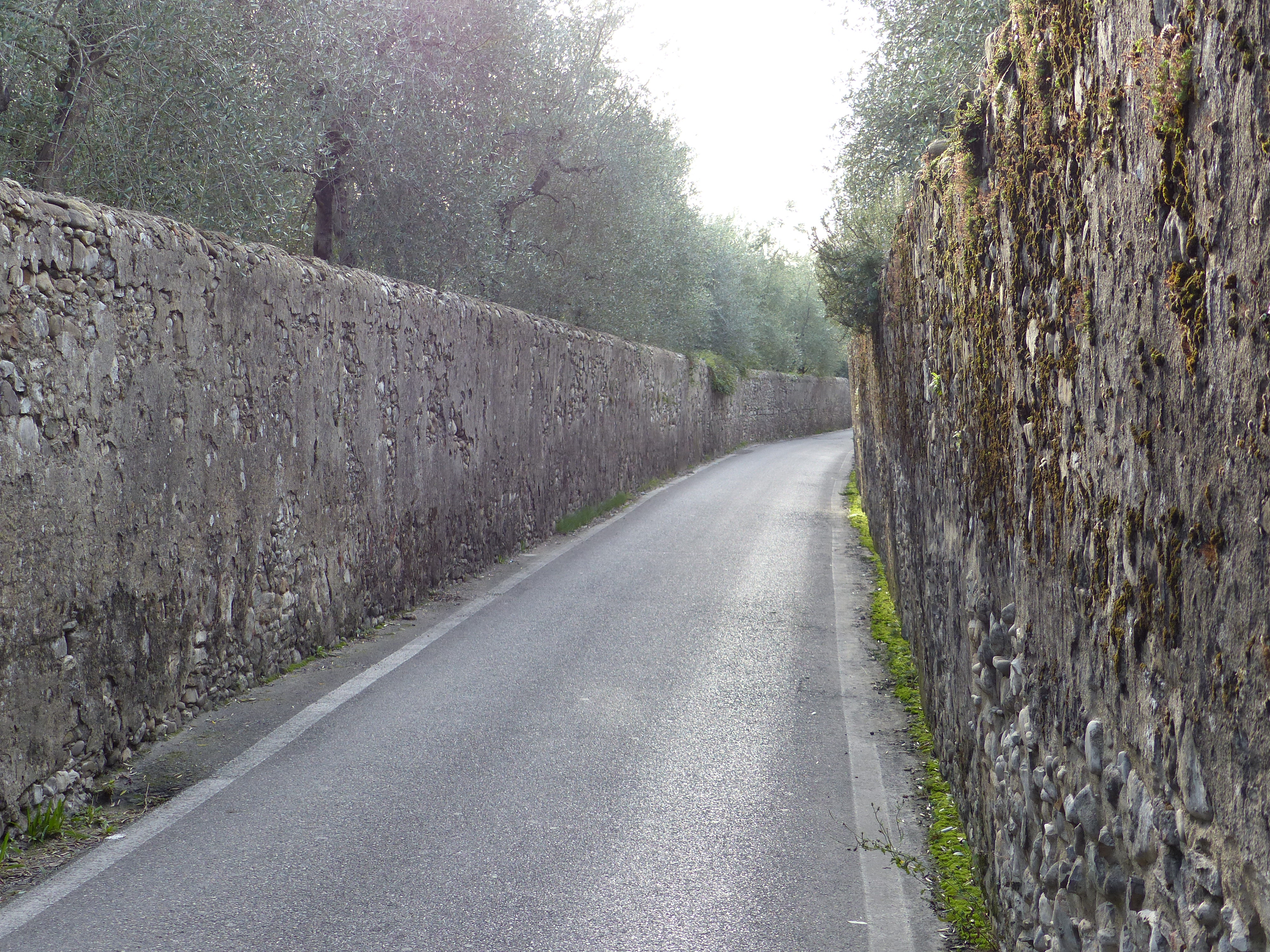 We pedalled through the streets of Florence, heading out of town, mingling with the morning peak hour traffic. We’ve ridden on busy main roads many times, with trucks all but grazing our elbows and this is a regular cycling hazard. Today we had a new one – narrow cobbled streets and transit vans! Those streets were barely a vehicle width wide and we were pedalling along them with our big fat panniers sticking out to the side, with vans trying to get past us. Some of them waited, some edged and nudged past and some just went for it and zoomed past our elbows. A cycling hazard unique to historic towns such as Florence! We made it through though and out on to the main roads. Then, with a right hand turn, we found ourselves on a lovely country lane, with high stone walls and it was quaint and charming and lovely.