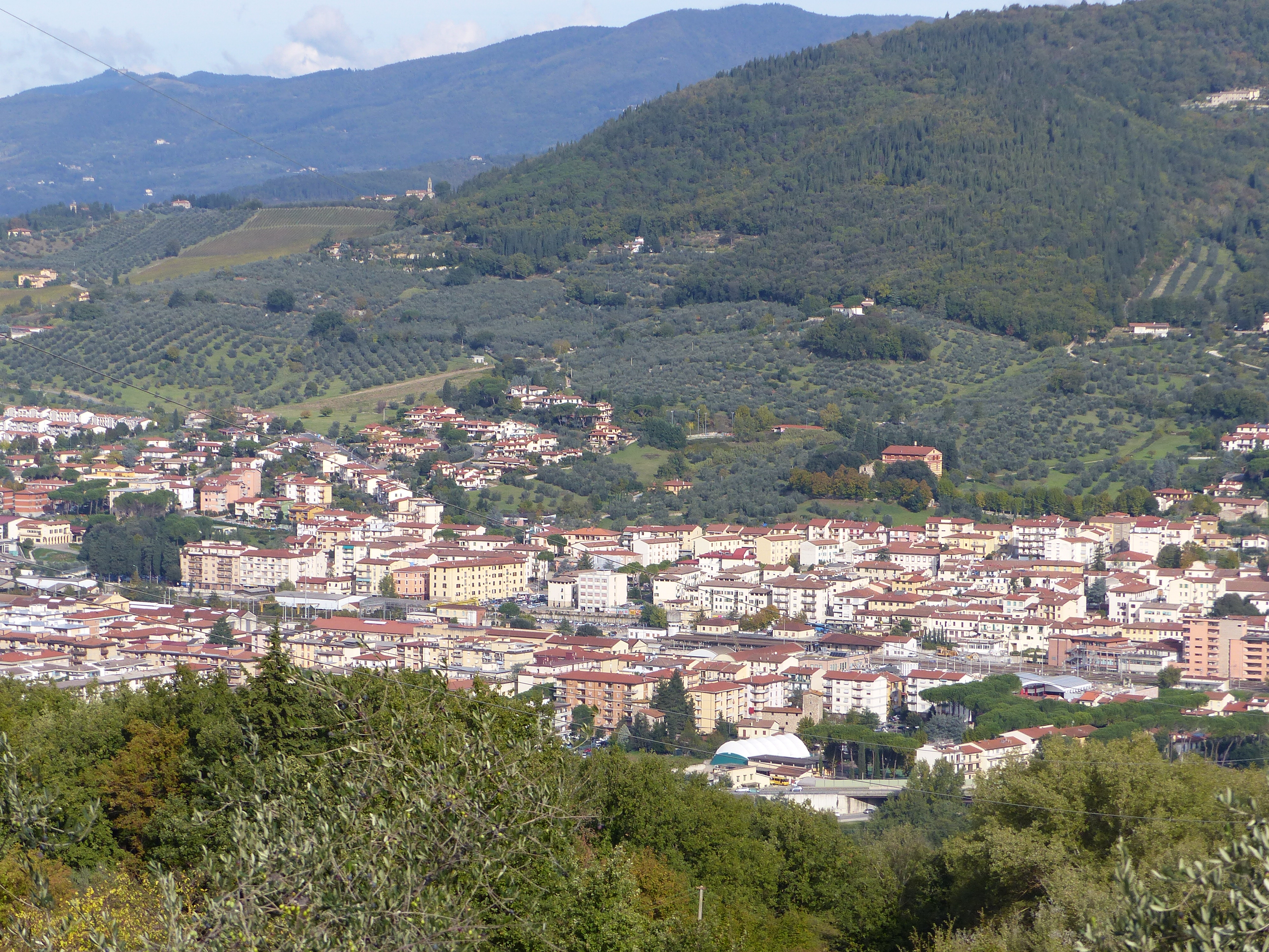 On we went, along another road and eventually made it into our destination town, Terranuova Bracciolini. We found our accommodation and after a phone call to the owner, we were eventually met by a lovely lady who hadn’t received the booking, but was very apologetic and helpful nonetheless. She showed us inside, to what is a small duplex studio, with a small lounge on the ground floor and bedroom and bathroom on a mezzanine, which we have to ourselves. She was happy for the bikes to stay downstairs, so we’re all in here together, warm and comfortable.