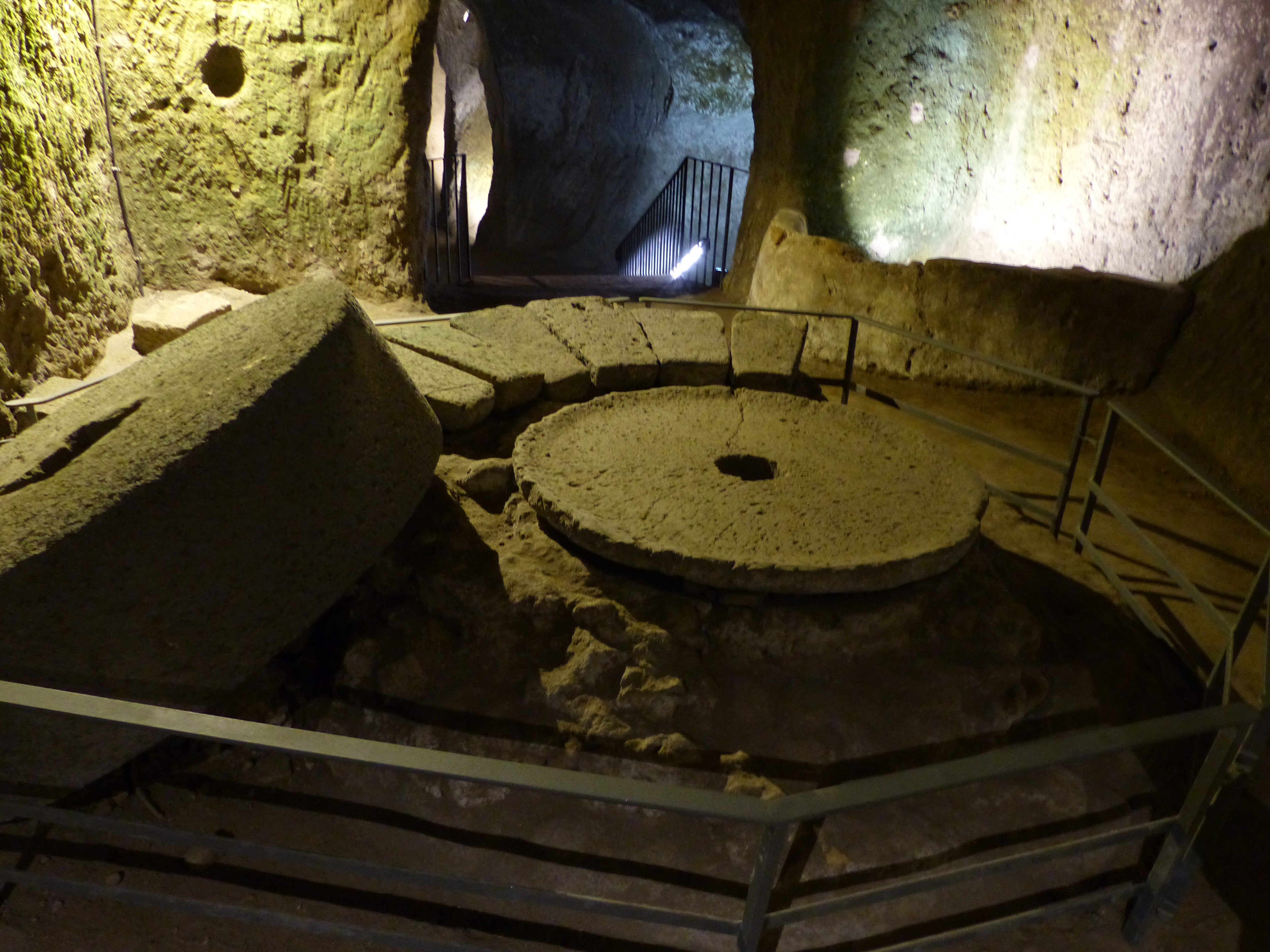 One of their main industries was the production of olive oil, which was processed underground. The olives were ground on big stone wheels, turned by a poor little donkey. Then the olive mush was put between grass mats and pressed to extract the oil. The oil was mostly used as lamp oil. I just felt so sorry for the donkeys. What a life, spending your existence underground, walking in small circles and then living in a cave.