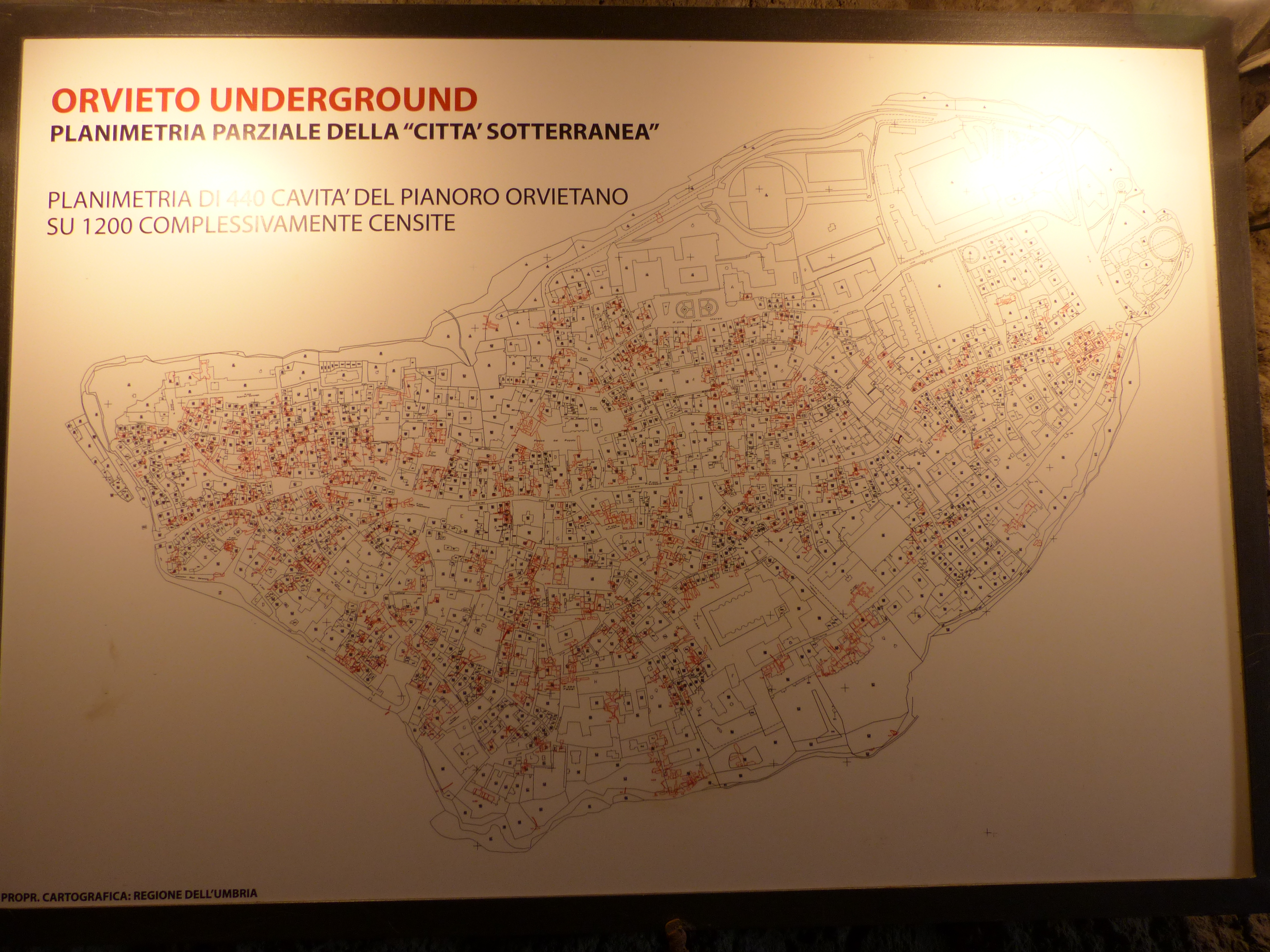There are 1200 caves under the city of Orvieto. We only went into two of them, because most are now privately owned. Every house, restaurant, shop and cafe in Orvieto has its own cave, which are now mostly used as wine cellars. Orvieto was established by the Etruscans as a fortress, but the cliff top isn’t very big, so when they needed more space, they went underground and began digging the network of caves.