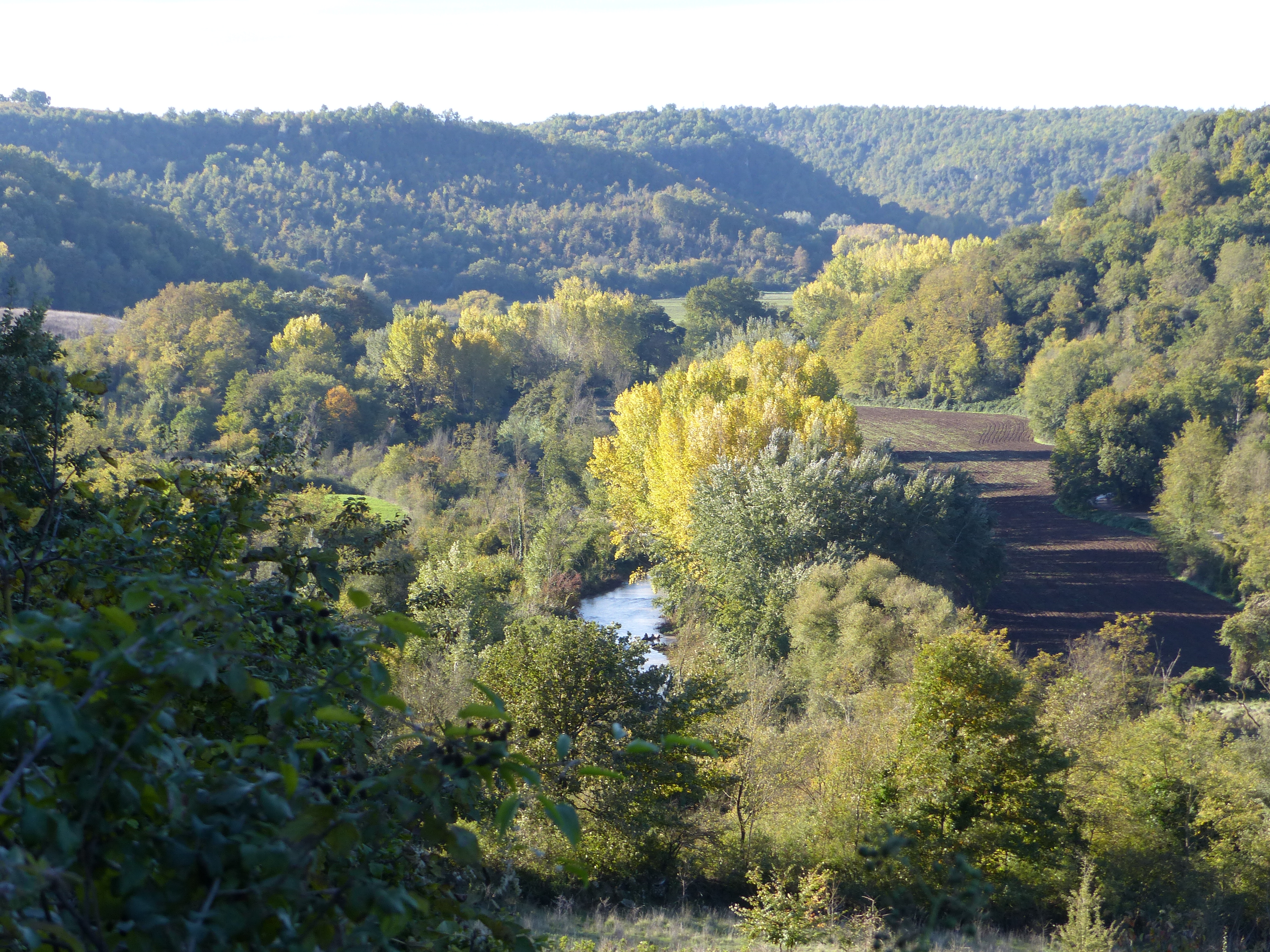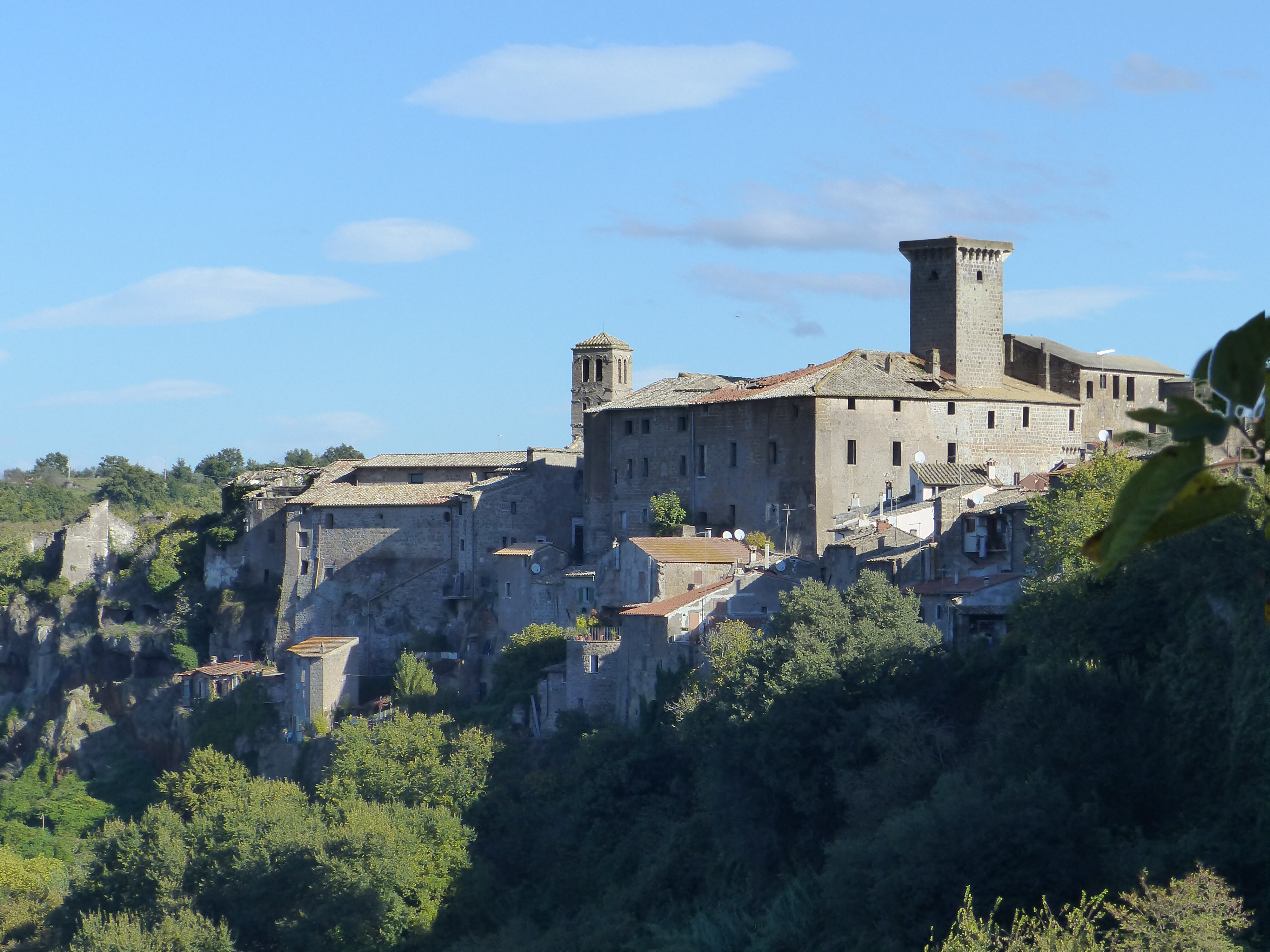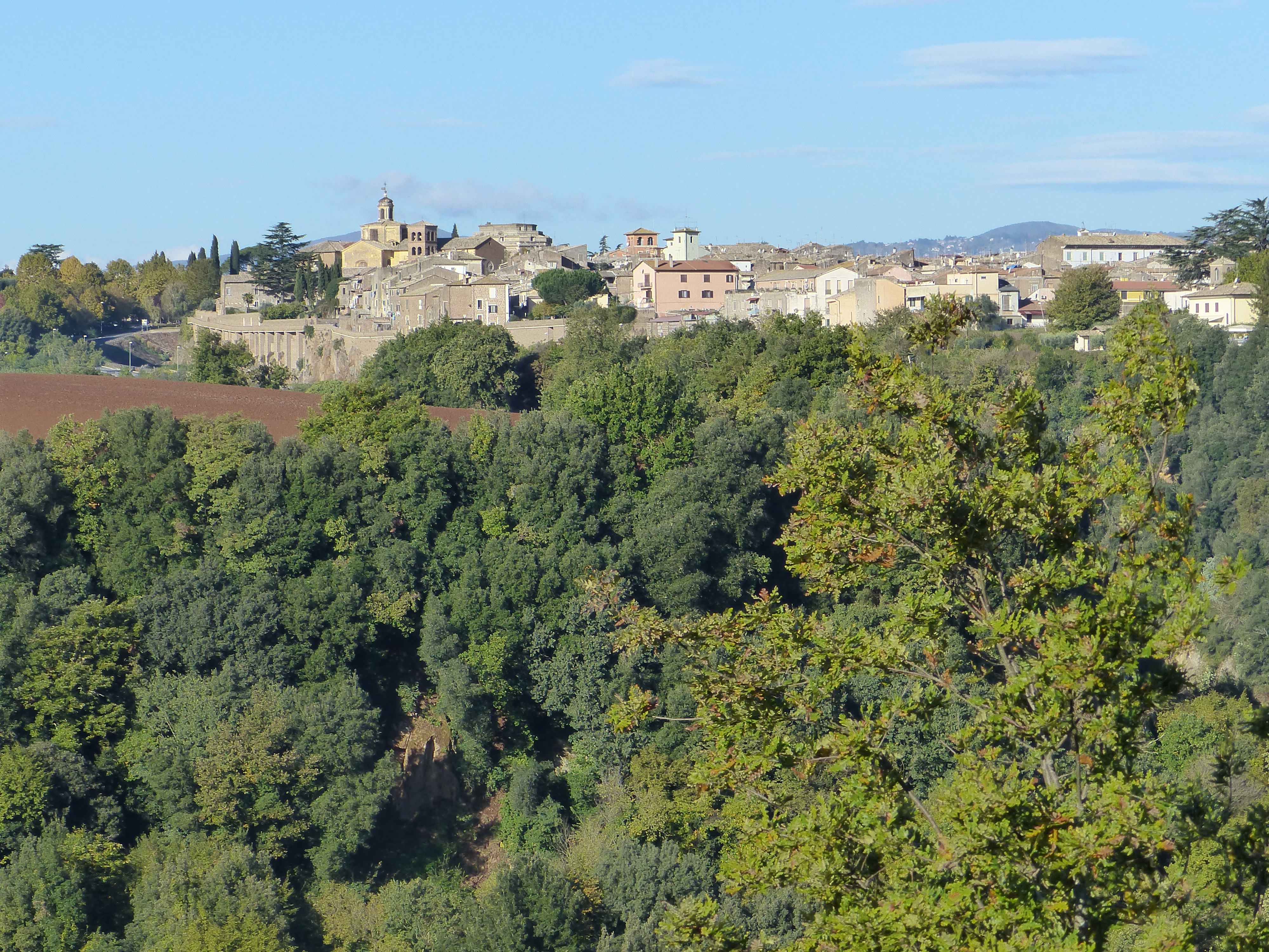I think today was the nicest ride we’ve had in Italy so far. We had lots of climbing to do, but apart from that, the roads were pretty quiet and were  narrow country roads, lined with oak trees. It almost felt like riding in England. The wind was blowing quite strongly and as we rode under the trees, in their beautiful autumn finery, we had yellow leaves raining down on us, floating and fluttering and falling in the wind, like drops of sunshine falling on us. Gorgeous. As well as the leaves, I had the constant sound of DINK…DONK…DINK…DINK…DONK… as the acorns in the trees blew down on top of me. I was glad I had a helmet on, because they made a clatter when they hit! I felt like Henny Penny with the sky falling!