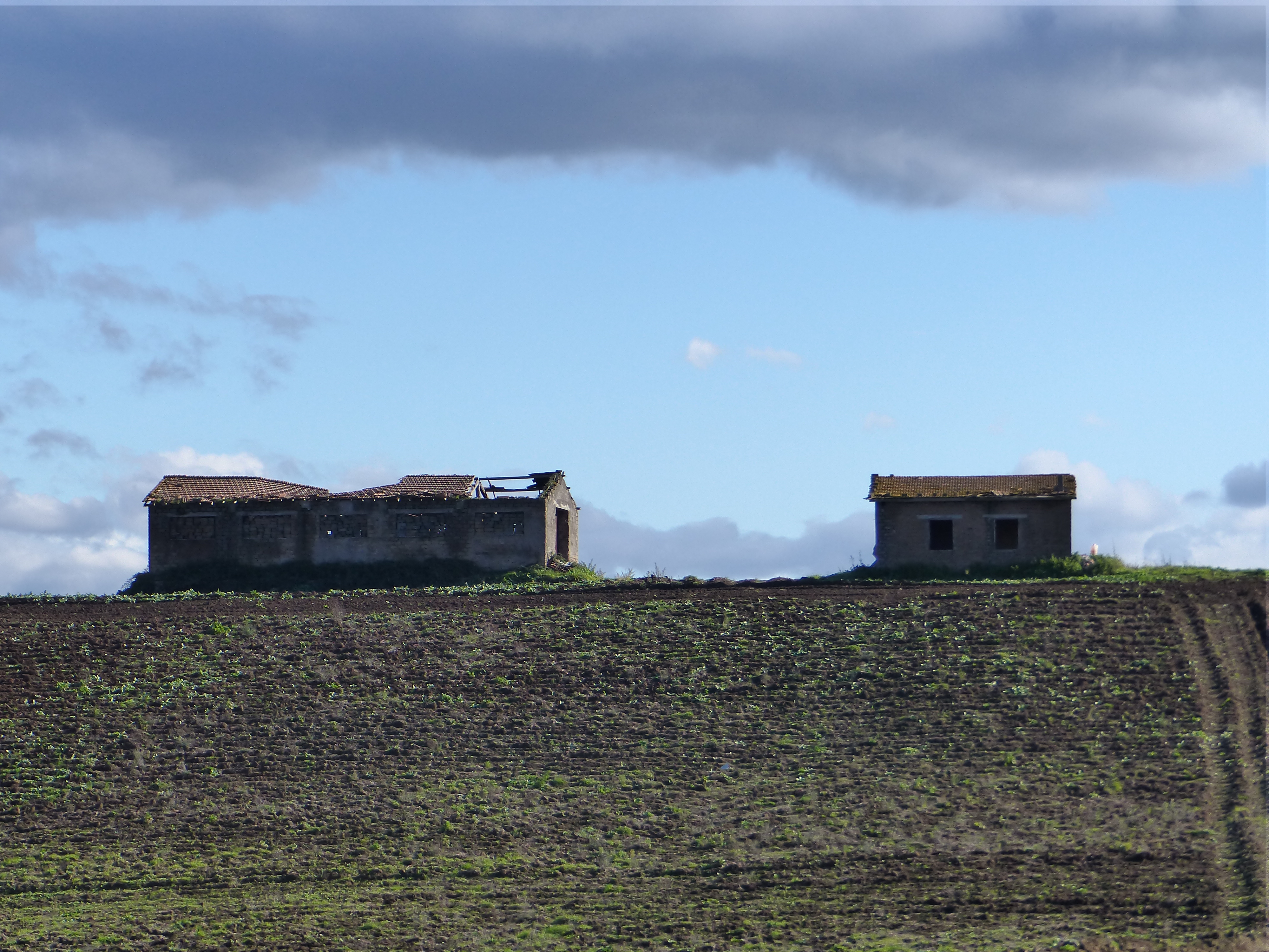 We decided not to stop for elevenses, since that would have just meant sitting in the wet, getting colder, so we kept on pedalling. We’d planned a shorter ride today anyway, knowing we were most likely in for a wet one, so we decided to just get to the end before stopping. We’d left late, trying to arrive at our destination as close to check-in time as we could to avoid sitting around too long in the wet, but we were still going to get there with lots of time to spare. Some cold and wet waiting around would be our reward for this ride. As we rode along, I saw something in the distance that looked promising…some clearing sky. It was a moment to use our favourite, British meteorological term.