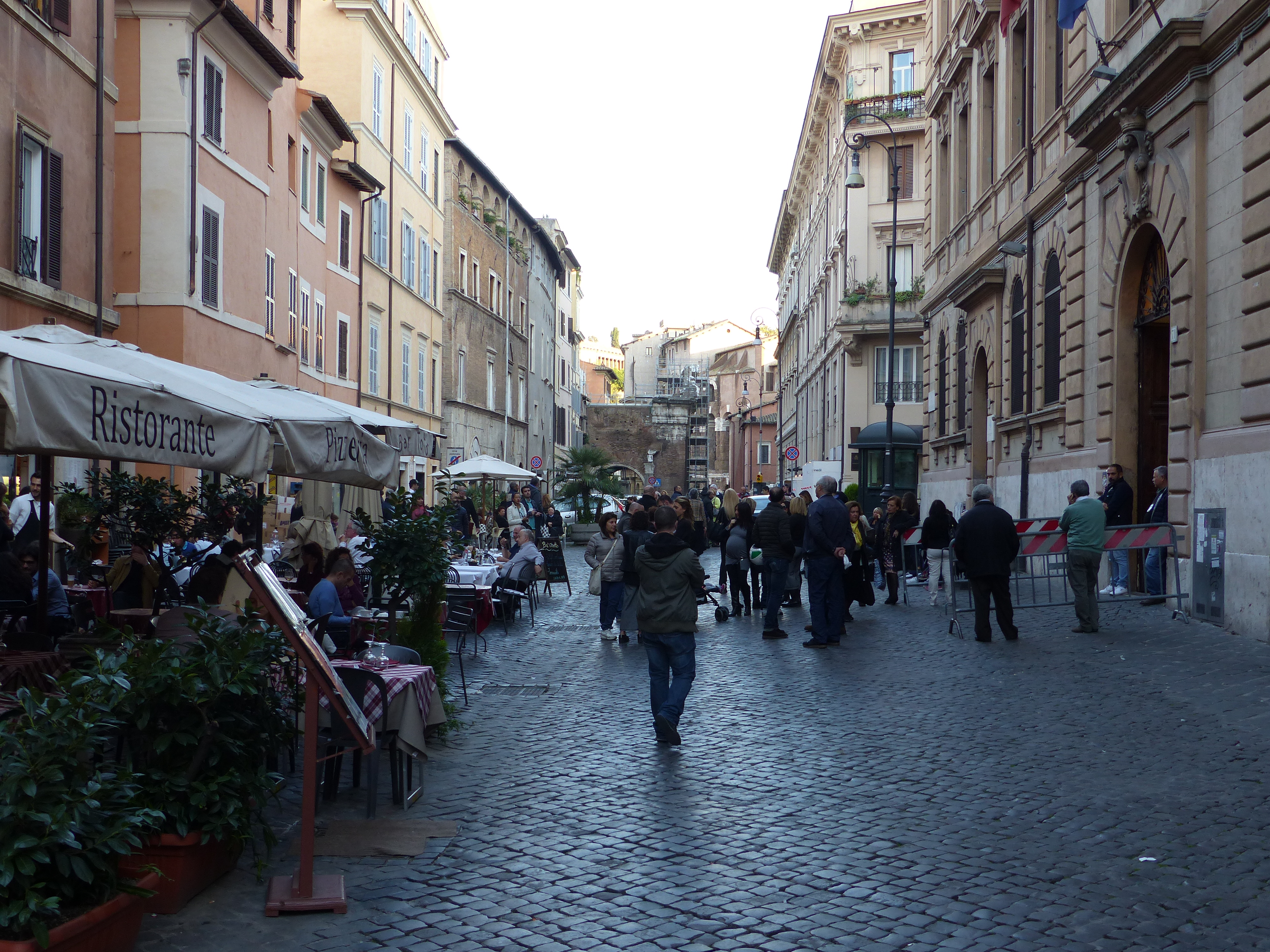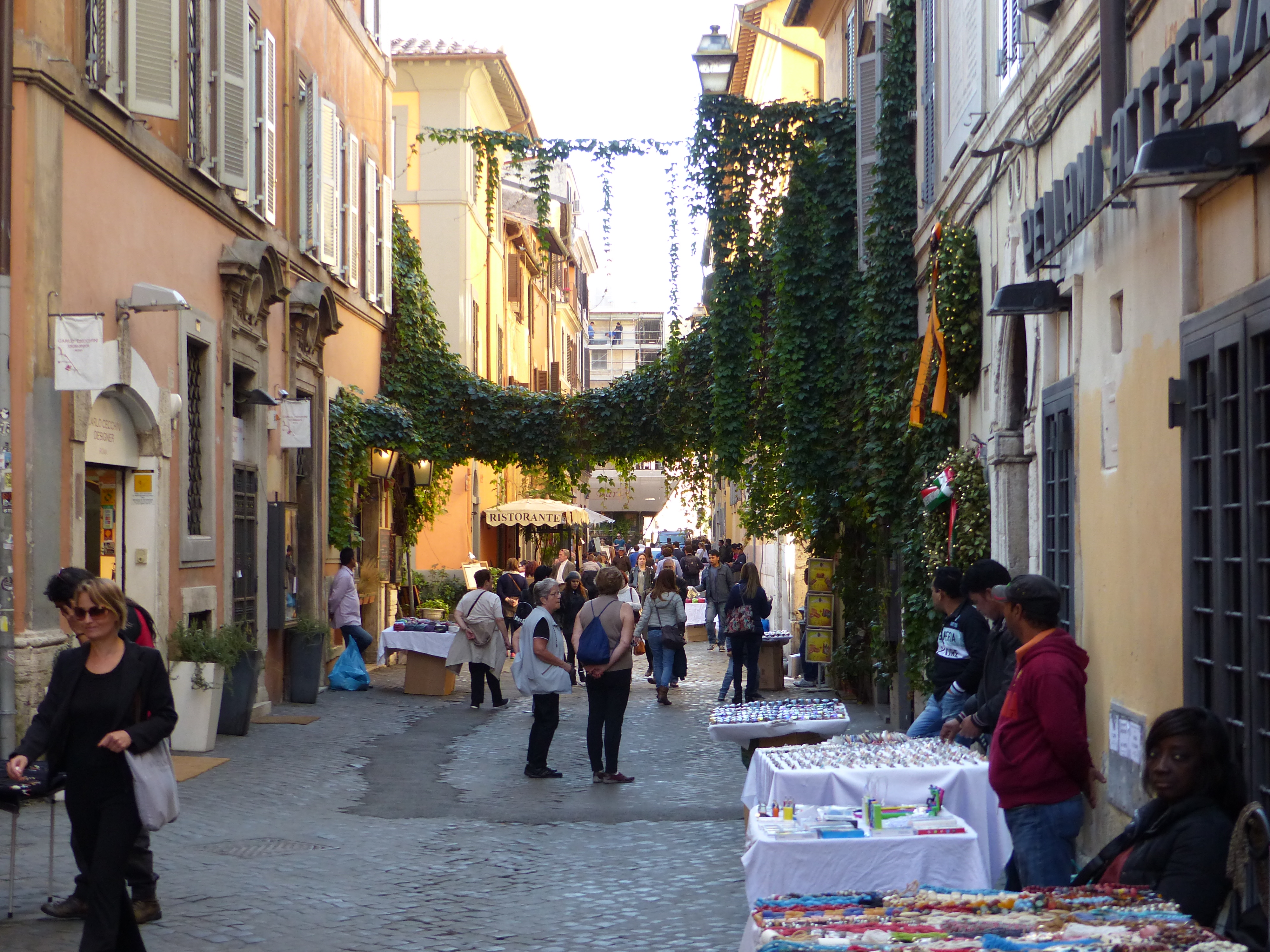 Residents of Trastevere, have traditionally been quite proud of “never setting foot on the other side of the river”! It’s a mixture of bustling streets lined with restaurants and cafes, and quiet lanes, with old, residential apartments, green grocers and small, tucked away trattorias. In medieval times, sheep would have wandered the streets, being herded along the lanes and under the narrow arch ways. The houses don’t have chimneys, so in those times smoke would have billowed from the windows of the houses. Some of the streets are named for the local business that originally traded there, such as Via dei Salumi (Salami Street). Trastevere was originally a commercial neighbourhood and would have been clogged with a variety of stalls and traders doing business.