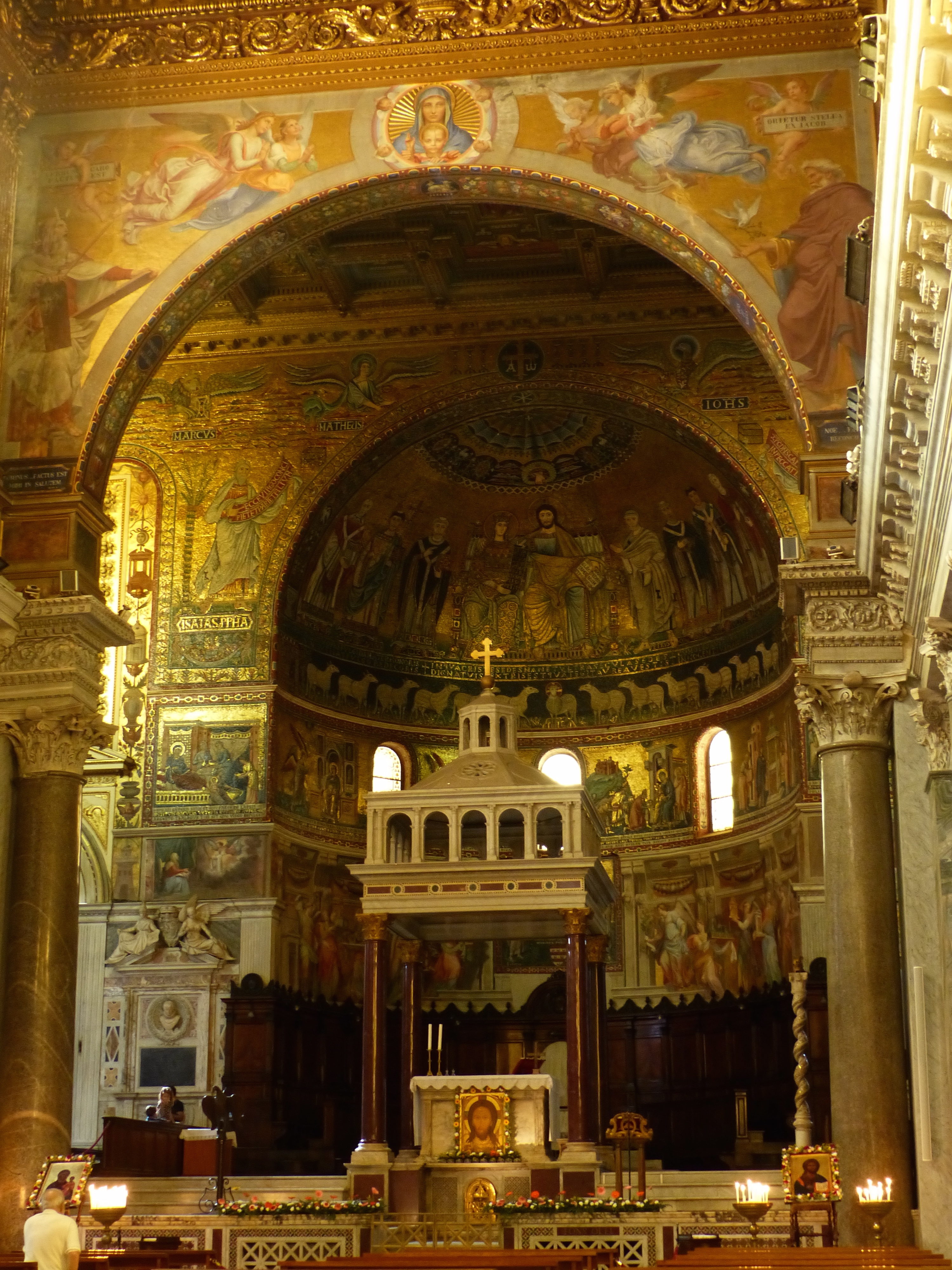 Our roam took us to another grand church, sitting within the Piazza Santa Maria. The Church of Santa Maria in Trastevere was quite a humble looking building on the outside, but that all changed as soon as we stepped inside. The ornate ceiling, gold mosaics and alter were some of the most opulent we’ve seen. This church is the first church dedicated to the Virgin Mary and is one of Rome’s oldest. We sat and took time to just look up and around at the utter splendour of the interior. I don’t think I’m ever going to understand the church and all its gold, with so many of the faithful living in poverty, so I just looked at it for what it was. The building was quite beautiful, no question.