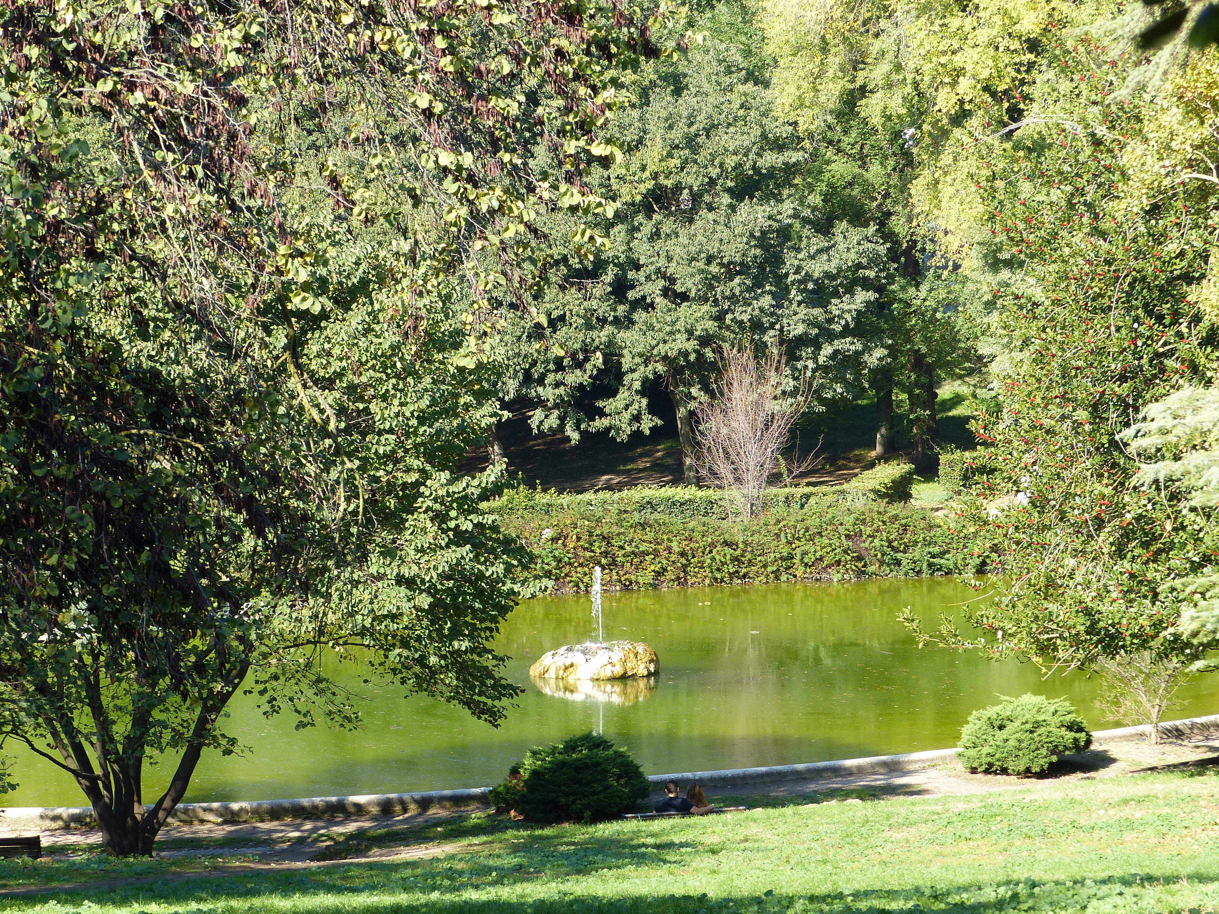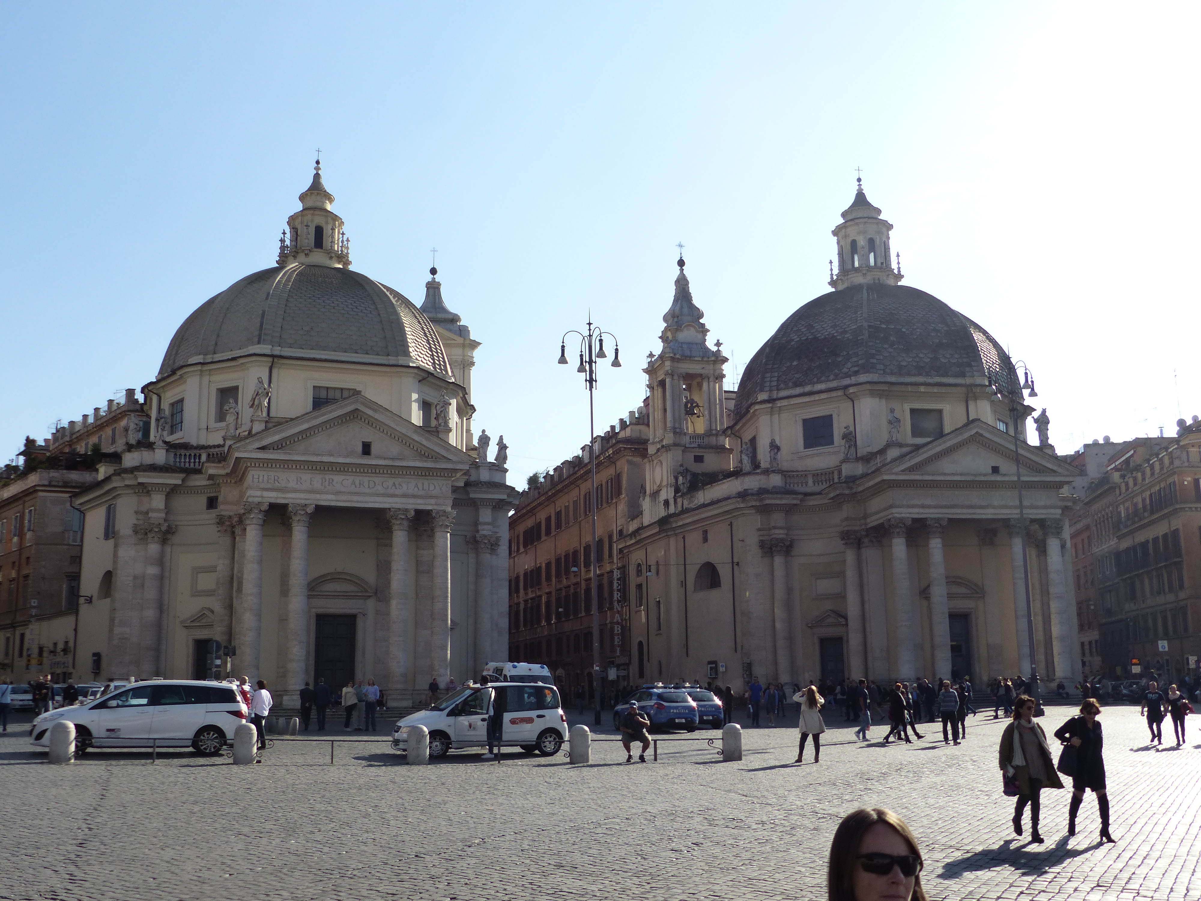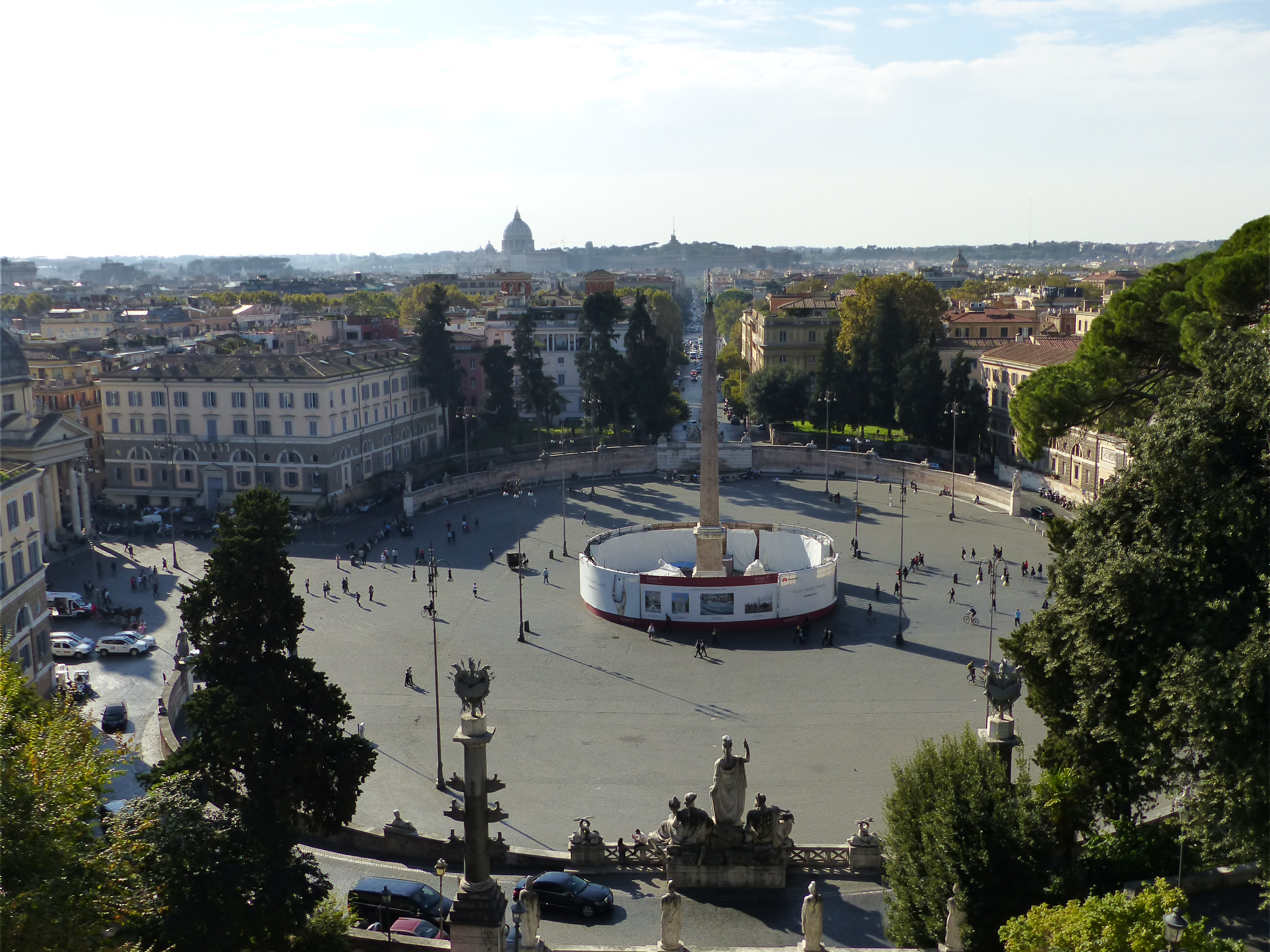 With the day being as glorious as it was, it would be made even more so, if we could find a park to stroll in. Our carefree, freestylin’ ways took us up the hill, where we found ourselves in the parks and gardens of Villa Borghese. What a perfect place to stroll in the sunshine. It actually felt like strolling in a French park and we commented on the similarities to the Tuilerie Gardens in Paris, with the wide paths and design. We had a lovely stroll among the trees and along the paths and then set off back down the hill, to have a look at Piazza Popolo, which had another fountain worth a look, surrounding a lofty obelisk.
