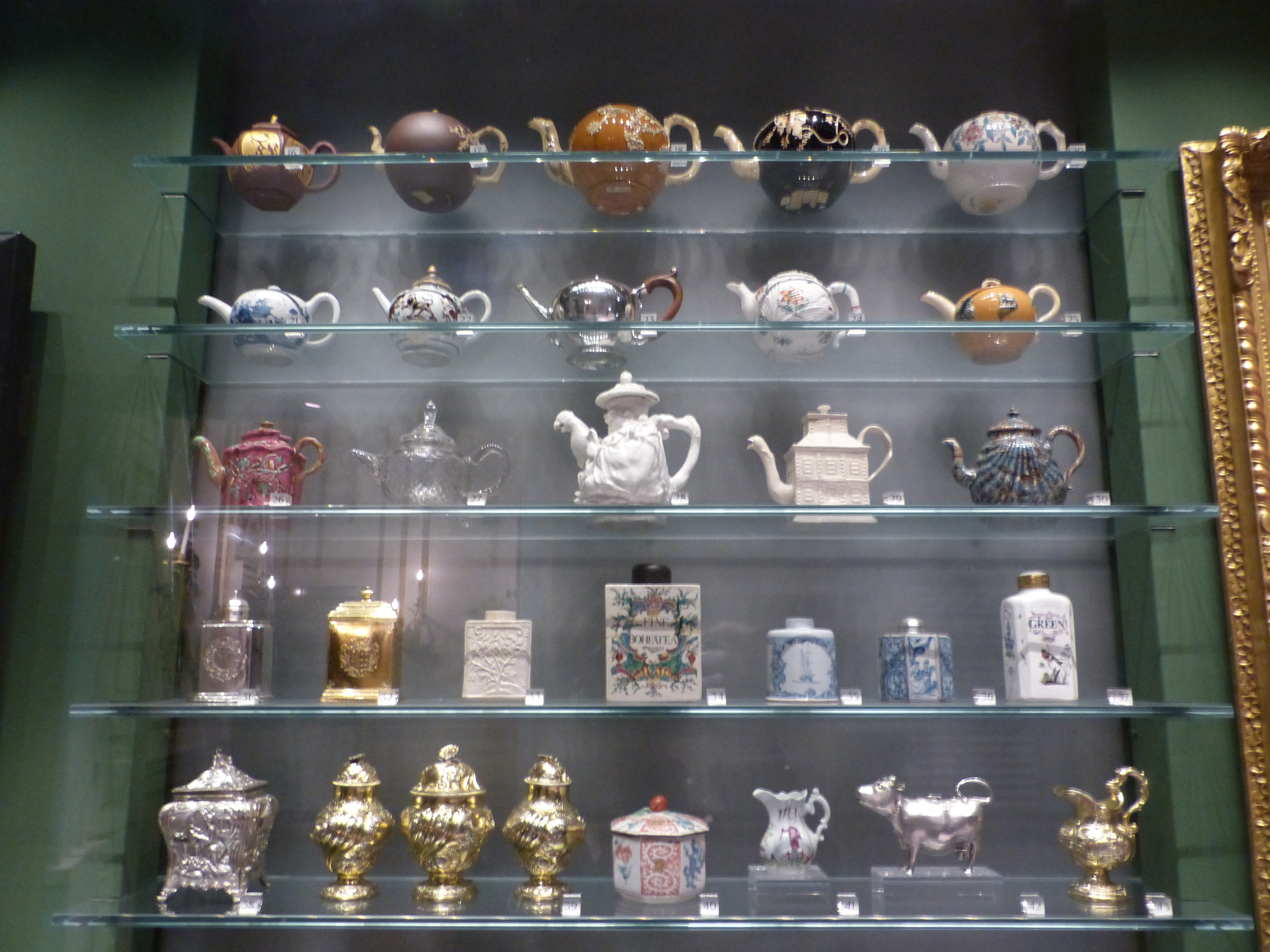 I think it’s been fairly well established to this point, that I am a tea drinker! I do like my tea, in fact I like several mugs of it a day when I can. So, I was of course drawn to this display of teapots and the exhibit about Tea Time. Tea Time was used to teach genteel behaviour and manners to young girls and ladies (shame that purpose bypassed this scruffy gal!) and was an important occasion for elegant sociability. Through the 1700’s tea drinking became increasingly popular, although doctors actually cautioned against it! In polite households, tea was served in the drawing room after dinner and the lady of the house presided over the service. Early on, tea was served in the Chinese manner, without milk, but as it became more popular, it took on new habits and ways of being served. As I looked around at the tea services and paintings of “tea time” in period England, I did ask myself, if England has such a rich history of tea consumption, why, oh why, are they now so darn hooked on tea bags!? Bring back the leaves people! Learn to love the leaf again! Bag the bag!