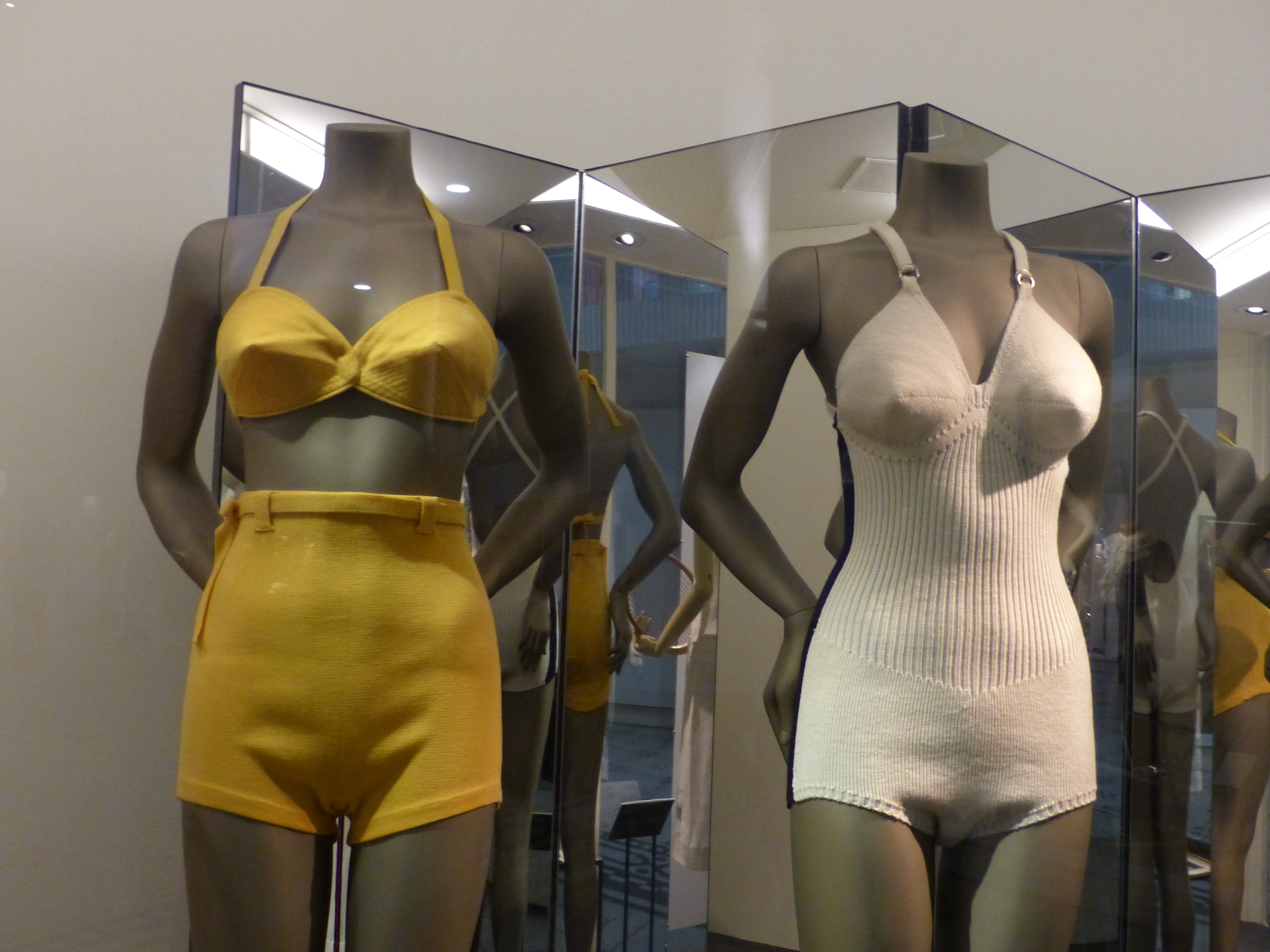 One of my favourites though, were these woollen bathers from the 40’s and 50’s. How on earth could you have gotten wet wearing those! They would have weighed a ton, not to mention getting very saggy, once all that wool took a soaking. How did they stay up and you not end up with a saggy baggy bikini bottom hanging down to your knees!?