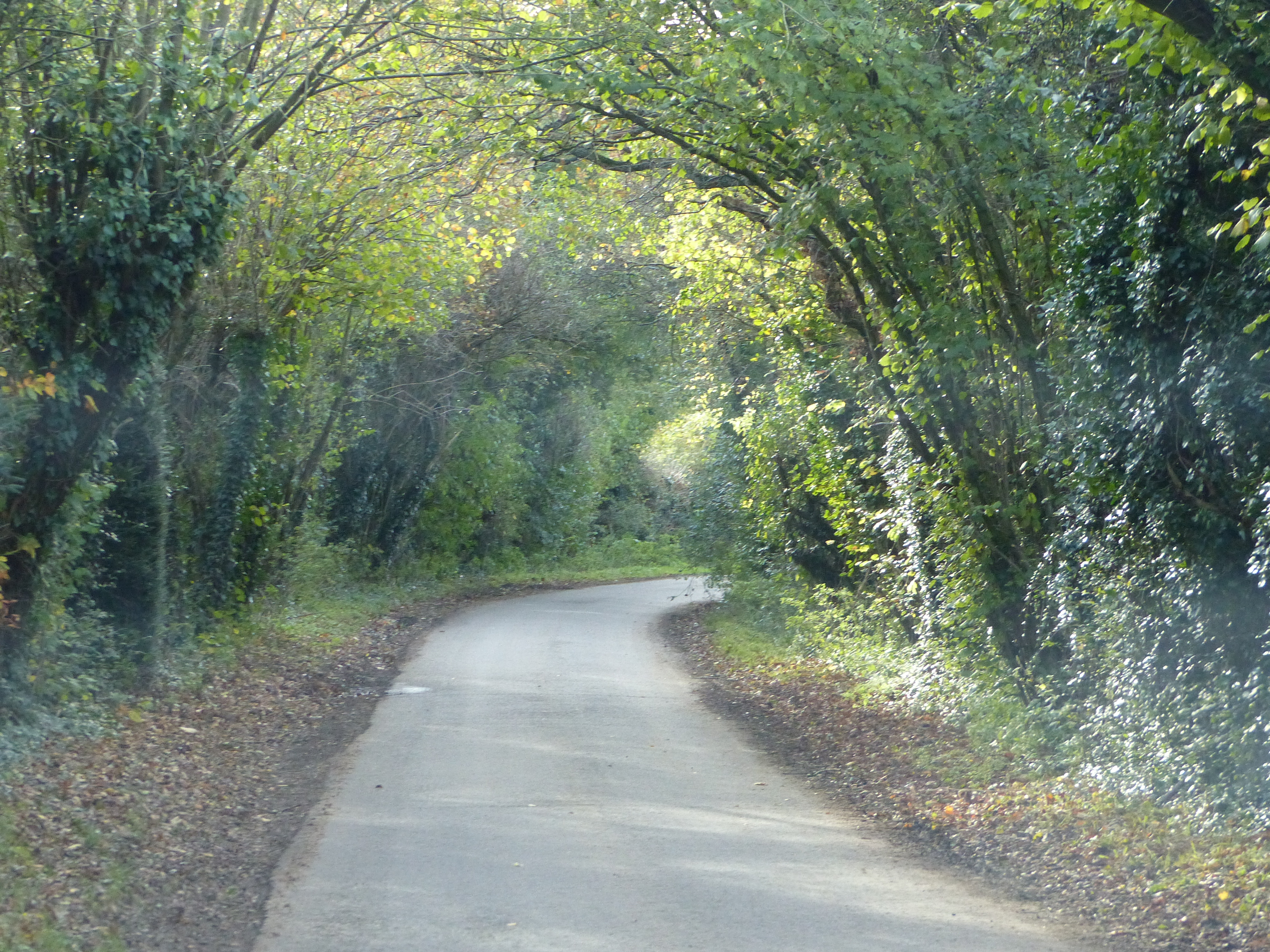 On we went, along the narrow country lanes lined with hedgerows, just like the ones I loved riding along so much and through tunnels of trees. We went down a 14% gradient hill and we both uttered a “Pah!” we rode up steeper than that! That’s nothing! I also commented that I’d actually rather ride up steep hills, than ride down them. Up is hard, but down is scary, so I’d always rather tackle the uphill rather than cross my fingers that the brakes will hold on the downward ride. Of course Steve disagreed – the thrill of the downhill ride is one of his joys! Steve just becomes the speed machine, letting rip from the top of the hill, hunch shouldered and head down, flying full tilt, with no braking at all! His adrenalin ride!