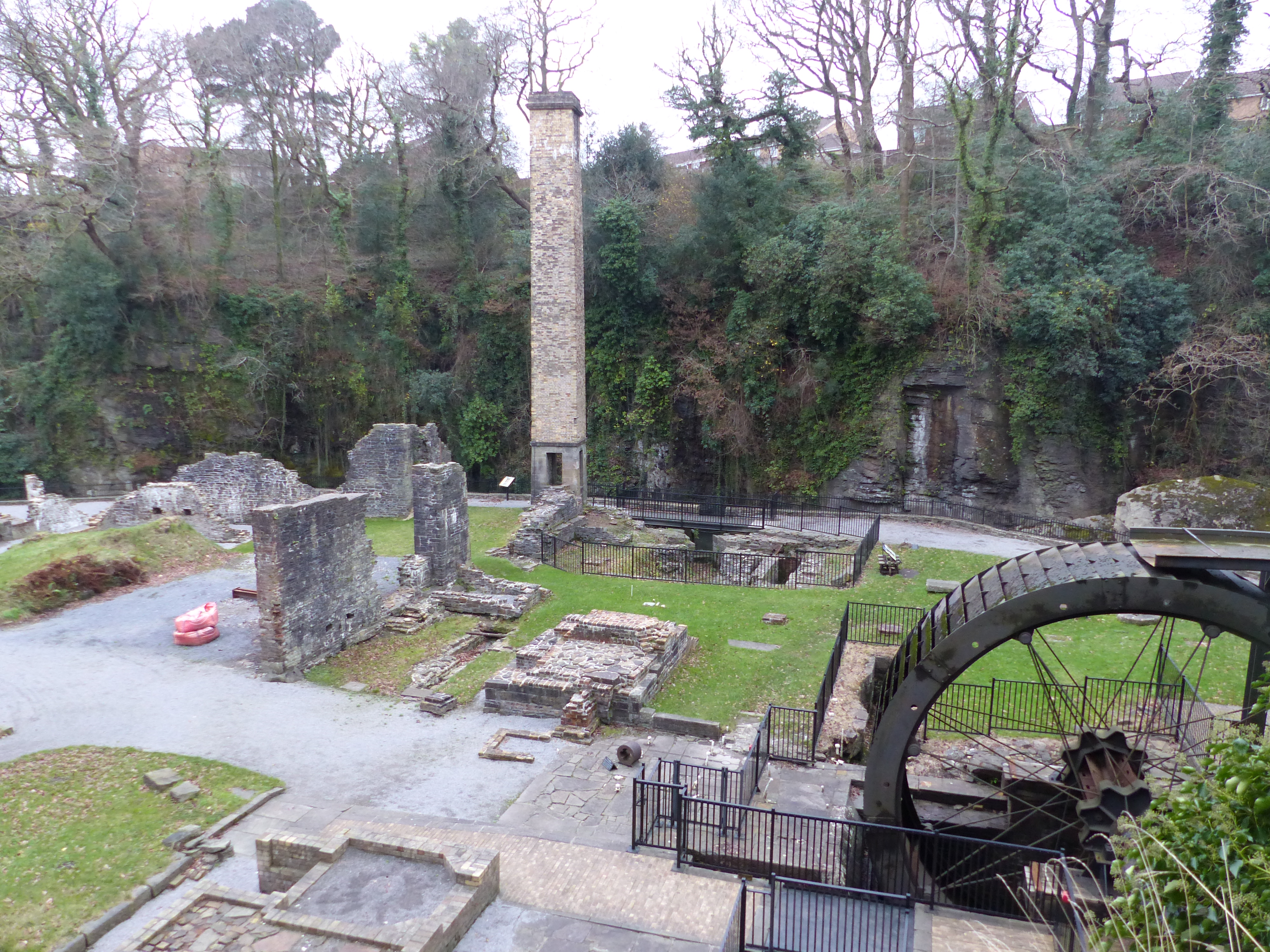 Off we went, being blown and buffeted around. There were more weather warnings today, not yellow ones, but red ones, for winds up to 80 miles per hour (128 km.p.h), rain and flooding, with some rivers already having burst their banks. Despite the weather, we stopped along the way to have a look at Aberdulais Tin Works and Waterfall. This was the remains of a tin works, which was the last industry in the area and dates from 1584.