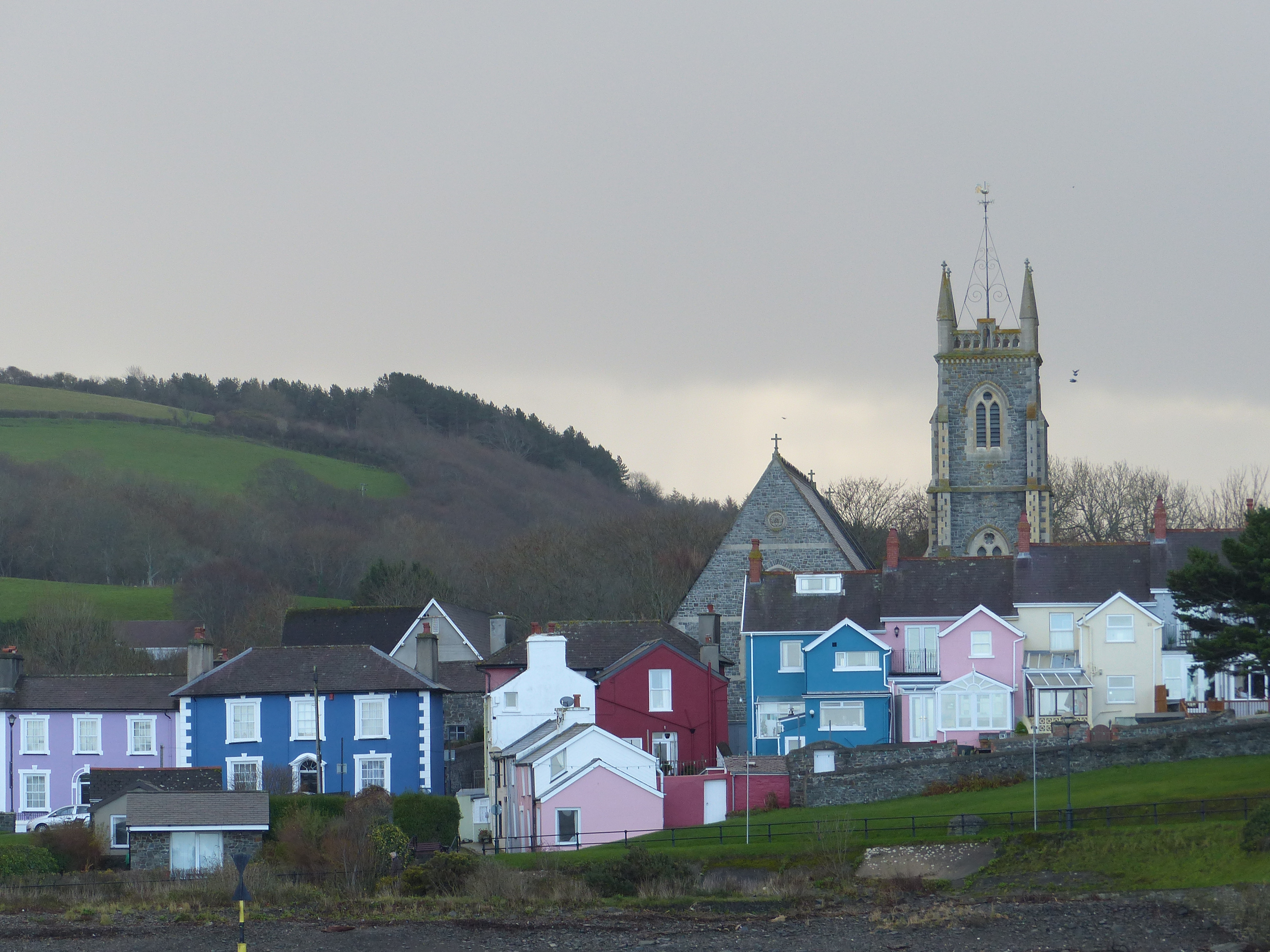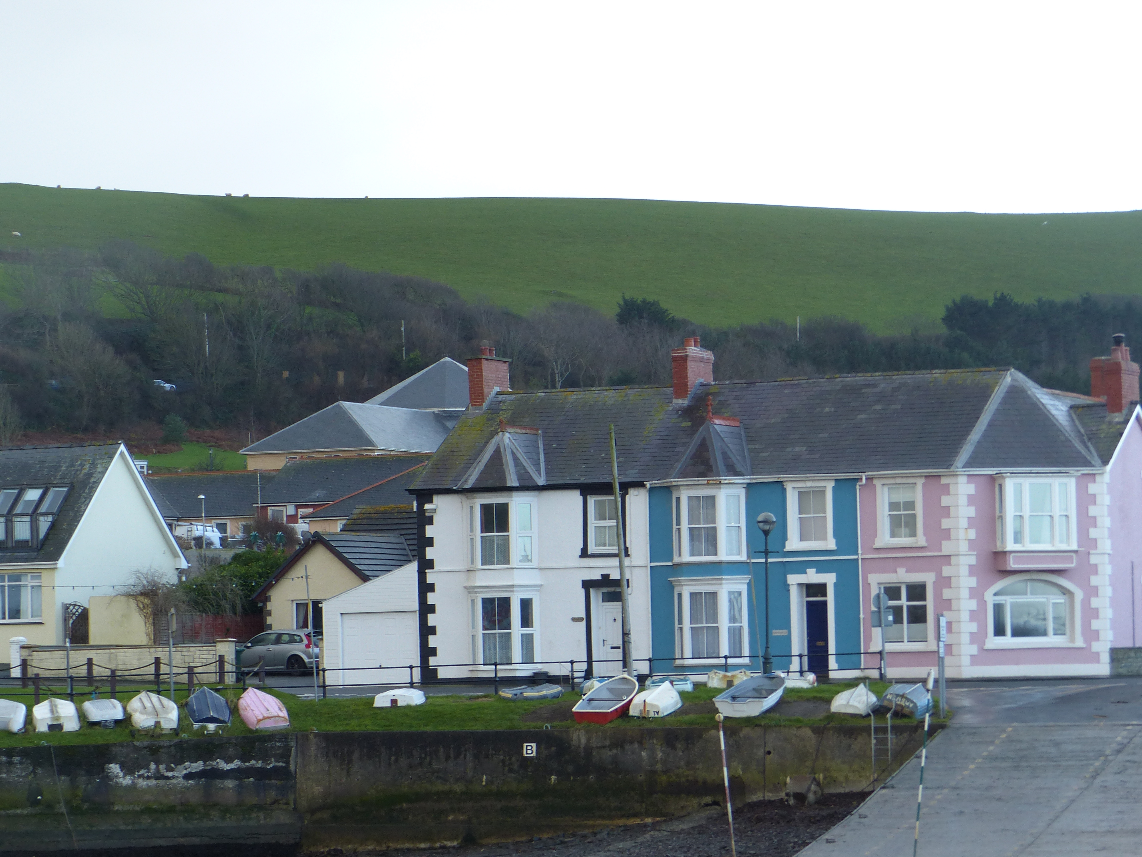 We passed through the little town of Aberaeron and what a gorgeous little town it was. It sat beside the sea and all the houses were a different colour. It was so charming and looked like it was straight from a fairy tale or chocolate box, with rows of pretty coloured houses. Just as we were slowly making our way around the streets…down came the rain…big fat cold rain…dumping down like a waterfall in a bad mood. It didn’t detract from the lovely surroundings though, which remained picture perfect.