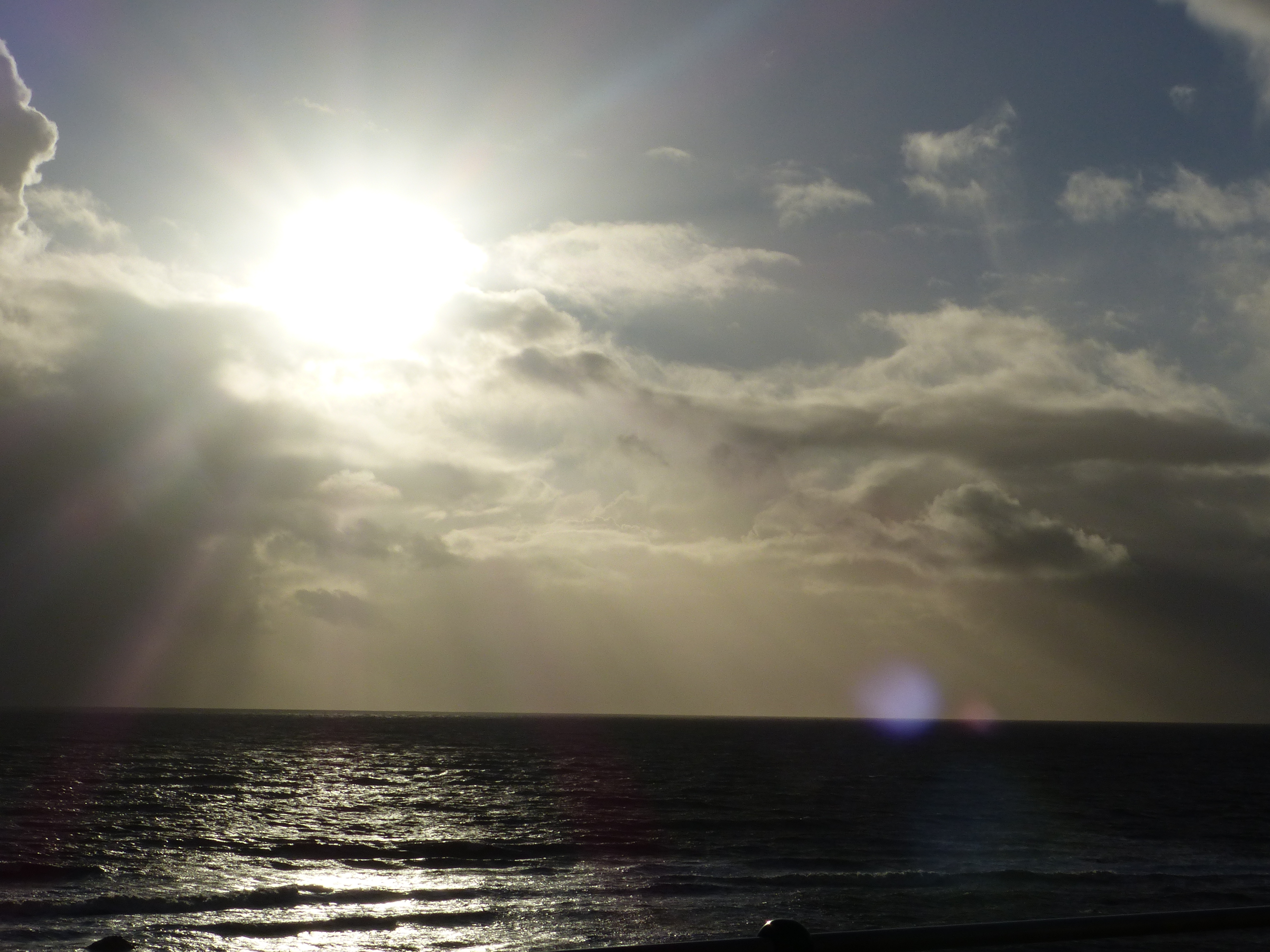 On we hurtled and the grey sky gave us a few little open patches, that teased us with the possibility of “brightening”! Just when we were lulled into a fall sense of optimism though, the rain came down again…pouring. Then, the rain became less plinky plonk  and more splat. We had sleet! That rain was cold and there was something icy in it, because it was splatting sleet splodges on the windscreen as the fickle weather continued. Eventually the sleet gave up and just turned back to rain, which also exhausted itself after a while and we actually saw blue sky! Blue sky and some SUNSHINE! That ol’ sky was sure making the clouds work overtime, with its changing moods.