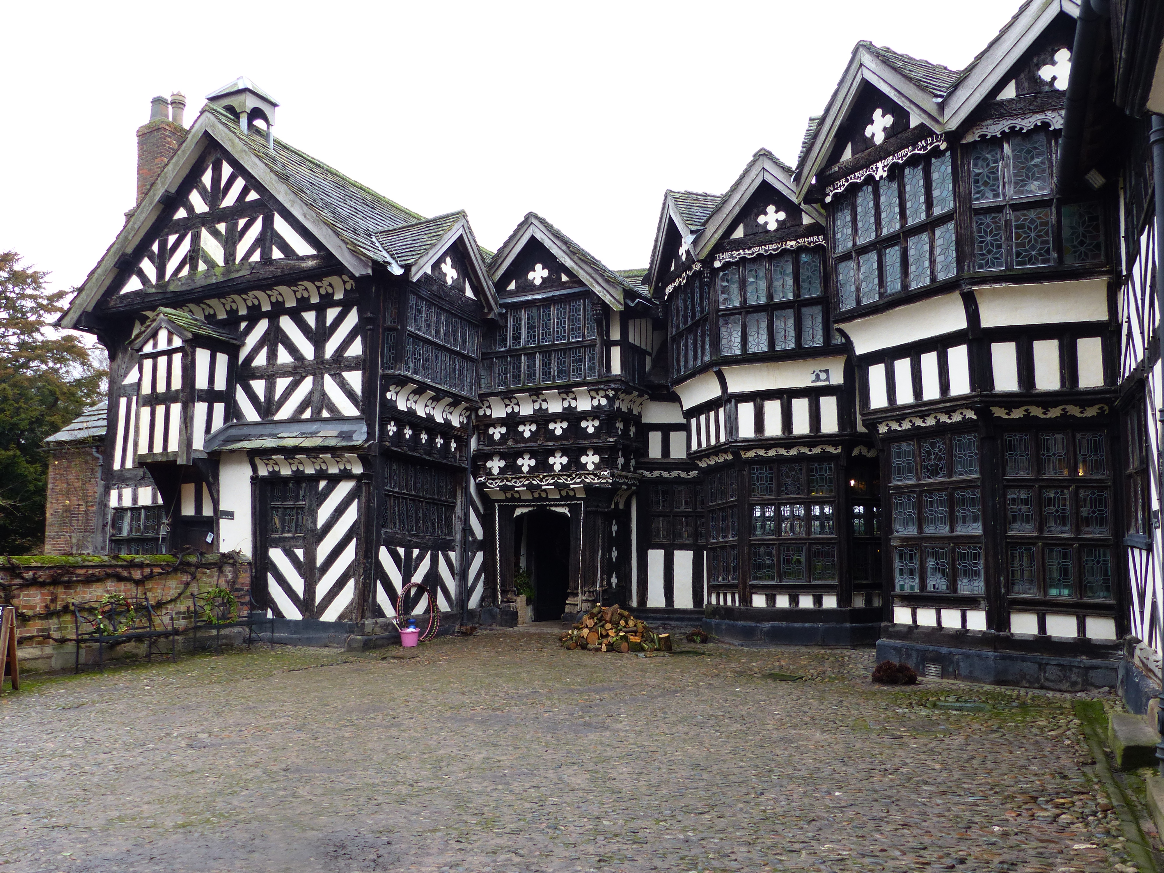 Brrrrr, the weather report for the day was “heavy rain, 5C, feels like 1C”. It was a bit nippy! It was a day to hit the road and continue our onward journey, so on the way we called in to another National Trust property to have a look. We’ve joined the National Trust, so as members, we are going to as many places as we can when we have them in our area and it’s been great. There are so many places to see here, so we get our dose of history when we can. Today’s visit was Little Moreton Hall, a Tudor house built in 1504, with additions being made to it, up until 1601. The Moreton family were wealthy land owners and built the property as a sign of their prosperity. “Look at us!” it was intended to announce to all who saw it, “aren’t we rich and special and can’t we afford to have a grand house!” We had wanted to visit this house after seeing the pictures, then it was recommended by the friendly girl at the Tudor house we visited in Tenby. To look at Little Moreton Hall, it’s amazing it’s still standing. It’s so wonky! Every wall seemed to be leaning at a different angle and the floors inside sloped this way and that. Stand it does though.
