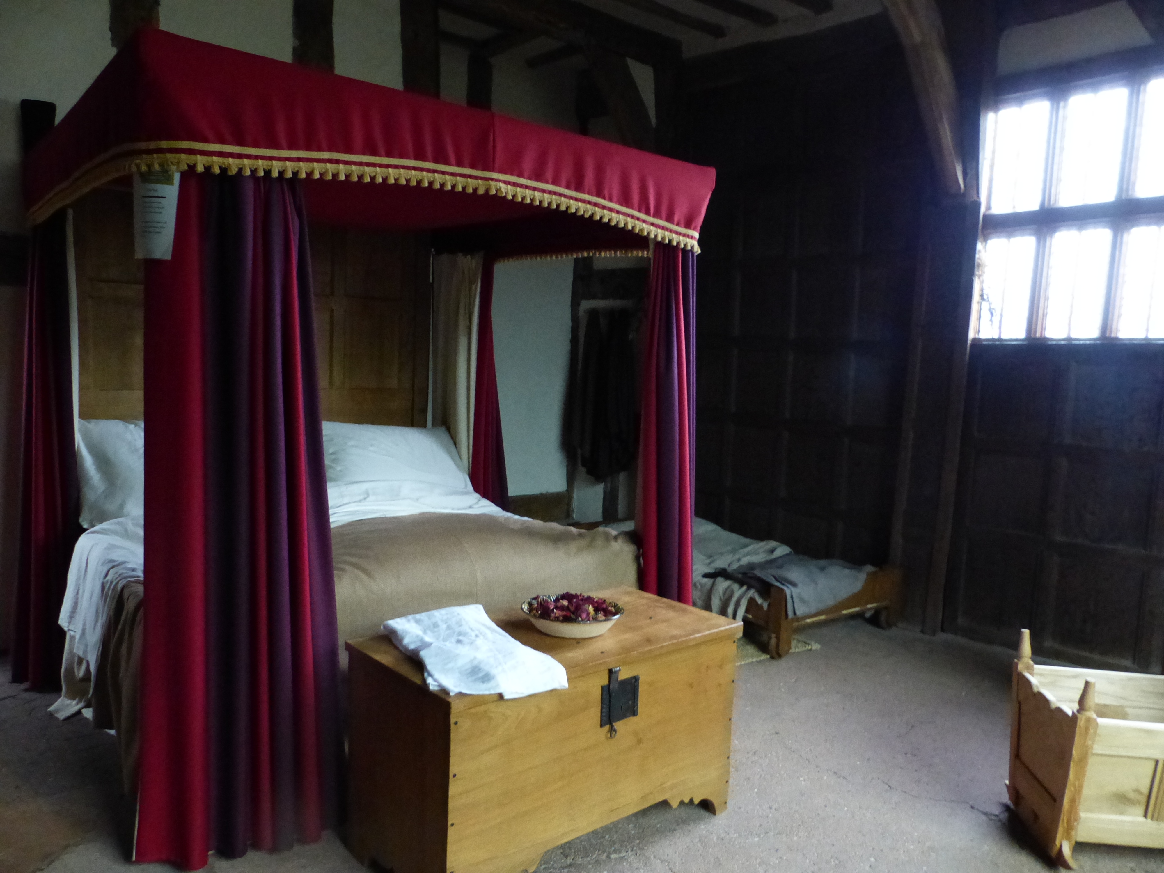 There were Christmas activities going on again, we were greeted at the door by a lady offering samples of hot, spiced apple juice and there were decorations in the rooms. The decorations were quite modest though, just garlands of leaves and some ribbons, because as I learned, there were no Christmas trees in Tudor times. I also learned, after seeing the banquet table, that forks weren’t used until the 17th century. I didn’t know that. So up until then, it was just knives and spoons, which must be why they ate so much meat with their hands and tore chunks off it, because they had nothing to hold it down to cut it, unless they tried to just pin it down with a spoon!