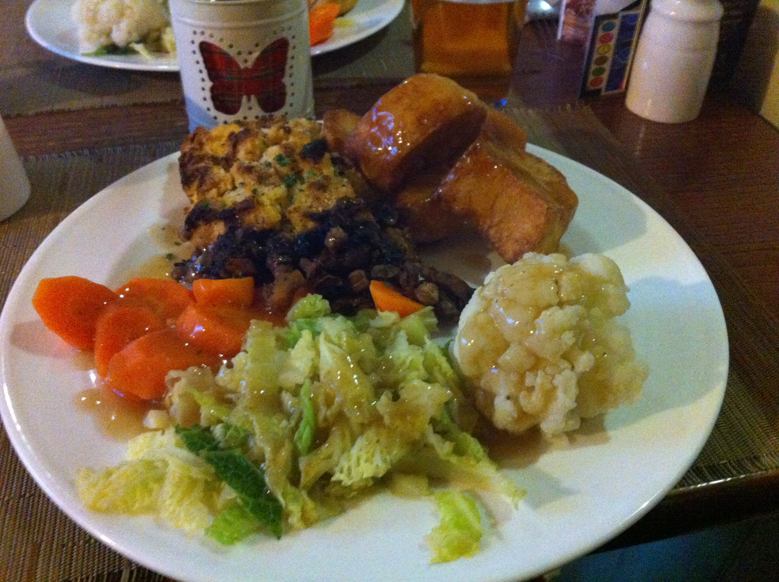 She beamed and it turned out, that along with us, there was a table of thirty members of the local Vegan Society there! So here was this young lady, who looked young to be in charge of any kitchen, successfully turning out traditional Sunday roasts of lamb and turkey, as well as grappling with a new vegan menu and serving it to a group of thirty members of a Vegan Society, who would be quite discerning patrons I would imagine.