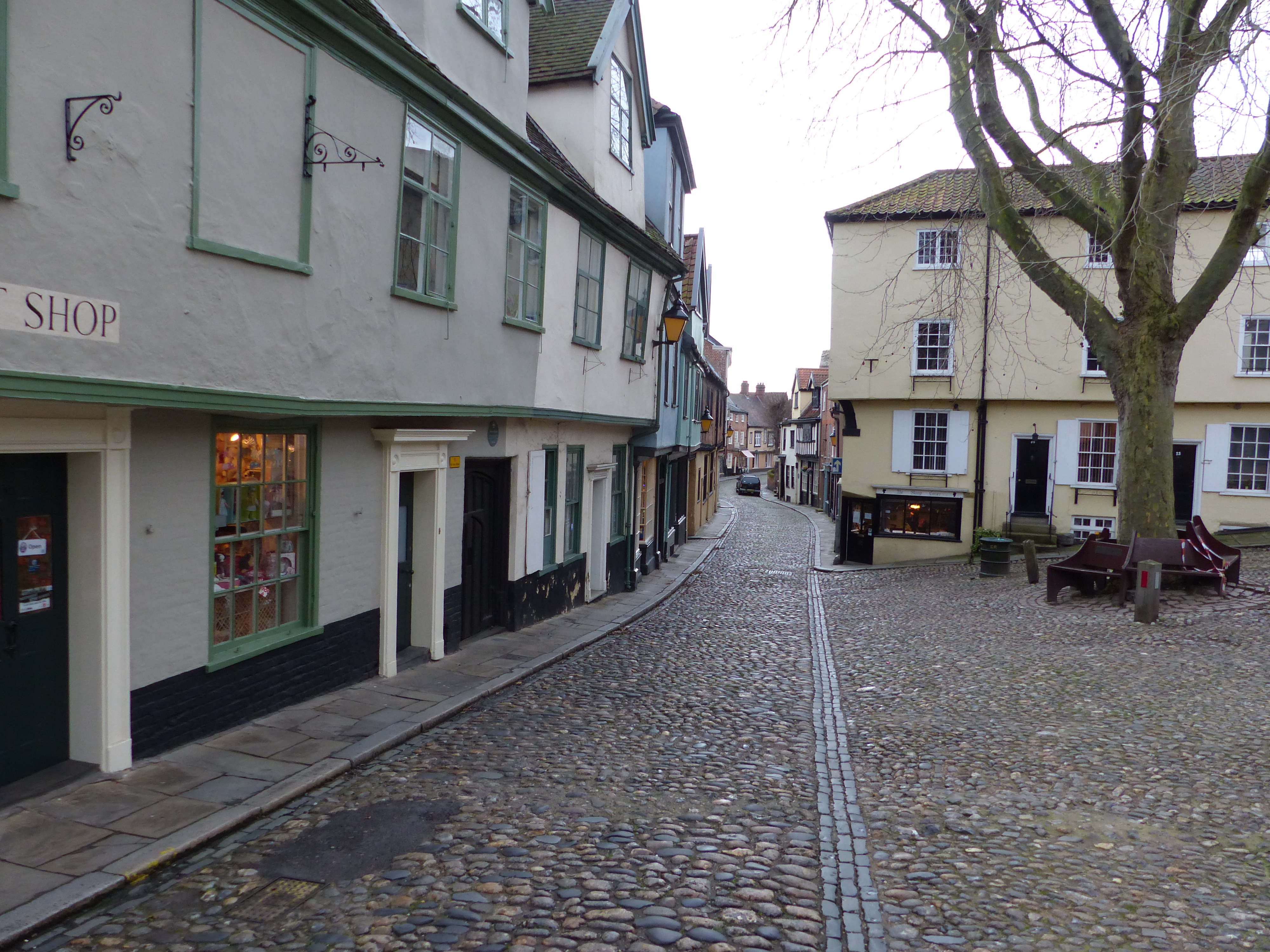 It was grey and really windy, but it was so mild again today. I think it reached about 15C again, so not cold at all and despite the wind, it was a great day for strolling the streets. I don’t think there’s any chance of a white Christmas with this weather. We saw some more charming buildings, made from stone and flint and brick and we even had a chuckle at some more wonky ones. I’m amazed some places are still standing!