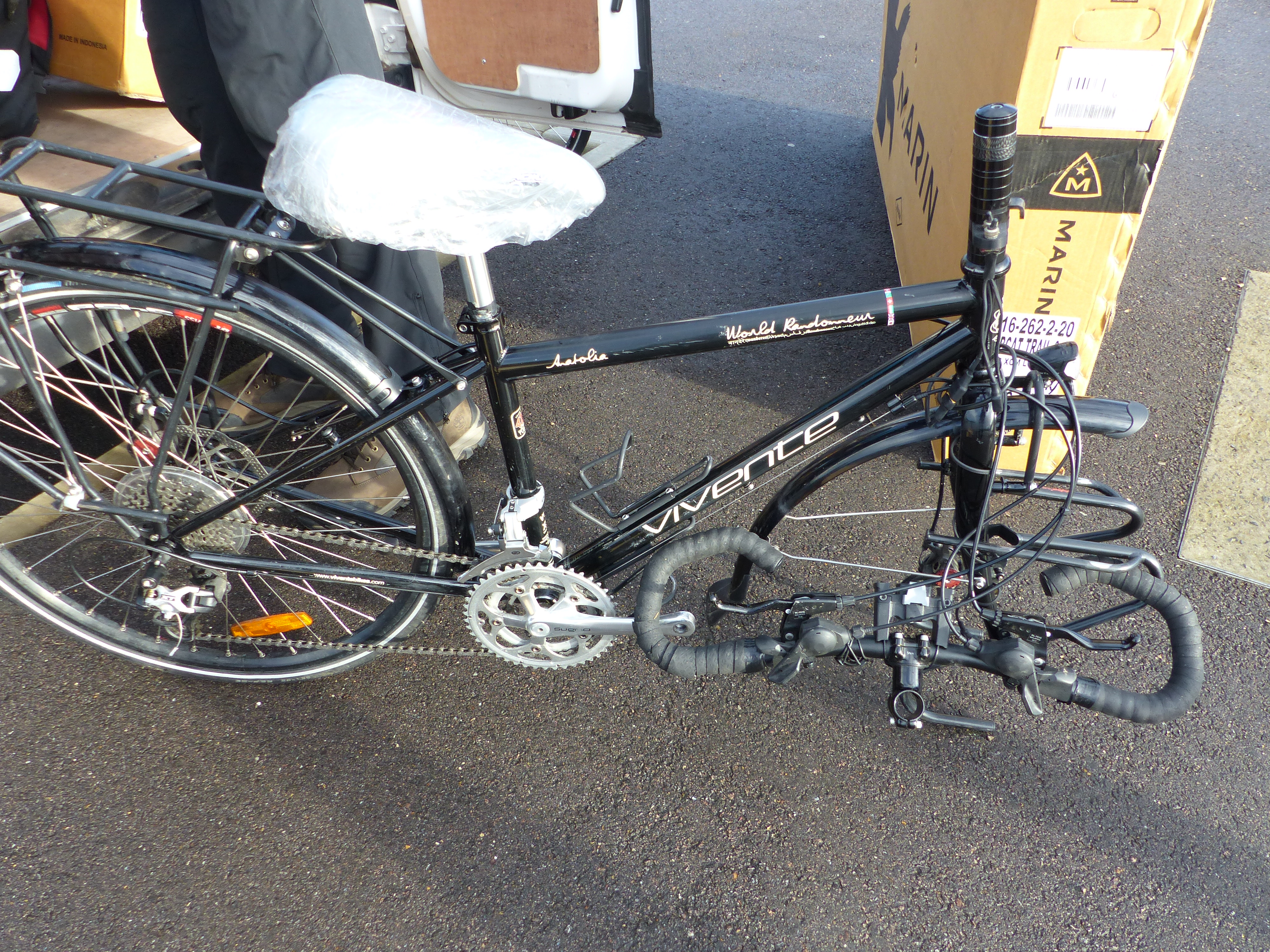 We stood, glumly, looking at them in their cardboard stables. I gave my little bike a pat. We’ve been through a lot together. We’ve slogged up hills, ploughed through mud, wheeled through rain and storms, been blown over by wind, been hit by a car and most importantly, seen some amazing places together. It never broke down, never had a puncture and never had a single day it didn’t get me to where I needed to go. Funny how you can get attached to objects, but I’ve become very attached to my little bike. It was sad to see it sitting in a box. We’ll unbox them again to put all their padding on, before taking flight, but today really meant we wouldn’t be getting on them again until we arrive in Melbourne and then the final ride home in Tasmania. Sad time, but also a time of some reminiscing and reliving some magical memories.