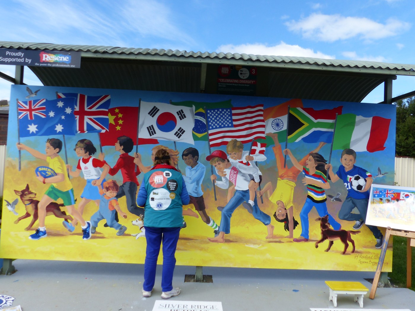 The small town was buzzing and I noted all the interstate license plates on various cars and campers around the town. The artists were still at work on their murals, with judging being done later in the day. This year there were local artists from Tasmania, as well as others from interstate, New Zealand, the U.S.A. and France. Steve and I strolled among the crowd and looked at the variety of murals on show for the competition. This year’s theme was based on a poem by a local poet.