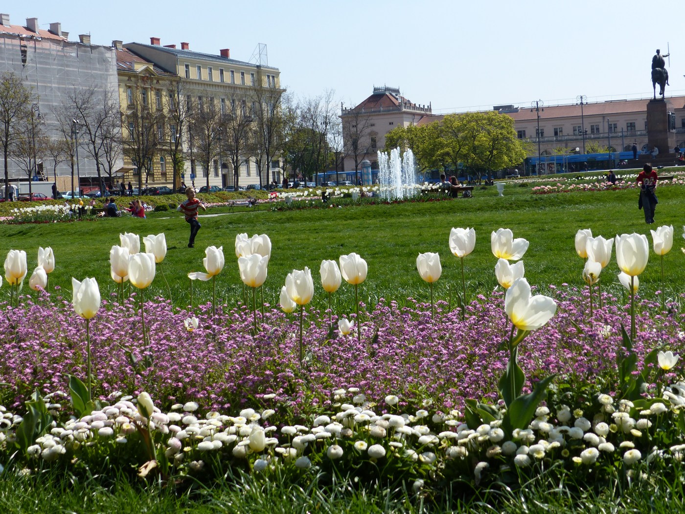 After a pitstop at the apartment for a cup of tea and regroup, we set off again for a 5km round trip to a bike shop to get locks and much needed spare inner tubes for Steve because we are expecting those pesky punctures to keep playing their game. The walk there took us through some more glorious parks and gardens with those beautiful tulips once again standing up and showing off like contestants in their own beauty pageant. The buildings were lovely and the flowers spectacular and above it all, that welcome sun kept right on glowing. We found the bike shop and used some of our newly rehearsed Croatian lingo on the fella behind the counter and walked out with our locks and tubes and mission accomplished.