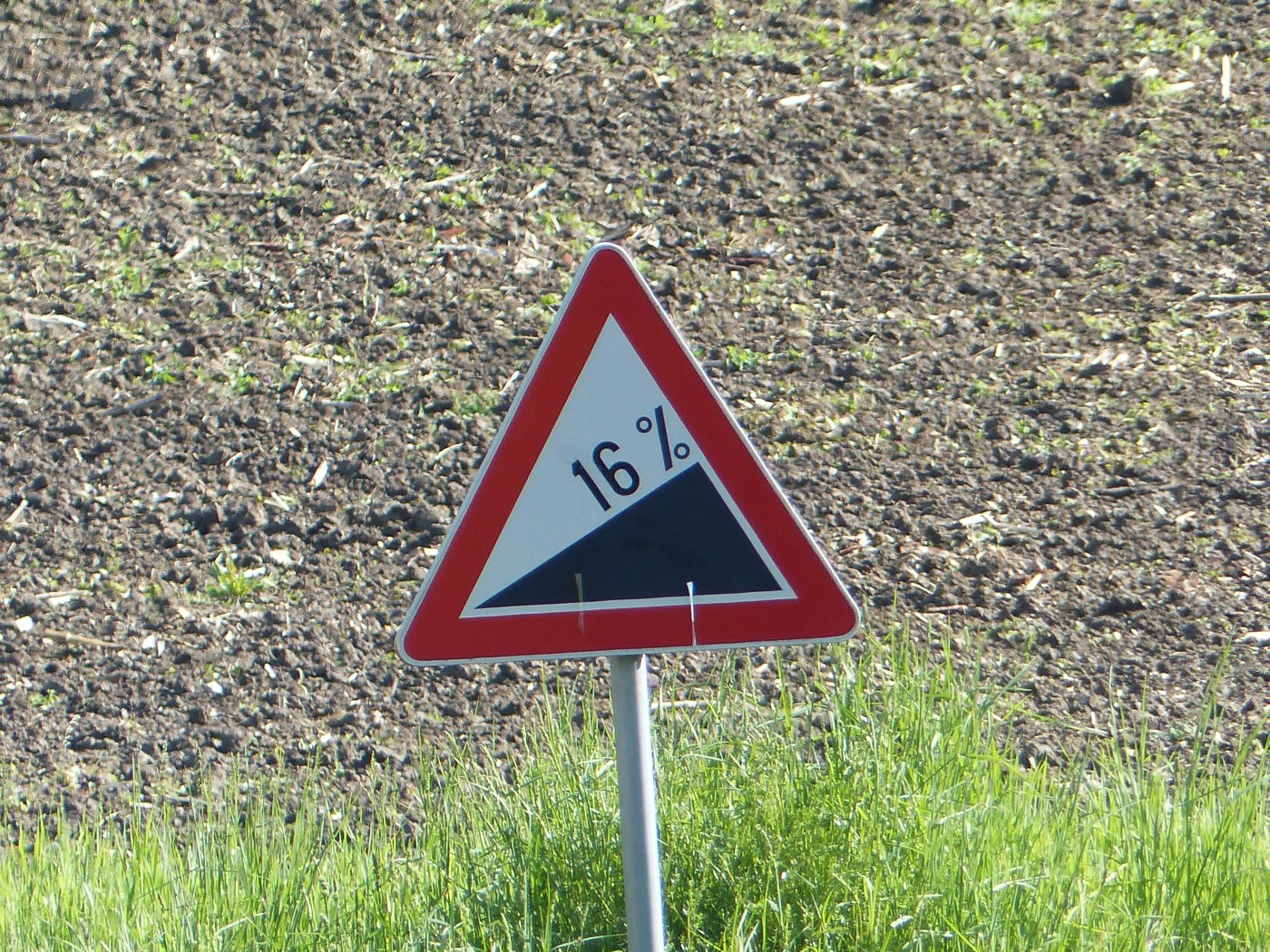 When we reached the outskirts of the city, we turned off and headed for the quiet backroads. It was brilliant. Quiet roads again and lovely scenery, then…the first of our hills for the day. We were on a road and the hill loomed in front of us and the sign said a 16% gradient. We had a choice…we could keep going up the road and tackle that 16% gradient that wound around the hill, or we could take a pedestrian path that cut across the hill, but was steeper. We opted for the steeper pedestrian path because at least our rest stops, slow wobbles, swerves and possible pushing could happen out of the way of traffic. Up we went and the gradient hit 18% and still we climbed. We took some rest stops and then I heard Steve say behind me, “Nope, I’m pushing!” and he was off and walking the bike up the hill. Me…I kept riding because as hard as it is, it’s easier for me to ride up hills than it is to push the loaded bike.