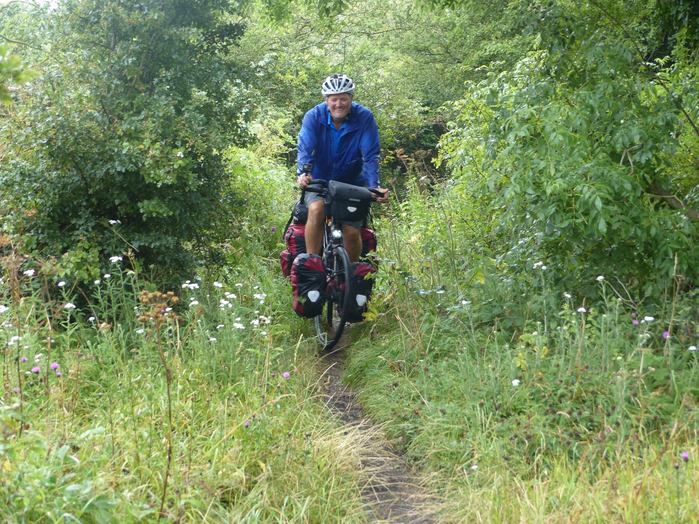 We might be having to slog up some hills and all but plummet down some scary steep ones too, but it’s so worth it for the places we are seeing. Riding along the coast and then seeing lovely coastal villages and towns is just brilliant. Getting there though, sometimes takes us along paths that are just a bit…well…unusual! What will tomorrow bring? Where will that path take us? Could we make the news by unintentionally creating an extra-terrestrial crop circle in someone’s wheat field? I guess we just have to embrace the element of surprise!