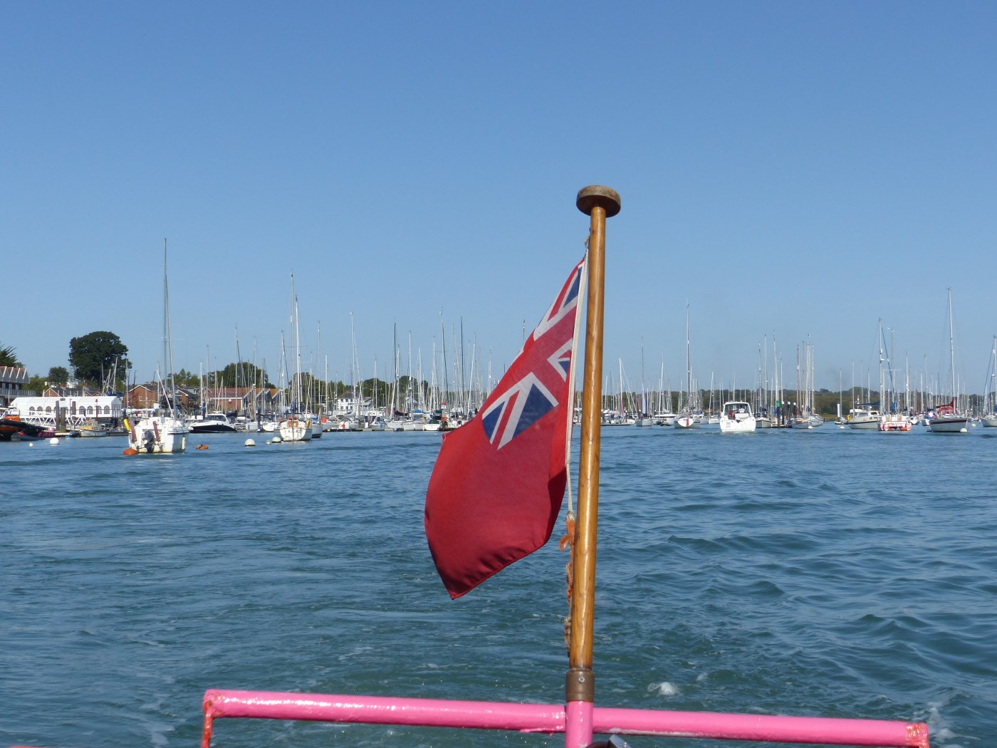 Hamble-le-Rice is where we caught ferry number two, to take us across the River Hamble to Warsash. This was the best ferry of all, a dinky little pink boat that we had to reverse the bikes into, with a bit of a squeeze and then sat along the deck for the slow chug up and across the river. The landing wasn’t a jetty, instead we were simply deposited on an old concrete slipway in the mud flats.