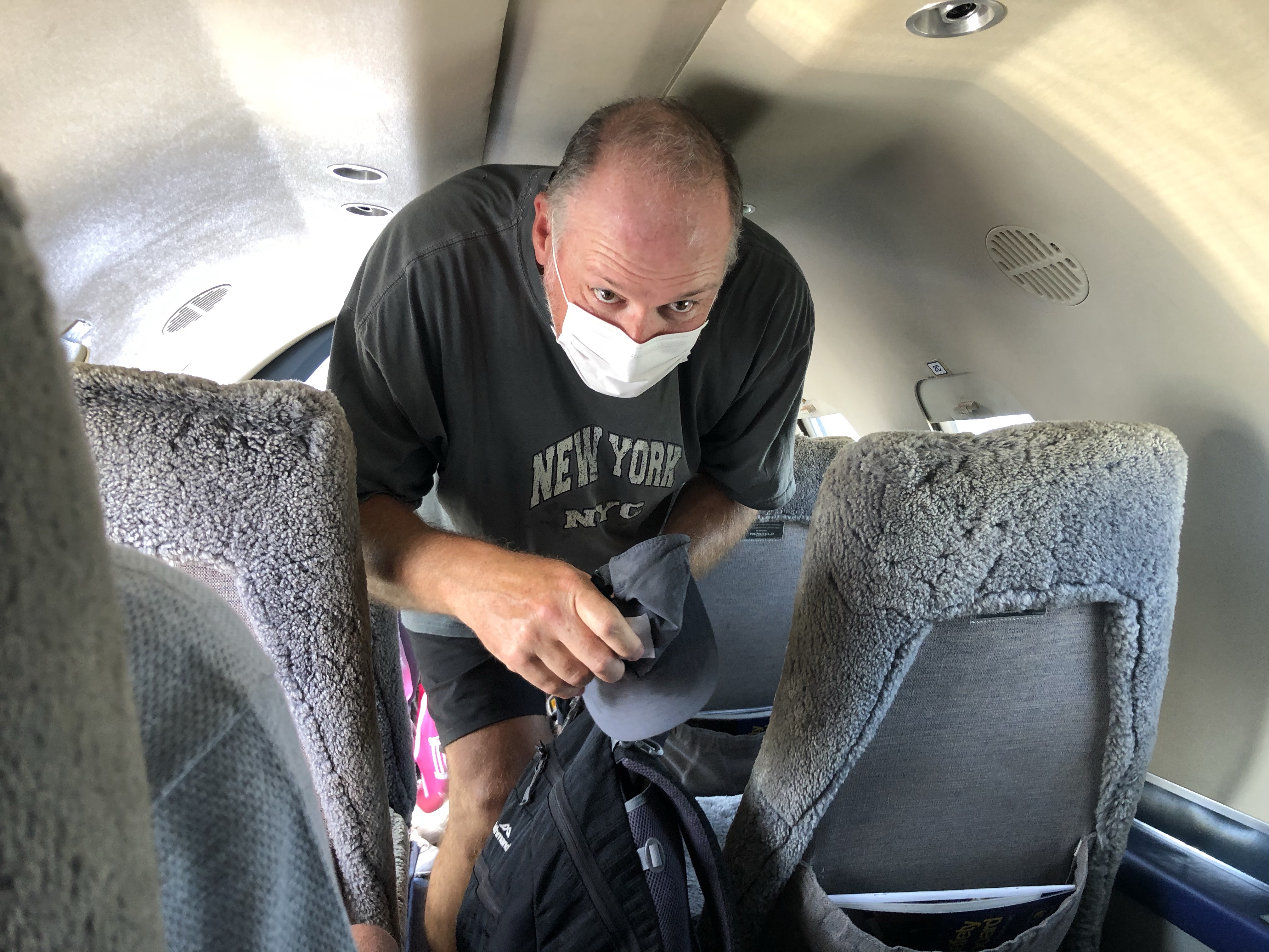 It had been an absolutely magic trip for our maiden exploration of Flinders Island, but it was time to make our way back to our “big island”, so the next morning we made our way to the airport and I began to psyche myself up for another trip on a very small plane and willed my scaredy-cat jitters to hold themselves in check. We donned our masks and climbed into the little plane, or in Steve’s case, bent, breathed in and squeezed himself into the little craft.