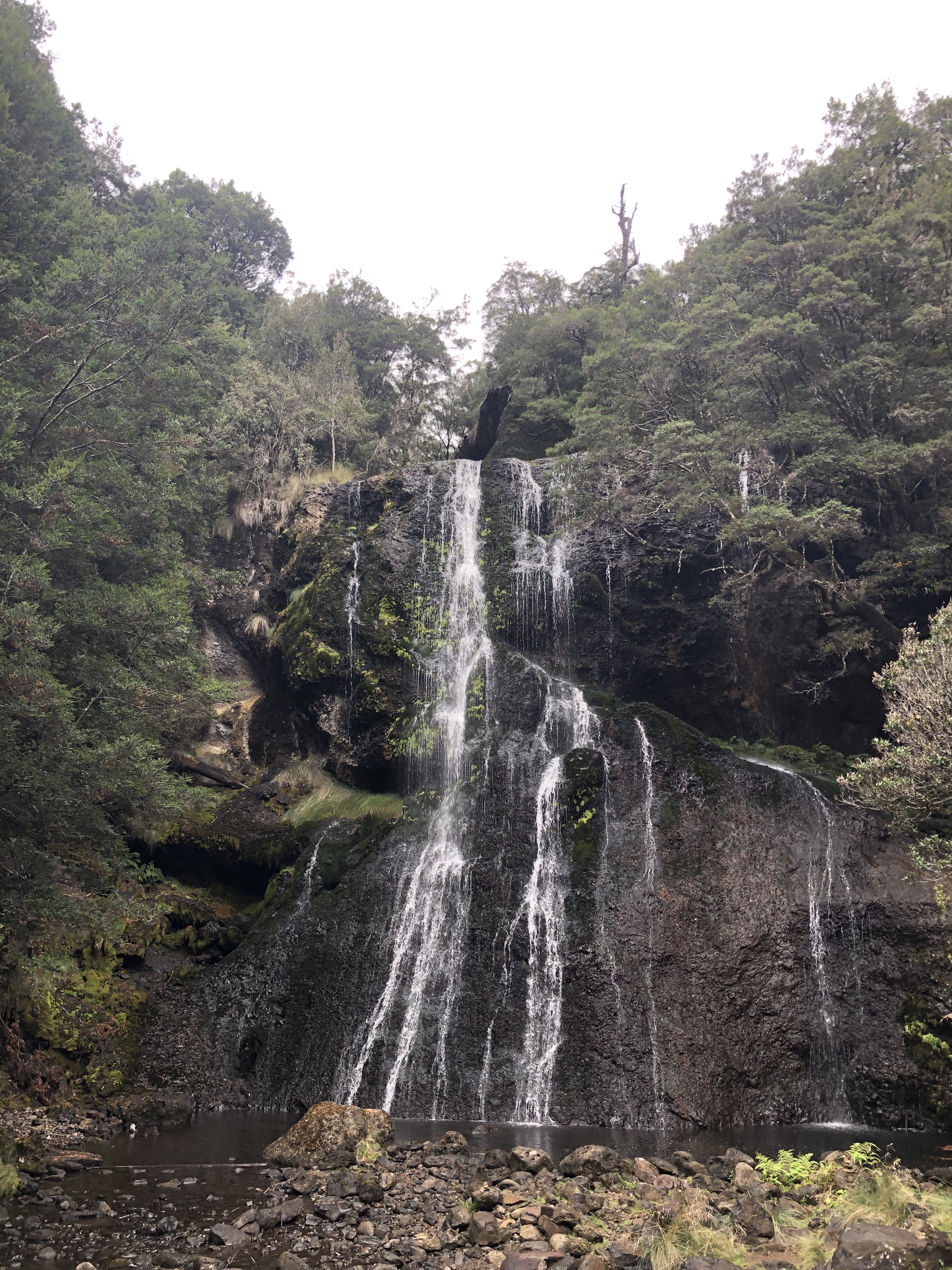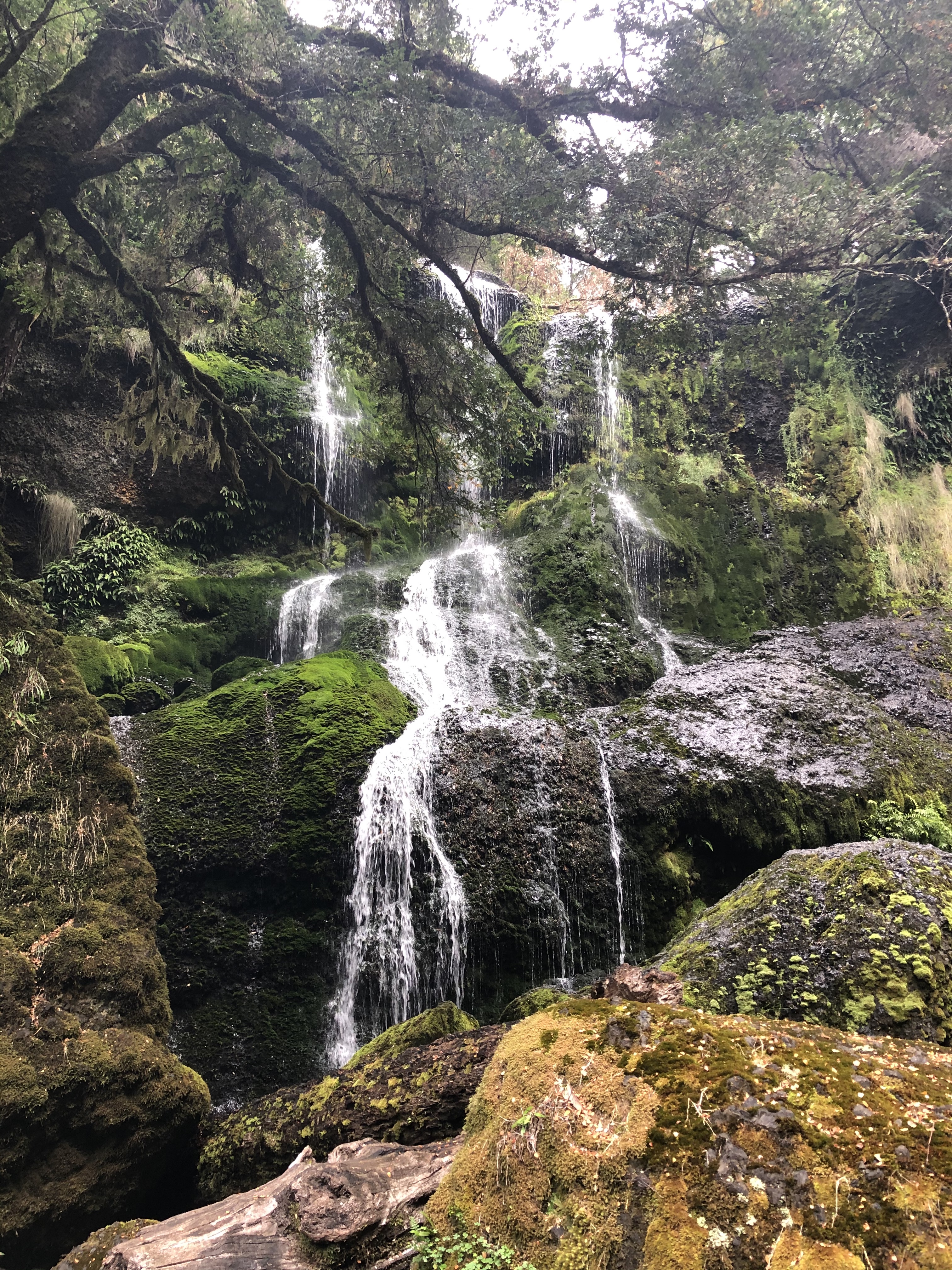 Along the track, a scramble here and a trudge there, a wrong turn once, before finding our way back to the markers and we could see Bridal Veil Falls, passing some very colourful and interesting fungi and lichen along the way. We walked up the bank and you could actually walk behind the falls, stand in the rock overhang and look out through the falling water. That was pretty cool. We stopped, sat on a rock and had a snack, looking out through the “bridal veil” of the water raining down. Lovely.