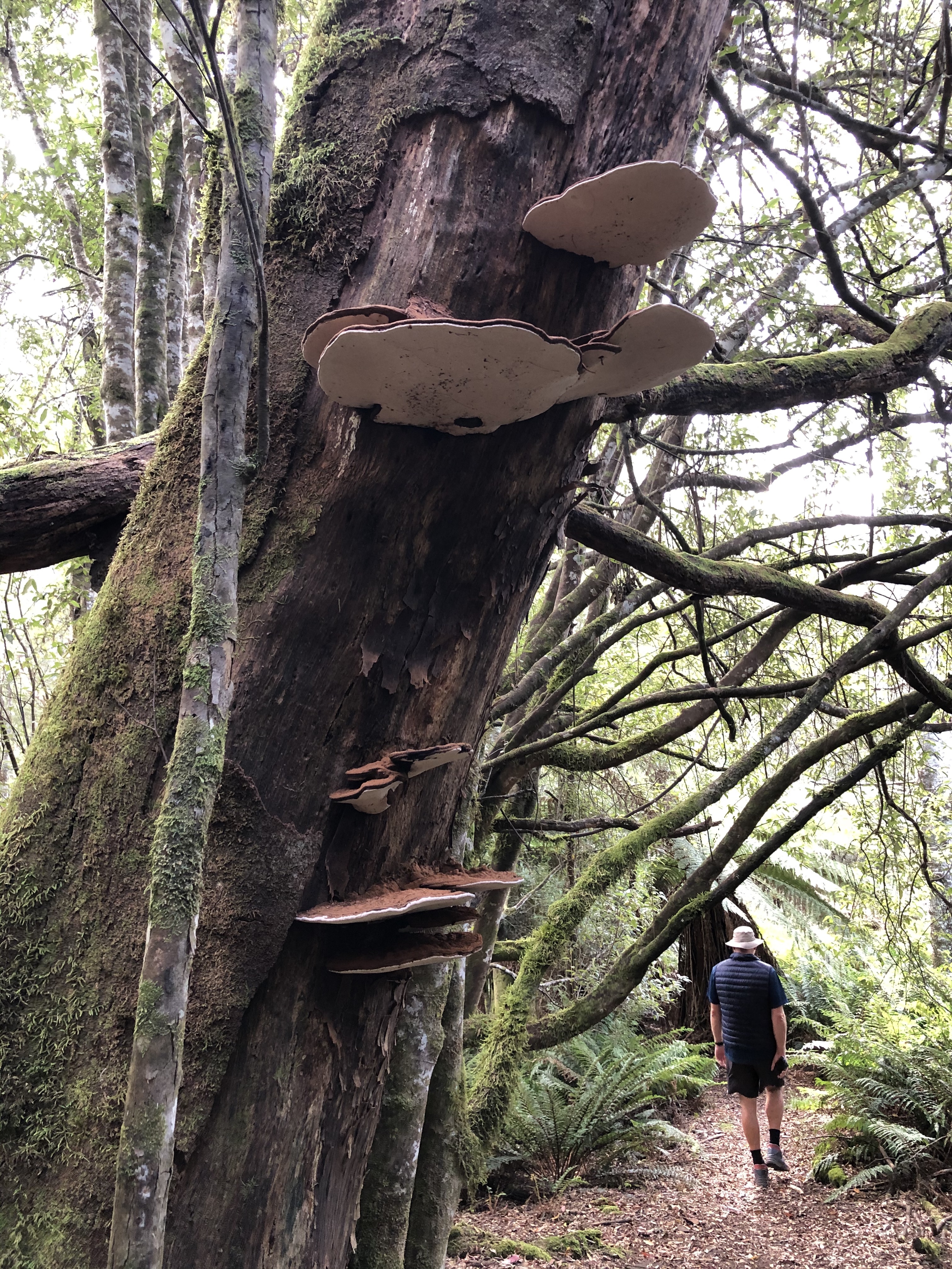 Despite the recalcitrant stick experience, it was a top walk. We headed back up the bank, with some sections of steep scrambling and made it back up to the 4WD track that took us back down towards our starting point. We detoured along another track to take the extra Big Tree Loop walk, seeing some more interesting lichen and fungi along the way and then back to the start to sign back in to say we had safely returned and then time for a cuppa.