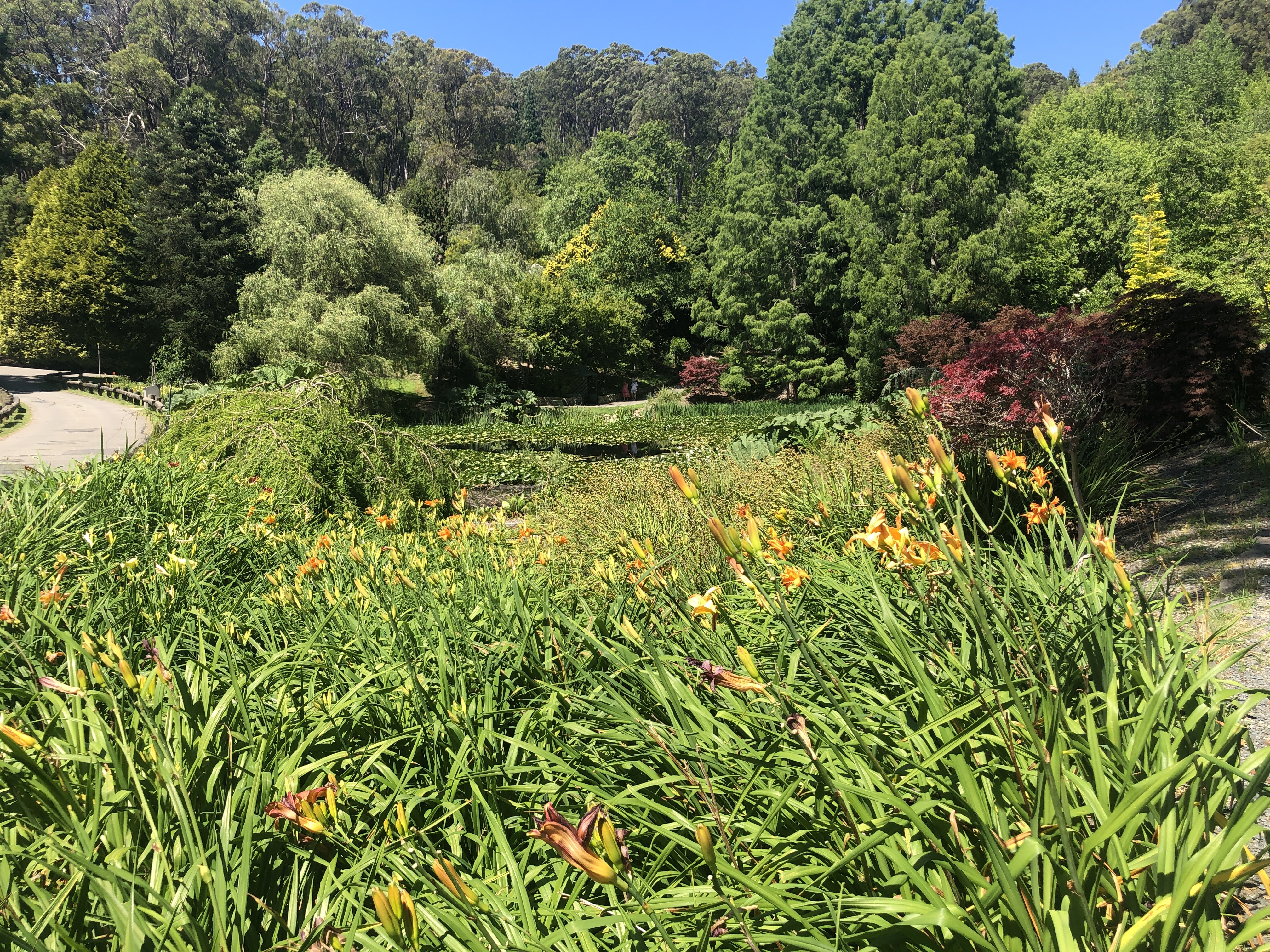 We found a nice shady bench overlooking a lake and settled in for elevenses, taking in the view. There were a few families out and about enjoying a walk through the gardens too, heat or not.