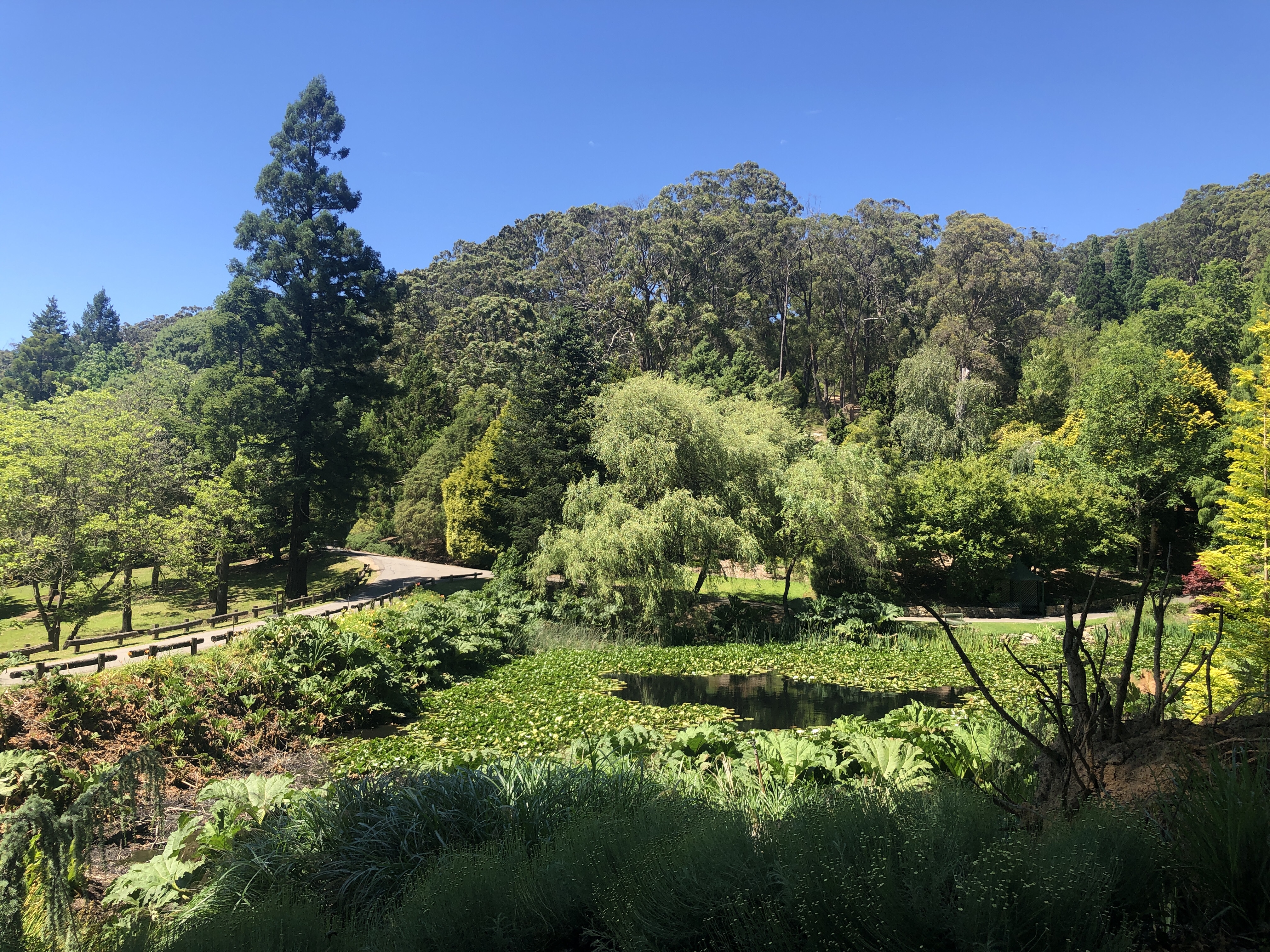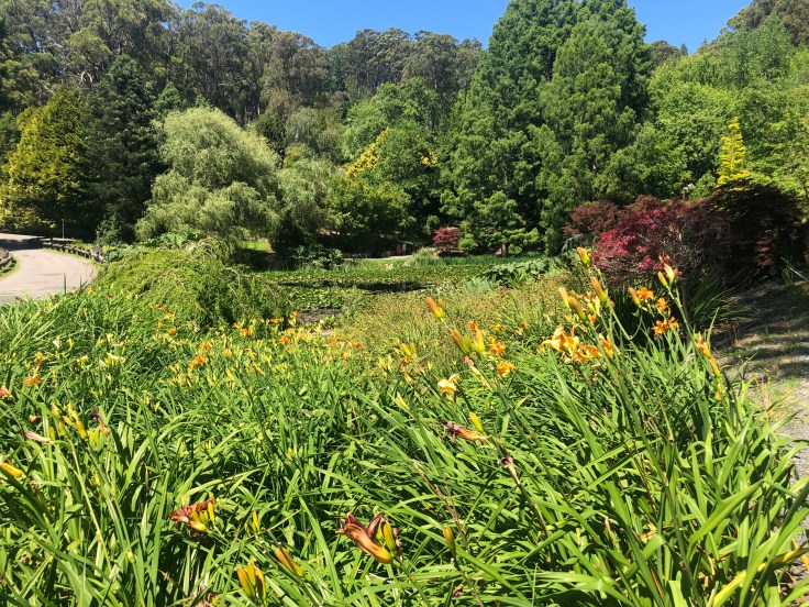 Mount Lofty Botanic Gardens are a short drive from the middle of Adelaide and was a top place to visit. Spread out over acres of walking trails and paths, different gardens and lakes, we strolled along the paths and took in the lovely surroundings. I’d read that the gardens are home to a plentiful colony of koalas, so at the risk of face planting into a Watsonia or stumbling into a herbaceous border, I walked along with face to the sky, scanning every fork in every trunk of every gum tree I could see in the hope of spying a kipping koala. Alas, just as so often happens when we are on wombat watch back home, the little critters eluded us. Too hot even for them to make an appearance.