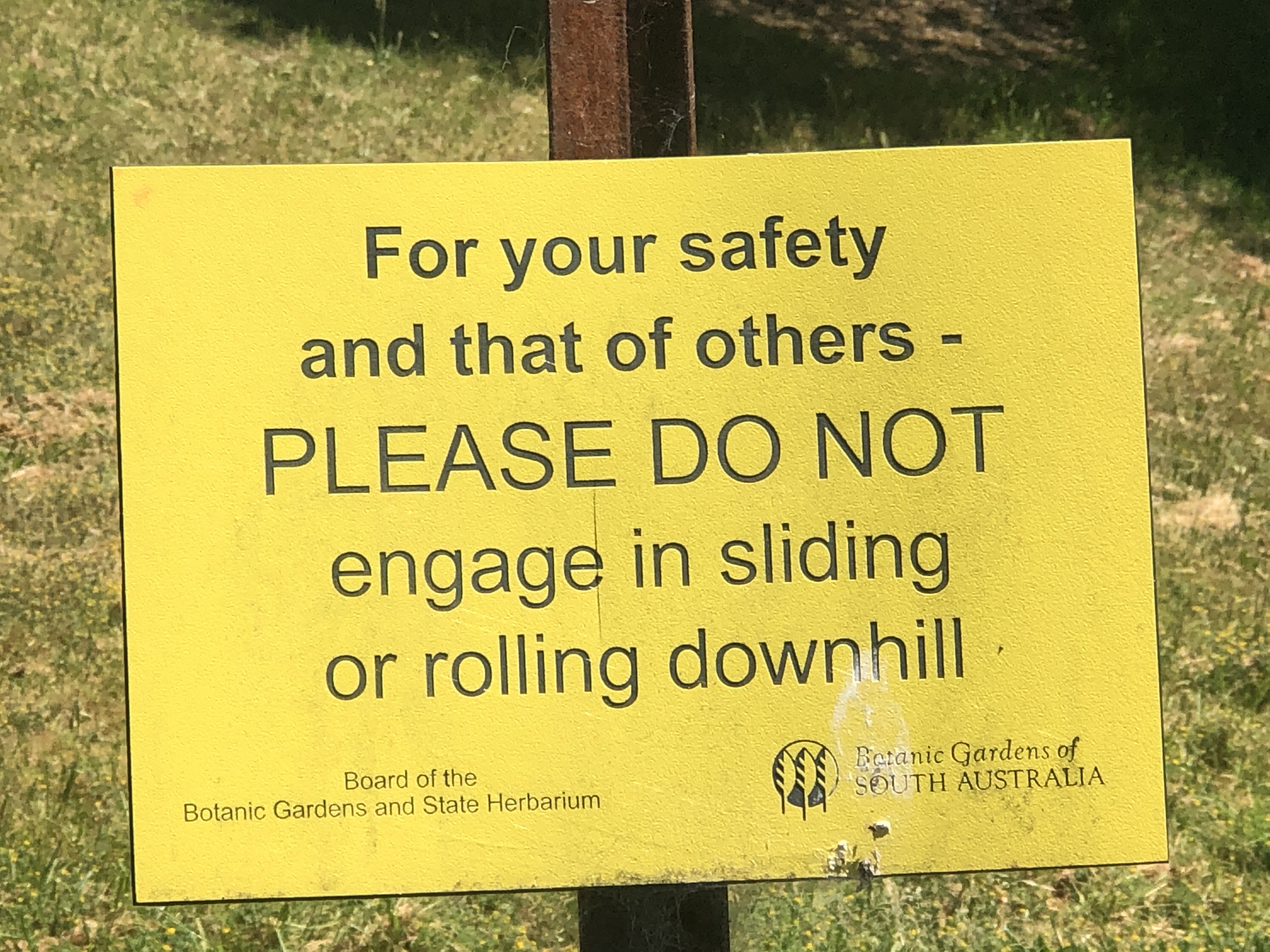 “That looks like a great hill to roll down,” said Steve, as we walked past a long sloping bank. Yep, I could see Big Steve doing a roly poly down that hill, gaining momentum like a giant wheel of cheese. Someone had obviously had the same idea and maybe even given it a go, with less than winning results because then we saw the sign. Party poopers.