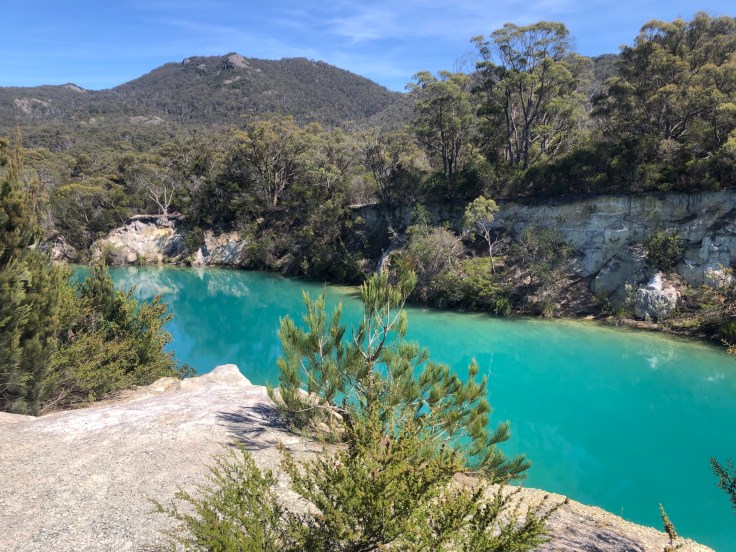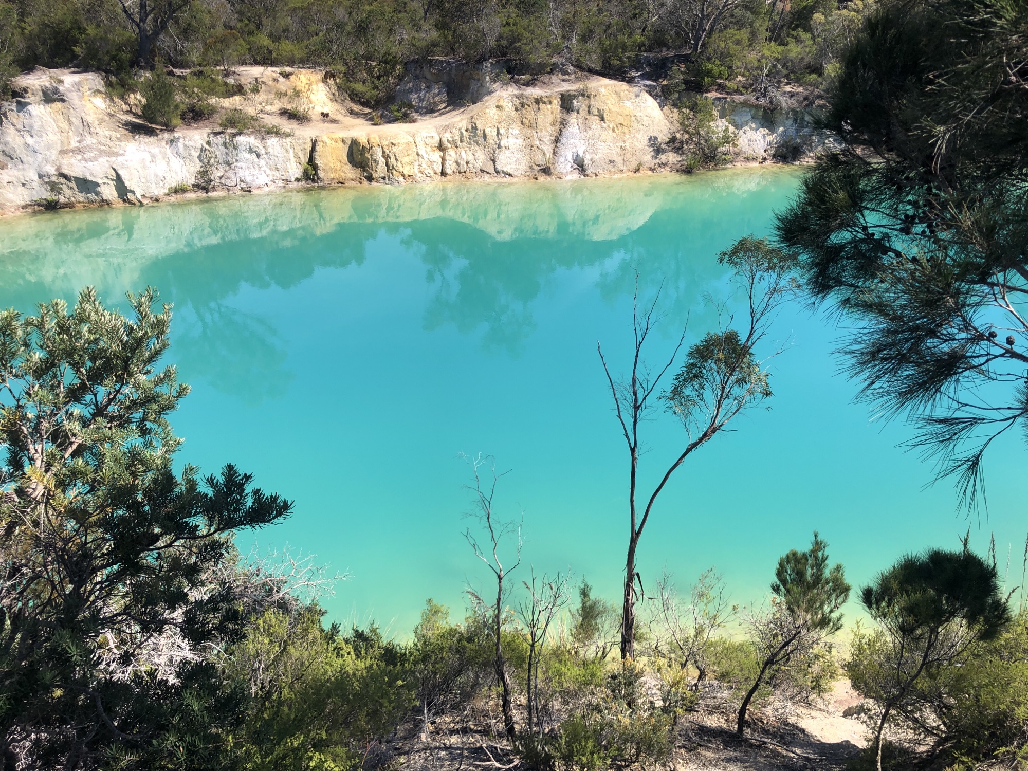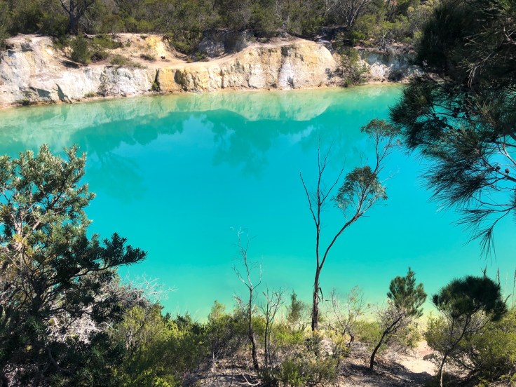We motored through Gladstone to see an interesting natural feature that I’d been wanting to see. Little Blue Lake. We walked up the short track where we could look down on the lake and it was indeed exactly what it said on the tin…it was a lake and it was very blue. The colour comes from the minerals in the water and on a sunny day like today, the vibrant colour fairly glowed. Well worth the stop for a look.