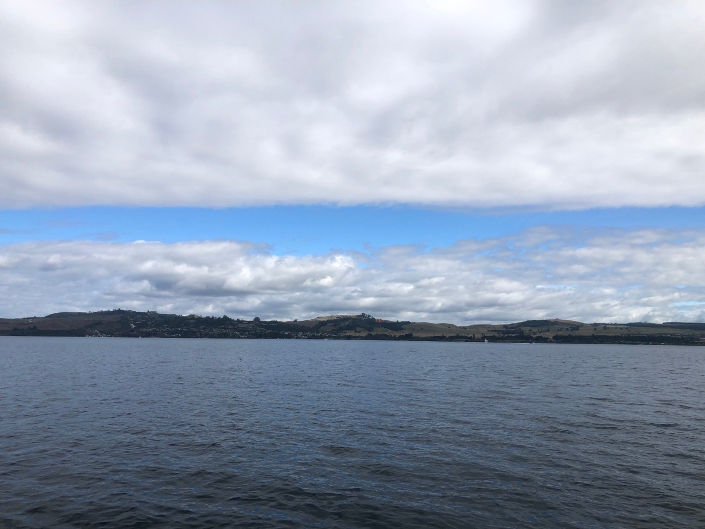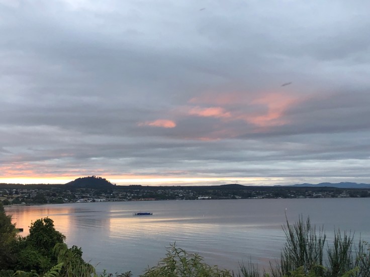 Well, Taupo was such a lovely little town and right beside the lake, that I had to start the day with a quick morning run, so out I went for a sharp 6km, with the lake beside me. Terrific. There were other walkers and runners around and we exchanged smiling “good mornings”. There were even people in the lake swimming. Good luck to them, brave folk that they are, because that water would be cold! Just around the corner is Hot Beach, where steam rises from the water because of geothermal activity, but these brave souls were swimming in the regular chilly water. Round of applause to them. I passed a couple of dog walkers and a Labrador trotted up to me, carrying its lead in its mouth and with a smile on its face that said, “I’ve just been for a swim! A swim! I’ve been in for a swim!”.
