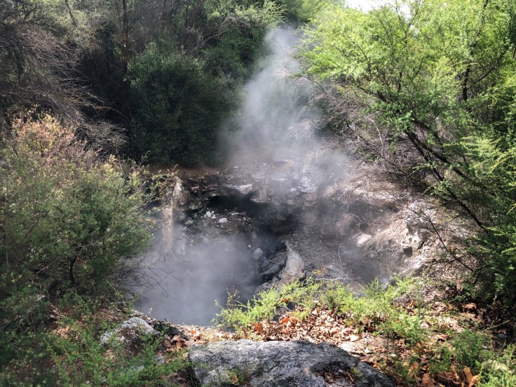 It had been a full day but before we hit the road for the return drive, we stopped off at Kuirau Park, a park in downtown Rotorua that also has geothermal activity within it. We strolled past steaming pools, with 100C water temperature and the distinctive sulphur scent rising up from the water. The whole area of Rotorua has geothermal areas everywhere and even a regular park in town, has pools and ponds giving off steam from the thermal activity far below.
