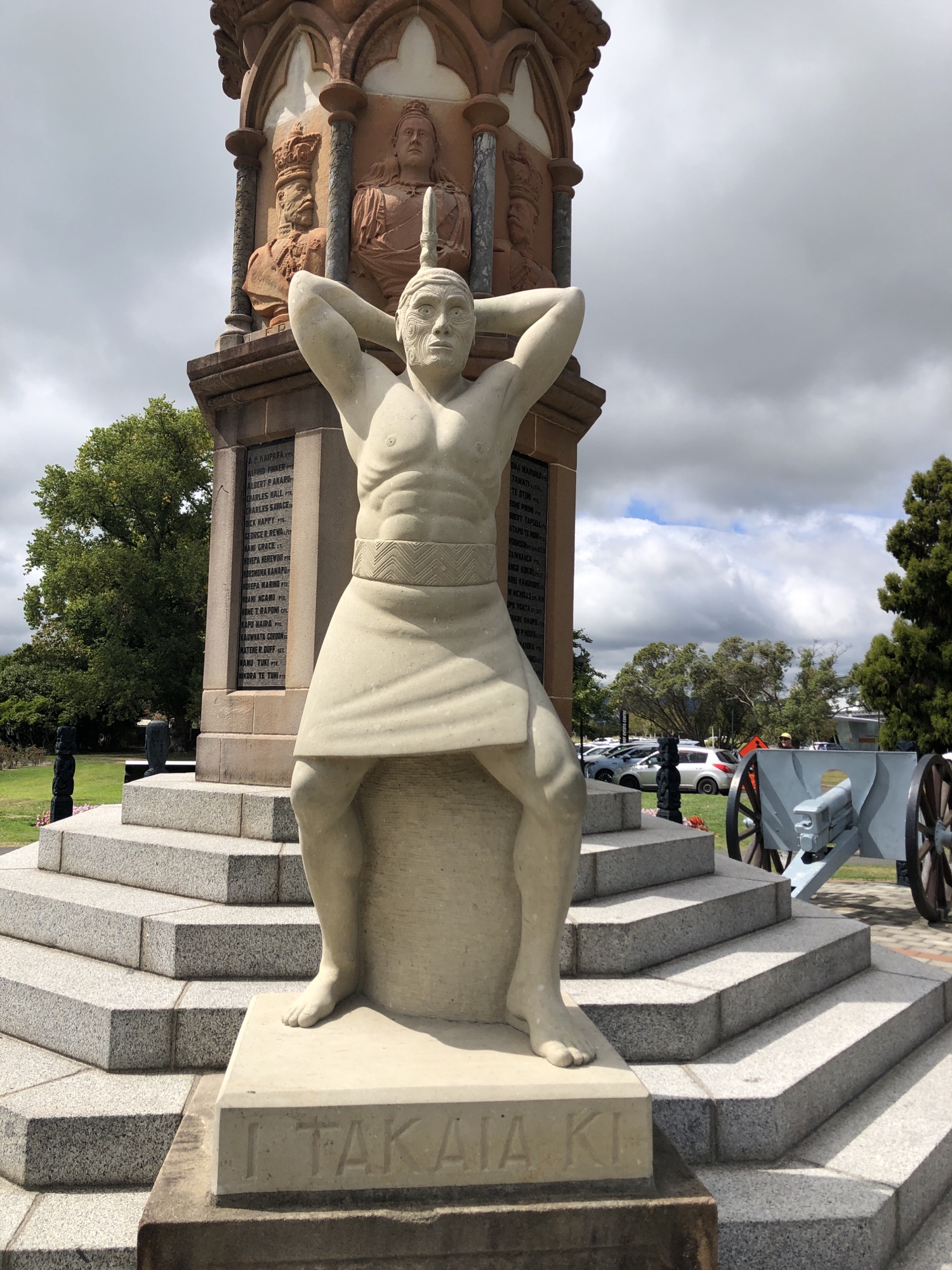 We took a walk through the Arts and Crafts Institute, where students were working away learning and practising various skills in stone, bone and wood carving and in weaving. When we saw the area where the carving is done, all the students were men. We were later told that traditionally, women are not allowed to carve because, it was explained, traditionally men would have to walk many kilometres to find a fallen tree to use and then drag this back to camp, leaving themselves open to ambush or attack from warring tribes. This was considered too much of a risk for women to do because as the saying went “if we lose a man there are more of them, but if we lose a woman we lose a generation.” Men are allowed to weave, but women are not allowed to carve. Hearing this was itching my feminist bones somewhat. We were told though, that similar schools in New Zealand do have women learning the traditional skill of carving, but Te Puia focuses on traditional approaches, although they are changing soon to open up carving to women as well. There were many stone and wood carvings around the Institute, adjacent gallery and around the park. The figures in the carvings are never of living people, only those who have died. They will often have eyes made from Pau shell (abalone shell) which is considered a “life essence” by the Maori, so including them in eyes on carvings is a way of including a life essence of the person the figure is representing.