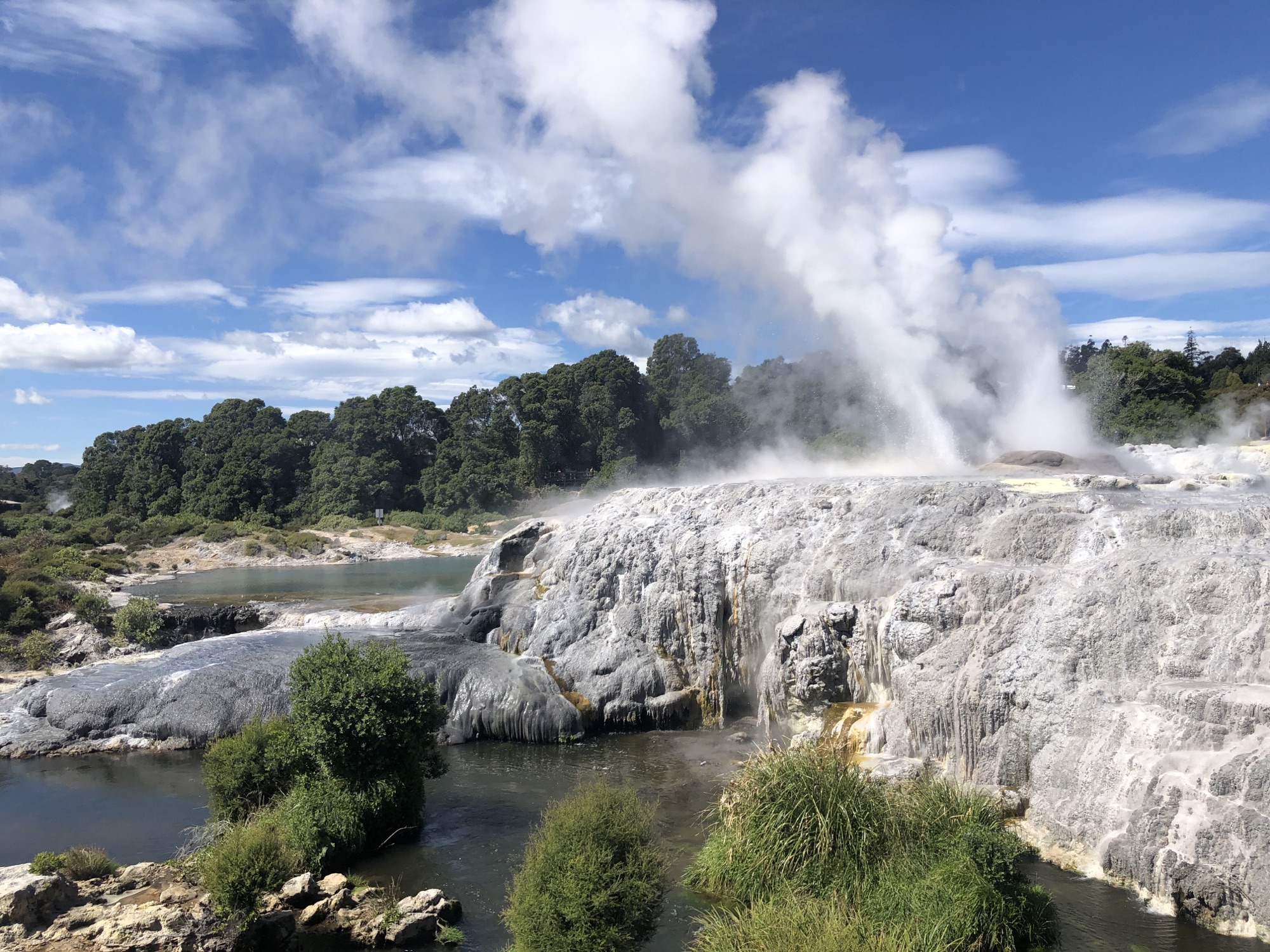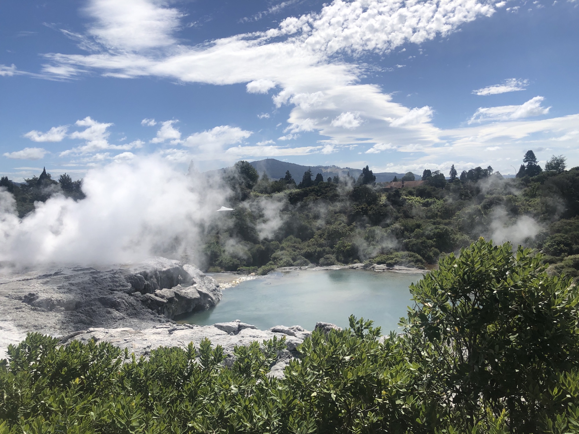 We continued walking around the grounds of the thermal reserve, looking at thermal mud pools and geysers, including Pohutu geyser, the largest geyser in the southern hemisphere. When it erupts every hour or so, the spray can reach up to 30 metres in the air.