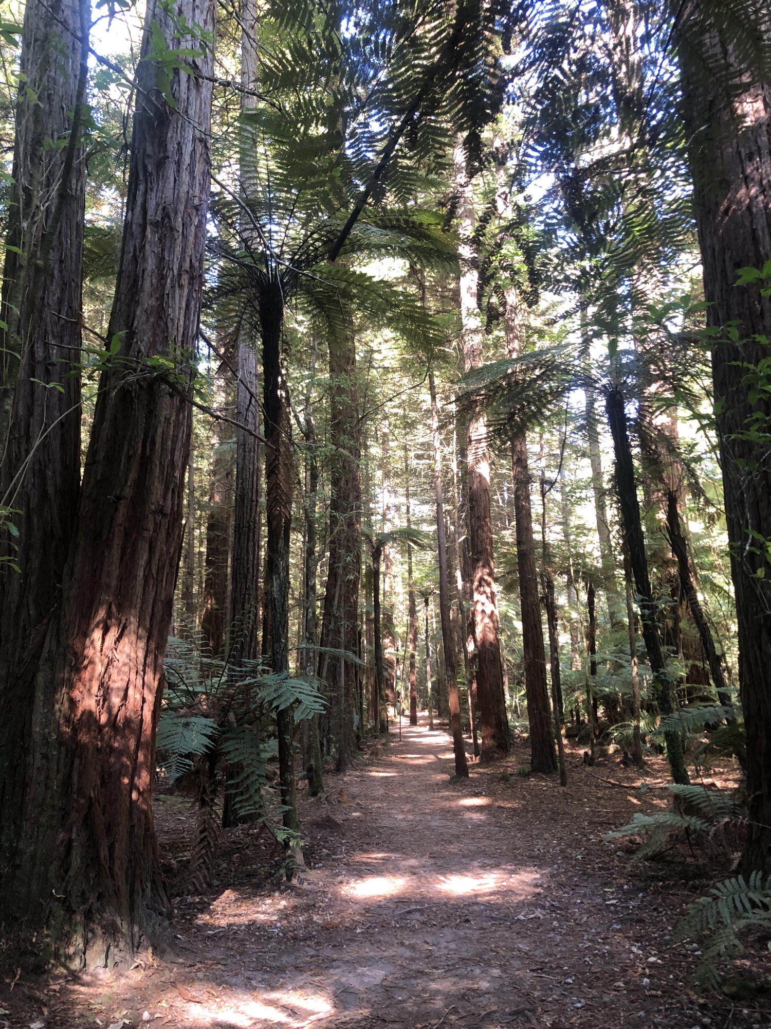 After a stroll in the Thermal Reserve under the beating sun, we took ourselves towards some shade with a stroll through The Redwoods & Whakarewarewa Forest. These amazing giants towered above us, with their bark showing the red glow their name suggests and we strolled between the broad trunks of these incredible trees.