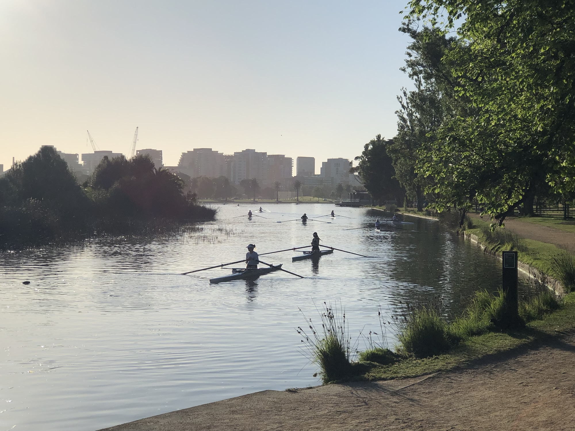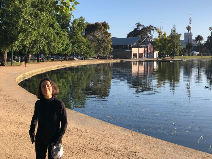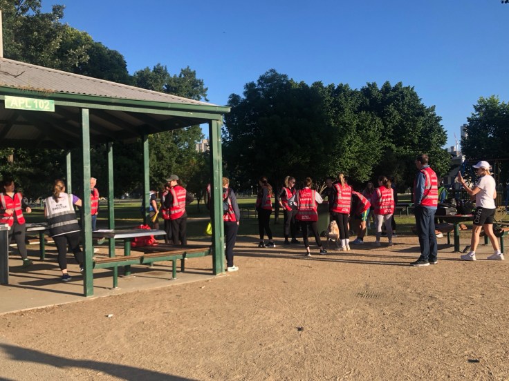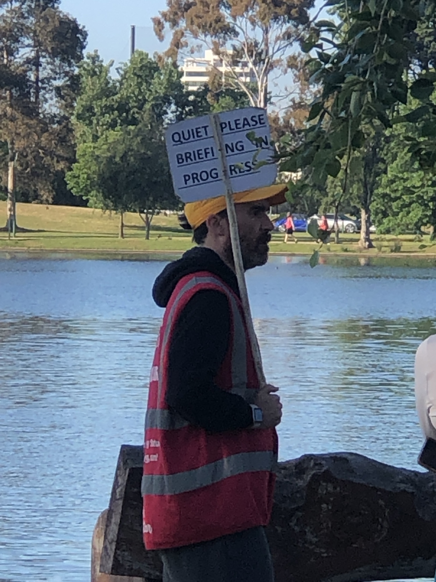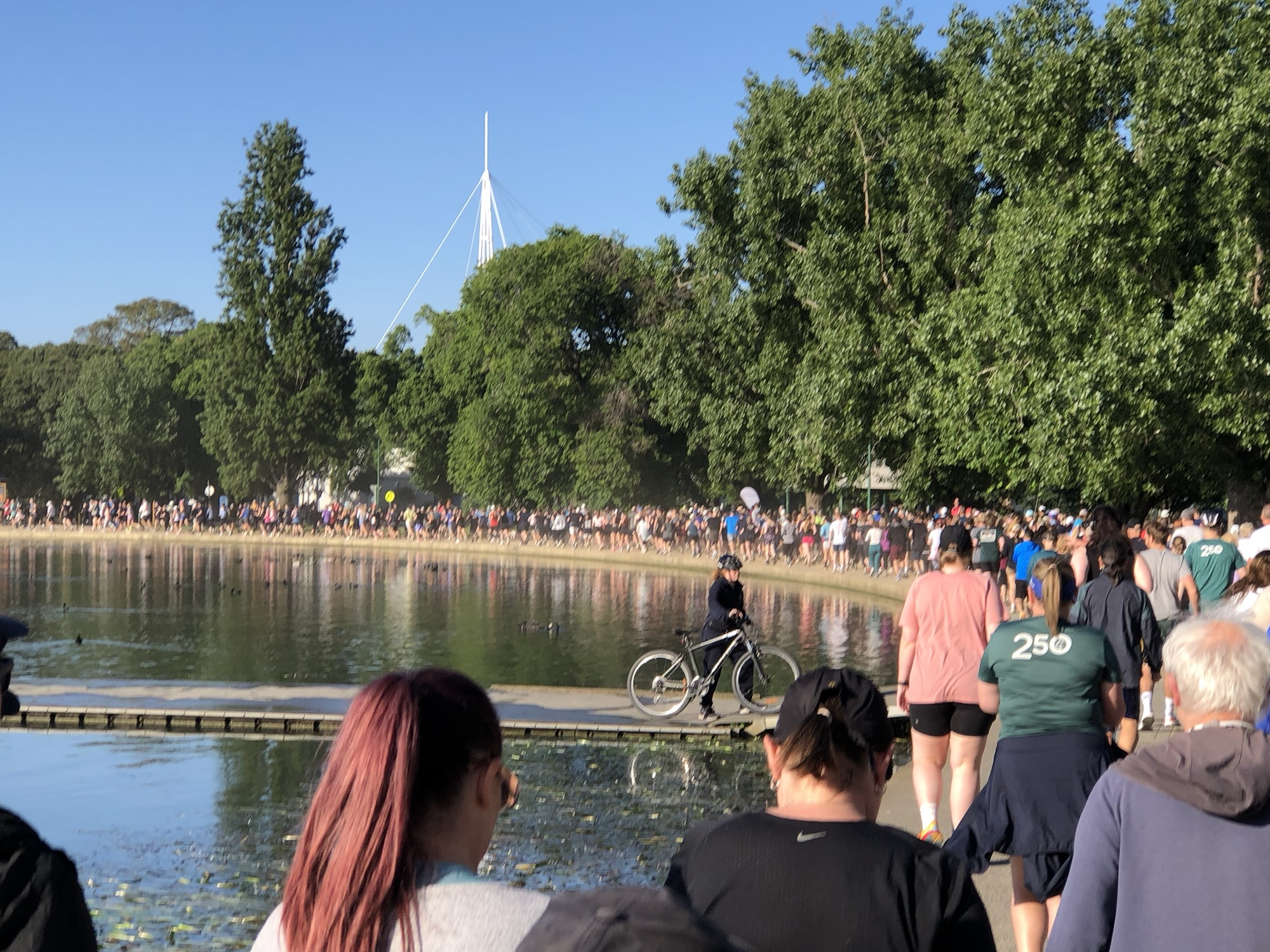Saturday morning had to start with that must-do ritual of Parkrun, even if that means walking for now. We found one at Albert Park and set off on a tram to find our Parkrun peeps. Our local Parkrun back home on a regular day would get about 70 people, increasing to a record 233 in summer when there are visitors. Here, in Melbourne, we were in a whole new Parkrun universe. There were 35 volunteers to fulfil all the necessary roles for more than 800 participants! I got the feeling that this was a regular sized turn out when I saw one of the volunteers was “paddle man” holding up a large paddle reading “Quiet please, briefing in progress”, to quieten the crowd for the Run Director to explain the course and welcome visitors and newbies and still be heard above the crowd.