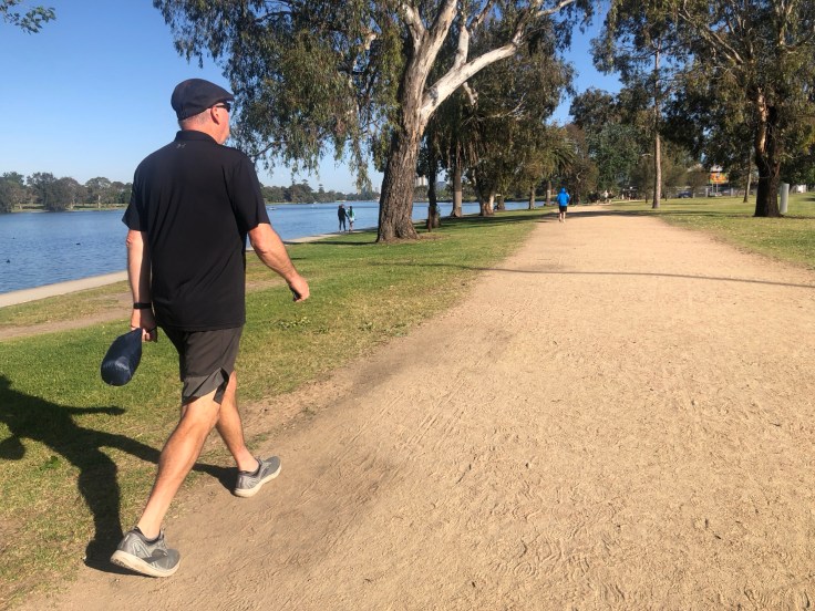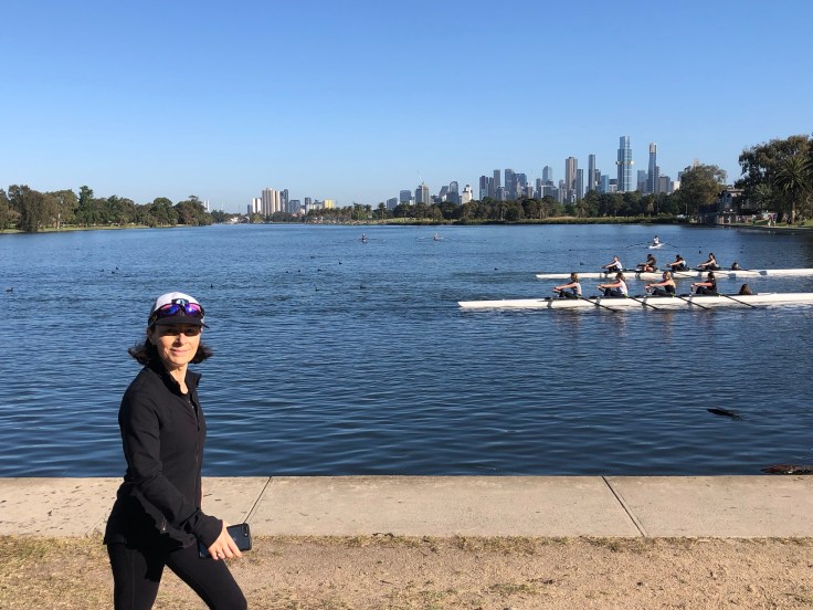 When we set off, we joined the colourful snake of runners and walkers circumnavigating Albert Park lake on a crisp but sunny morning. “Come on, you can take them!” encouraged Steve as a team of rowers stroked past on the lake. I picked up my walking speed to try and out pace the Cox driving her crew through the water. I tried to channel Kath and Kel, that pair of “foxy morons”, as I swung my hips and pumped my elbows, but to no avail, as I watched the smooth ripple of the boat’s wake pass me with rhythmic precision. It was a top place to walk though, a full lap of the lake and then the finishing funnel was lined with volunteers, creating a cheering guard of honour, congratulating finishers and leaving everyone crossing that line with a grin on their face. A perfect start to the day.