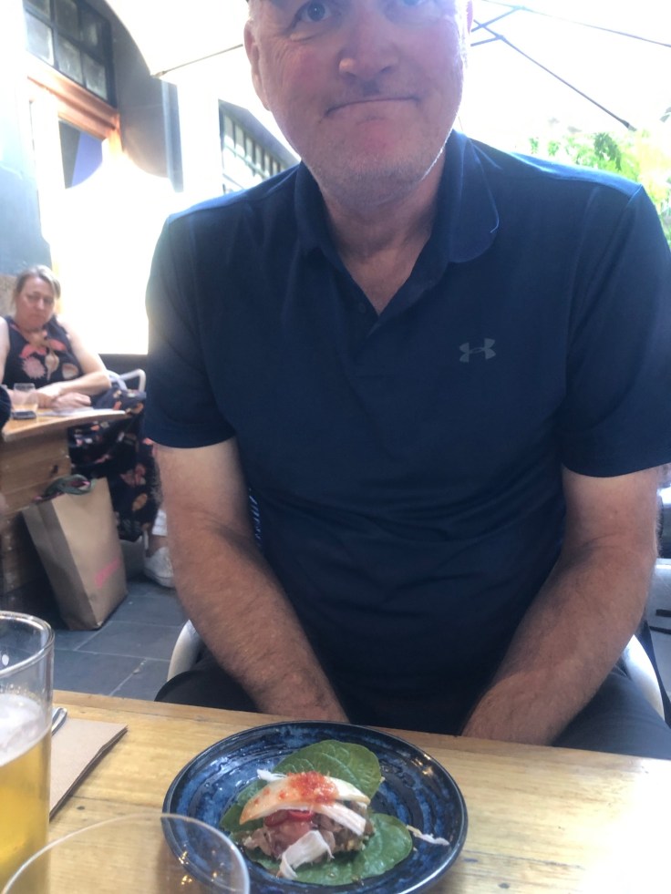 We found another place for our pre-theatre food choice, which had some interesting vegan options and we enjoyed a tapas style dinner with a range of Thai style dishes that hit the spot perfectly. Making the whole experience better was a couple sitting at a table in front of us and their little Dachshund dog who had accompanied them and was sitting up on a chair of its own, enjoying some hand fed morsels being shared by the man. There’s nothing like dining out with doggy company.