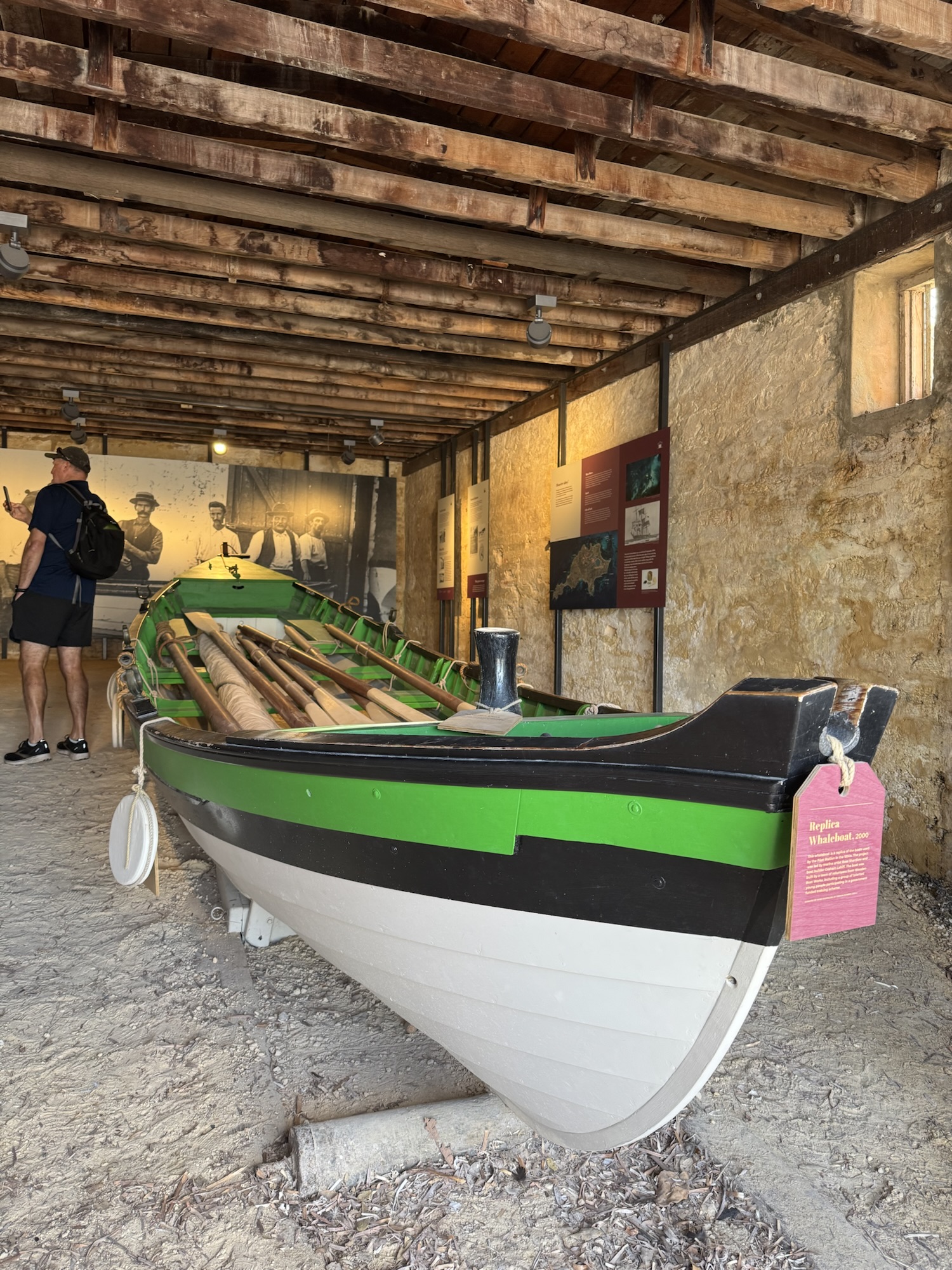 We took ourselves down to the Boat House to have a look at a pilot boat and met a very friendly volunteer who told us about the pilot on Rottnest Island from days gone by. The boat house held a boat that had been used by the pilot to escort ships into Fremantle and I can tell you, those oars took some lifting! Even Steve gave a grunt as he tried to pick one up. When a ship needed help to navigate into Fremantle, the crew would row 8 kilometres offshore to meet it and then the pilot would board and guide the ship safely to Fremantle, with the pilot boat following behind. It would take them twenty hours to pilot a ship to Fremantle and return to Rottnest! The first official pilot was quite notorious apparently and captain Edward Back was actually suspended at least five times in his nine years as pilot. Some of his offences included “sloppy security” when eight prisoners escaped the island in a stolen pilot boat and Back’s relaxed approach to security was blamed. There was also a total ban on alcohol for the pilot boat crew but captain Back was reprimanded for being drunk with several people reporting his “shameful state of intoxication.” He also wrecked two pilot boats during his service, so all in all, was not exactly squeaky clean during his tenure in a roll where you really would want your pilot to be fully in control of all faculties, sober as a judge and keeping the boat you were rowing safe and intact!