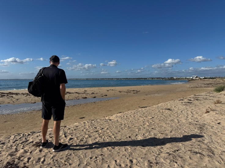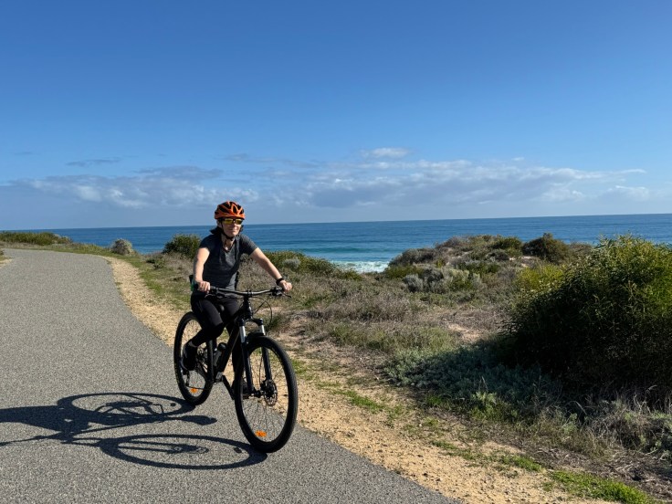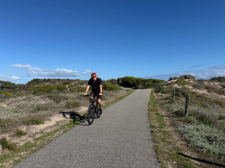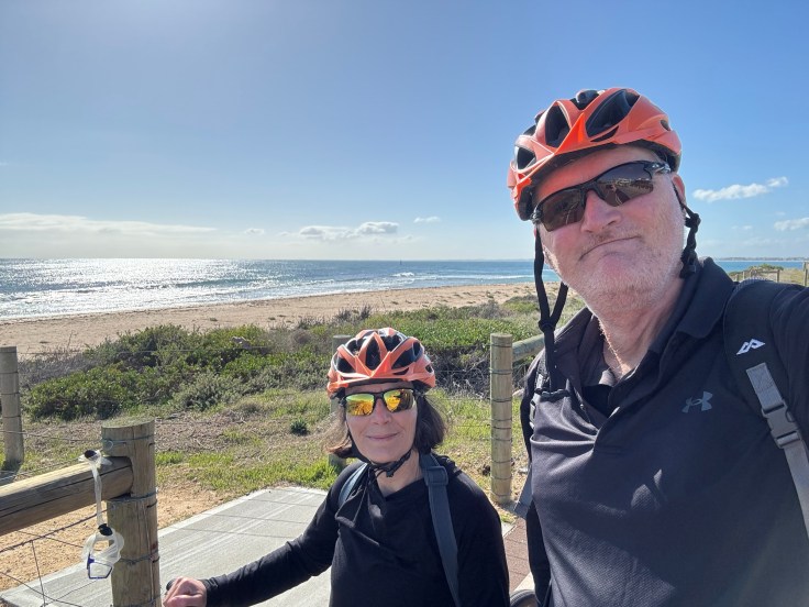 It was a great place for a ride, with a path winding along beside the beach, with people passing us walking or riding and giving a smile and a “hello”. Sometimes the path wove beside McMansions, right on the beach, with a real estate value I’m sure is eye watering. It reminded me of a similar ride we did in Victor Harbour, also along a coast path and beside some houses that defined location, location, location.