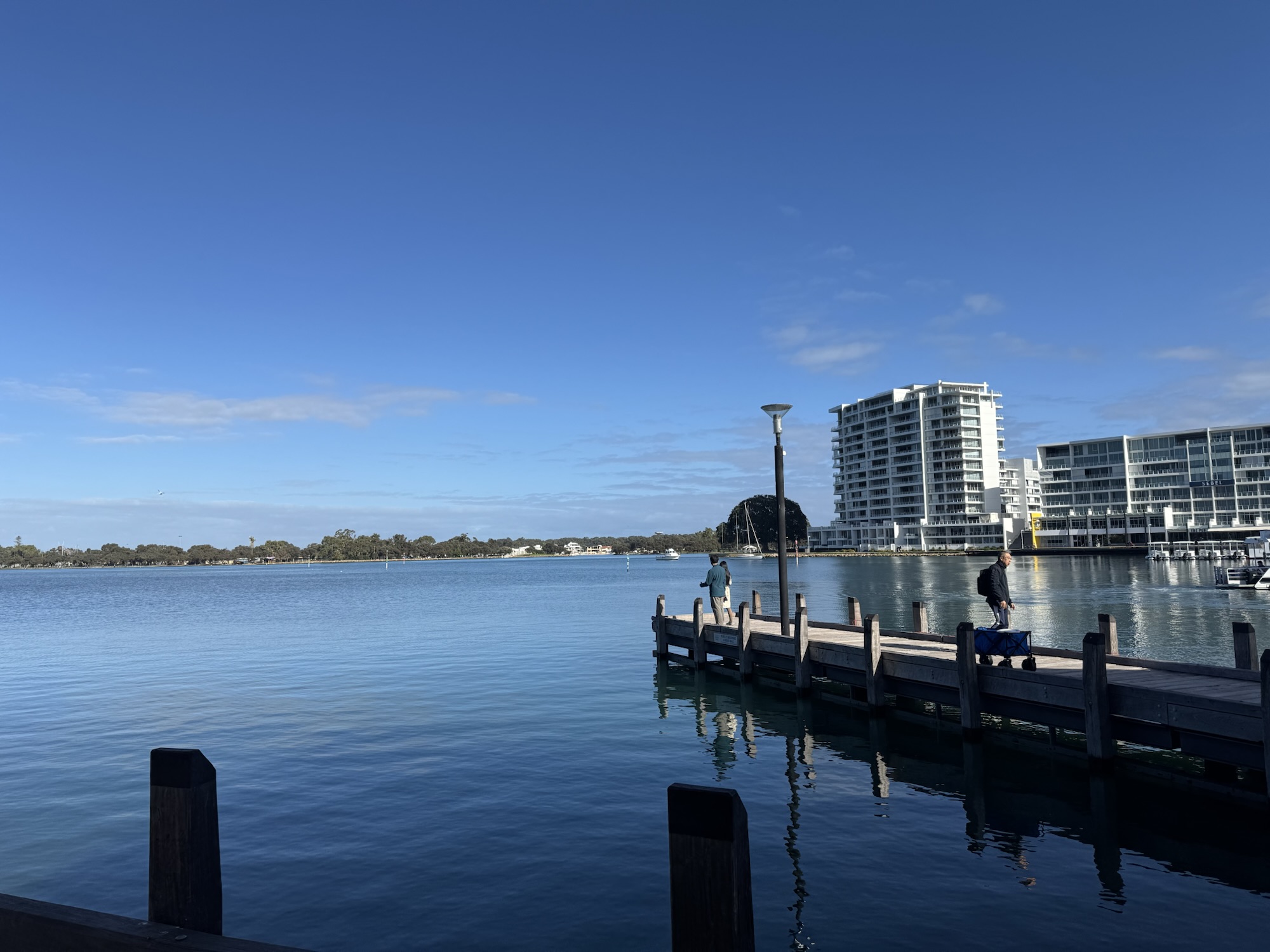 Today’s plan was to head to Mandurah for a look around, so that’s exactly what we did. After another morning run along the perfect path in South Perth, we boarded the ferry for the quick five minute choof across the river, then the two minute walk to the train station and hopped on board for the ride to Mandurah. We arrived 50 minutes later and that 50 minute train ride cost us all of $2.52 on just a regular fare. This public transport is awesome and for us, coming from a state that has no passenger rail at all, we are loving the novelty of being able to get around so easily on rails.
