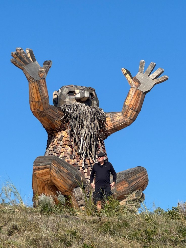 Then, we saw our Giant in the distance, perched high atop a grassy hill, looking out to sea. We dismounted and climbed the steps up to have a closer look. What an amazing creation. It looked incredible and I’m so glad we got the chance to see even one of these fantastic pieces of art.