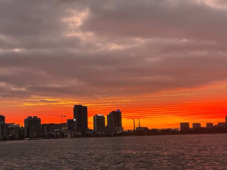 “Hi Guys, how are we today?” “Cheers guys, have a great day.” Those were the friendly words from the young woman skippering our ferry this morning, greeting embarking passengers and wishing well those disembarking. So continued that cheerful, friendly vibe of Perth. I’d started the day with a quick run and another magnificent sunrise and then we headed across the river for some more exploring.